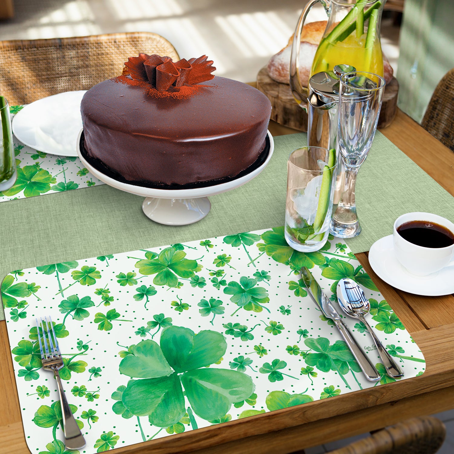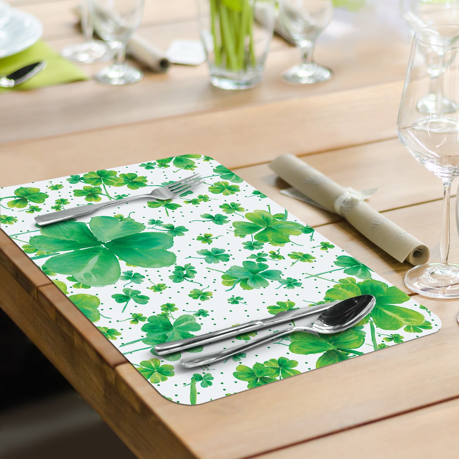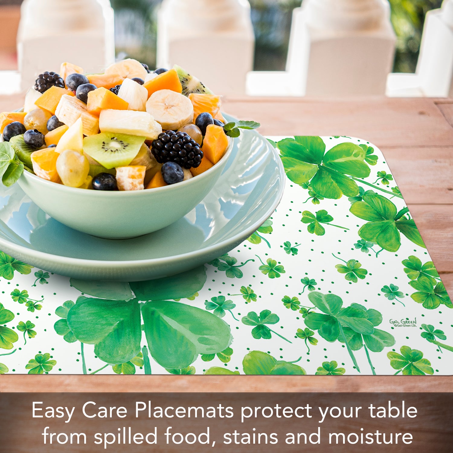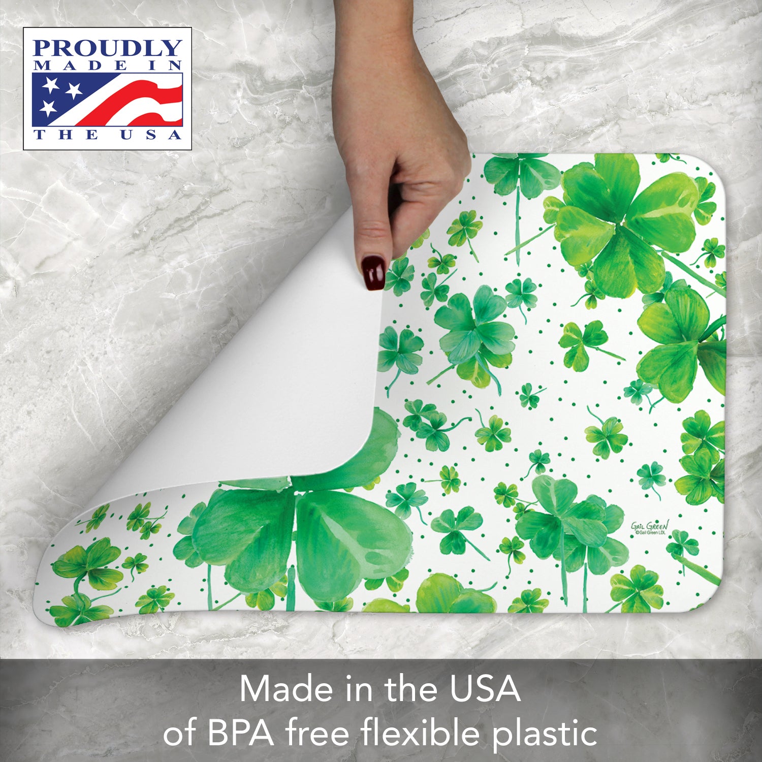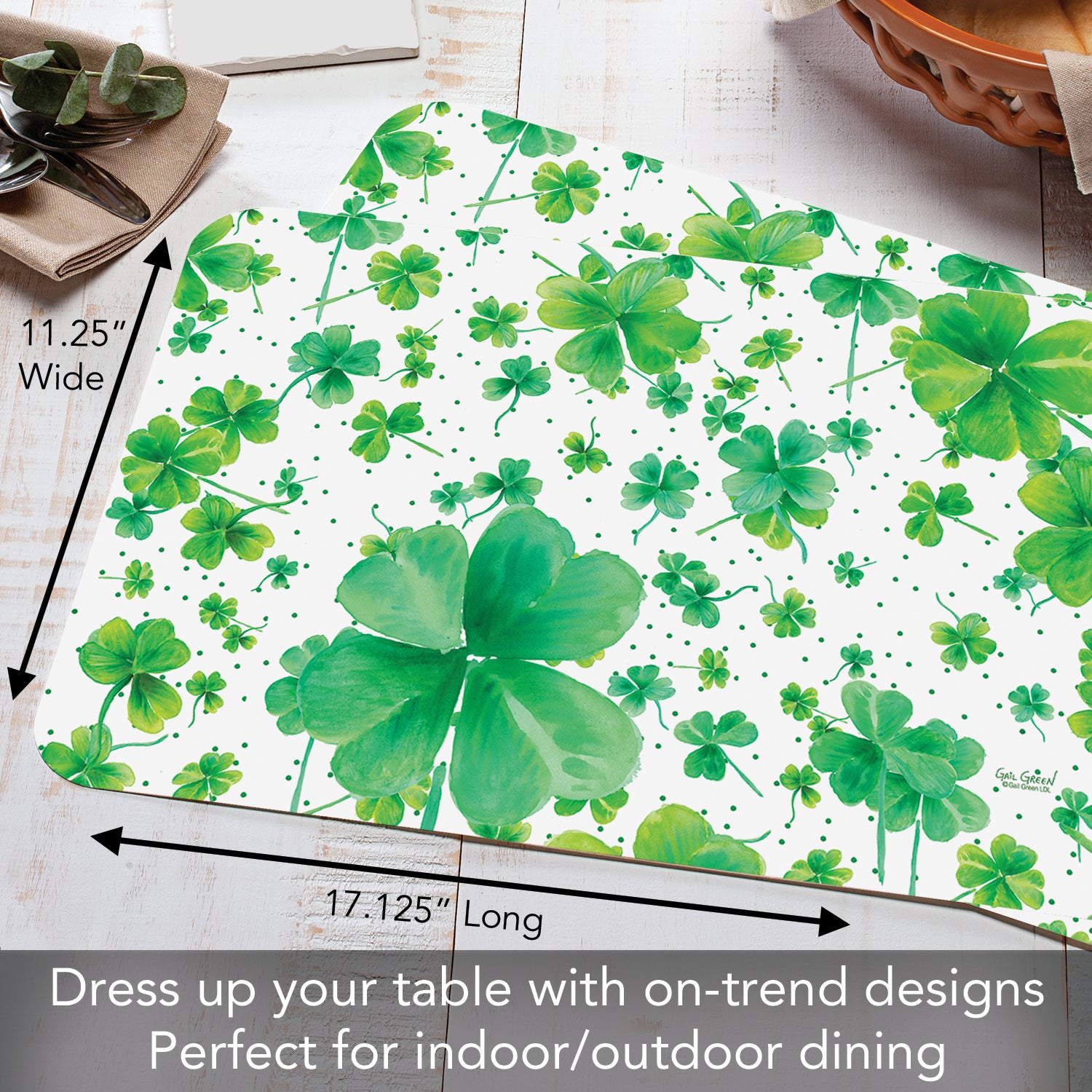CounterArt Shamrock Pattern 4 Pack Easy Care Flexible Plastic Placemat Made in The USA BPA Free, Easily Wipes Clean