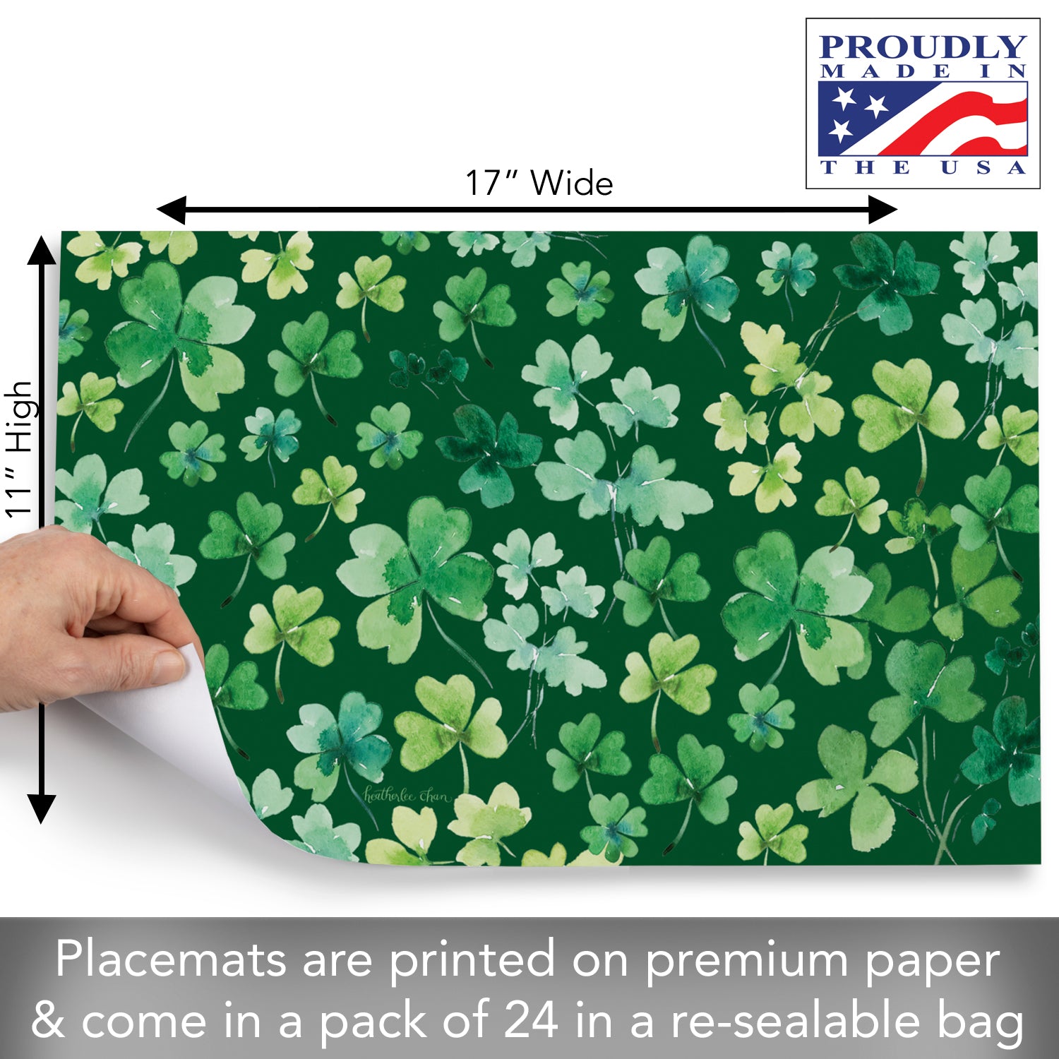 Shamrocks 24 Premium Paper Placemats in Resealable Storage Bag Made in the USA 17" x 11"