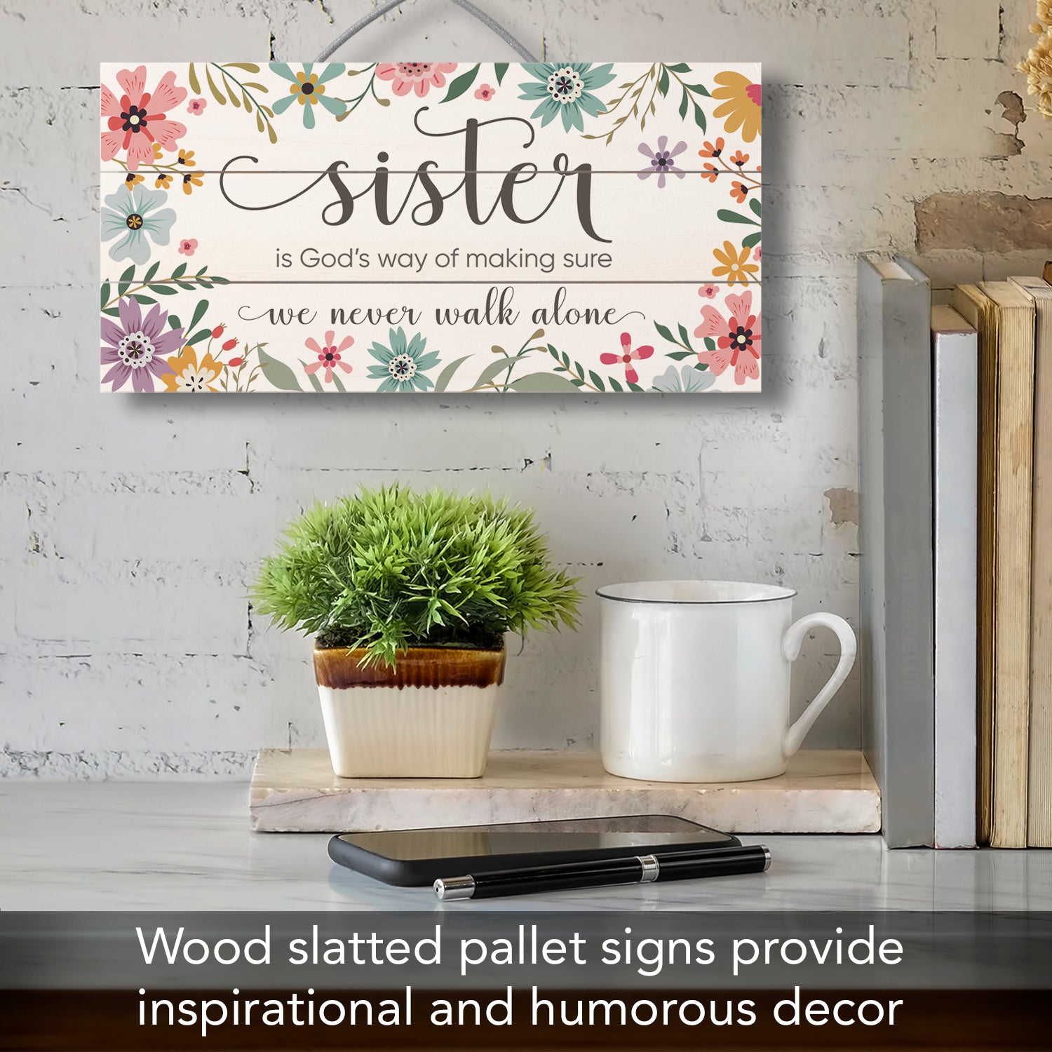 Sister Is God's Way Decorative Slatted Pallet Wood Sign 12" by 6" Made in the USA Wire Hanger Doubles as an Easel