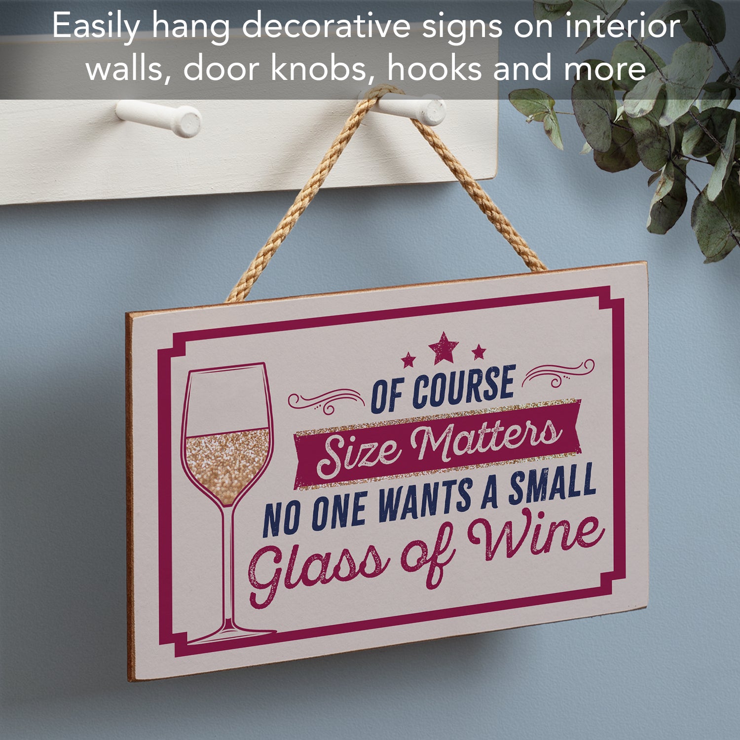 Size Matters Humorous Hanging Wood Wall Sign 9.5” by 5.75” Made in the USA