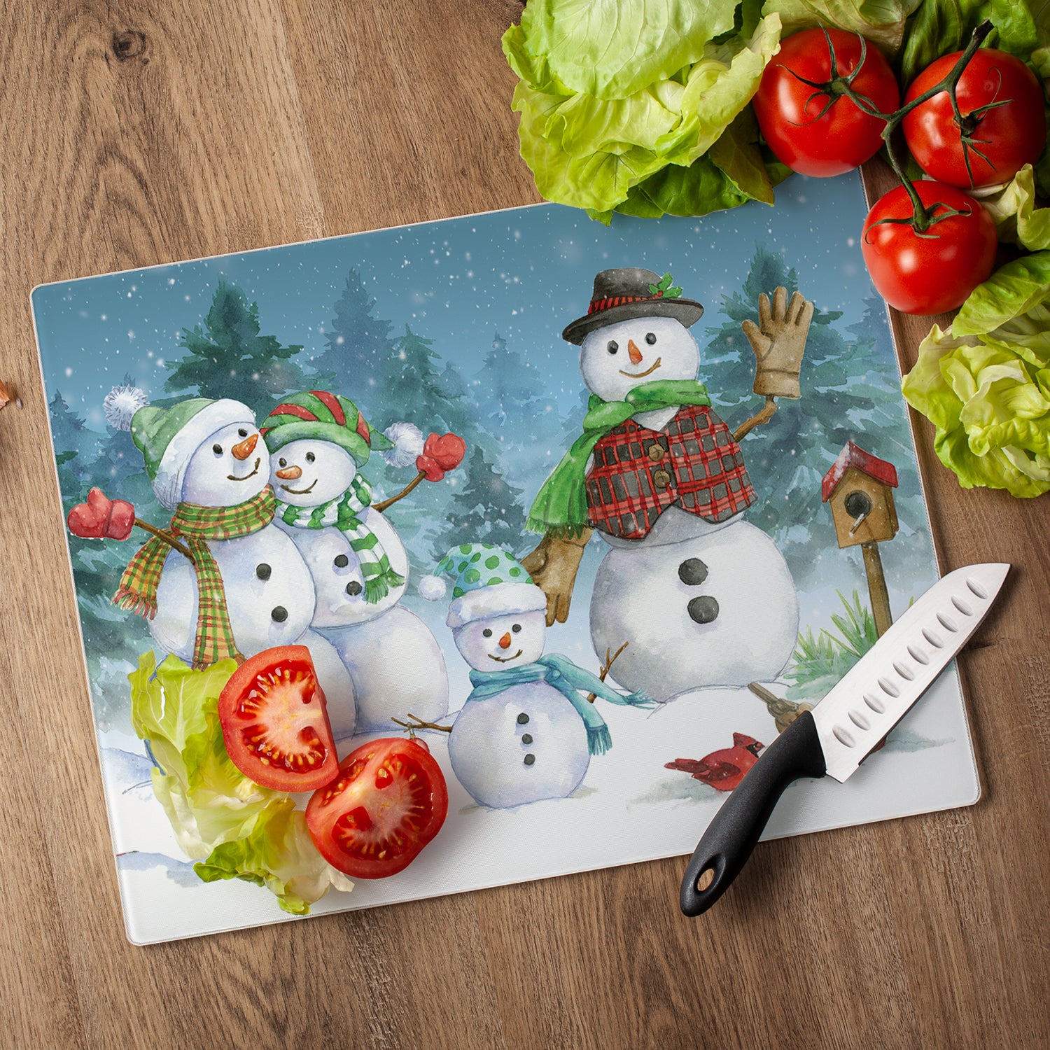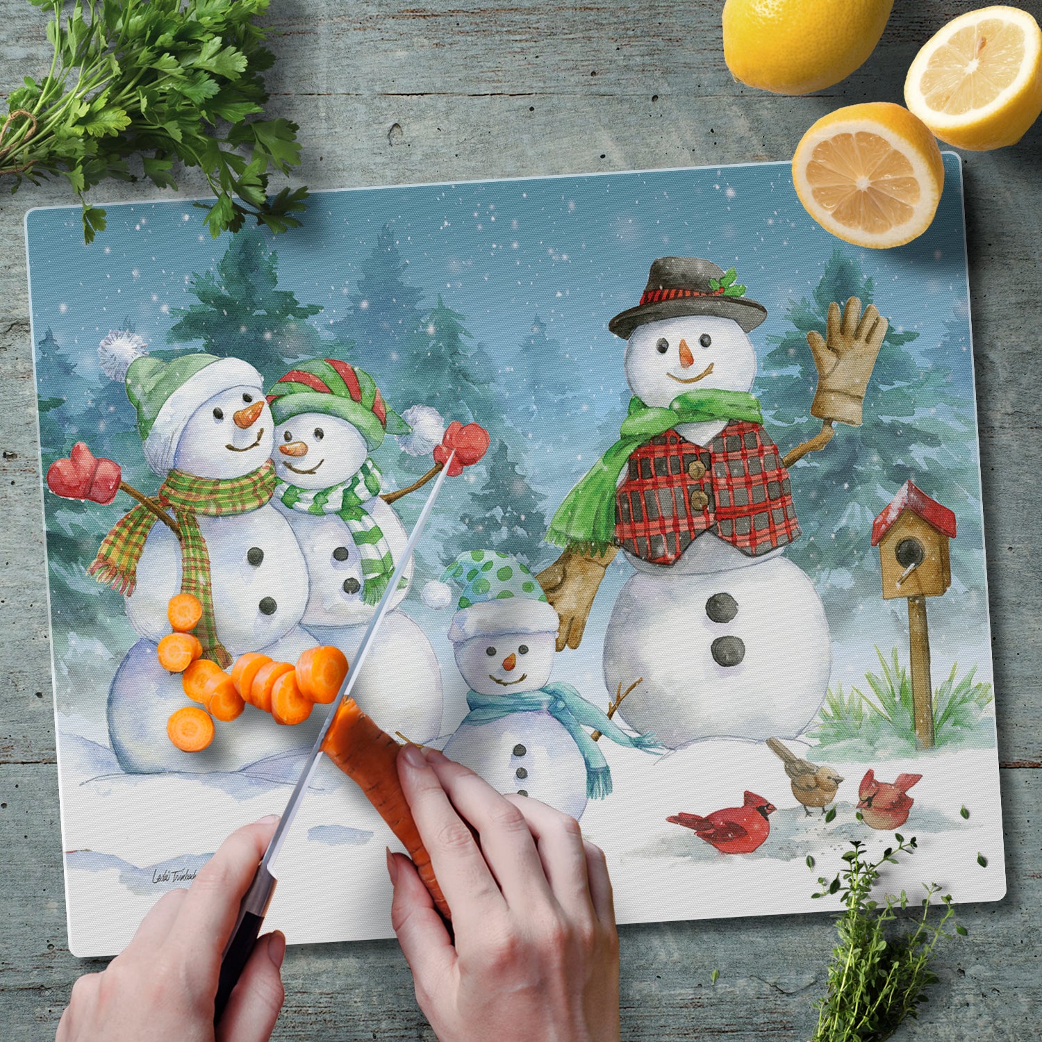 CounterArt Snowman Family 3mm Tempered Glass Cutting Board 15" x 12" Manufactured in the USA