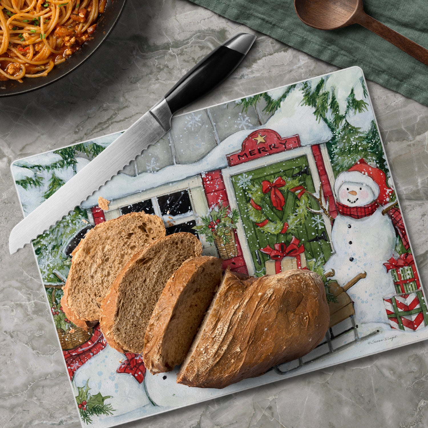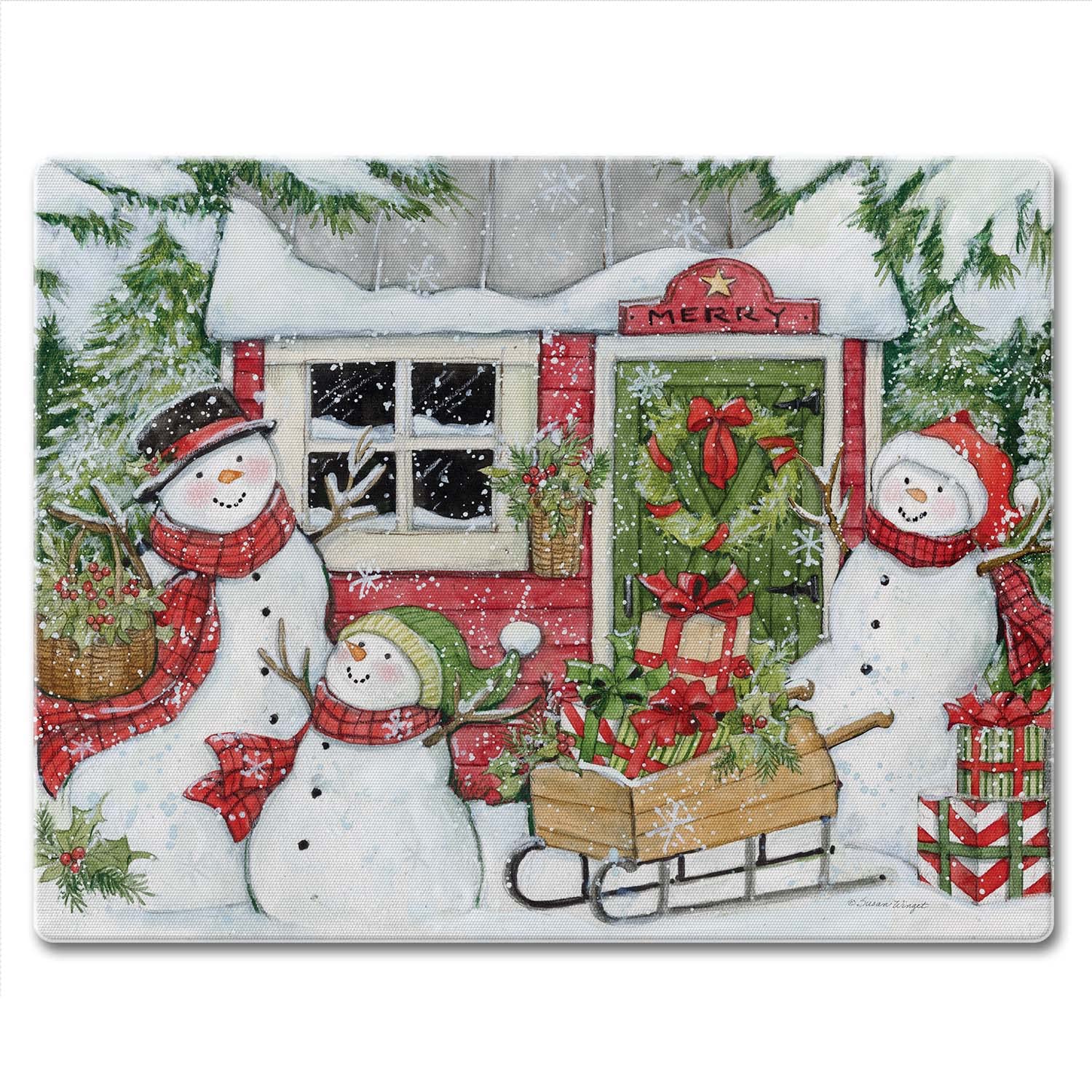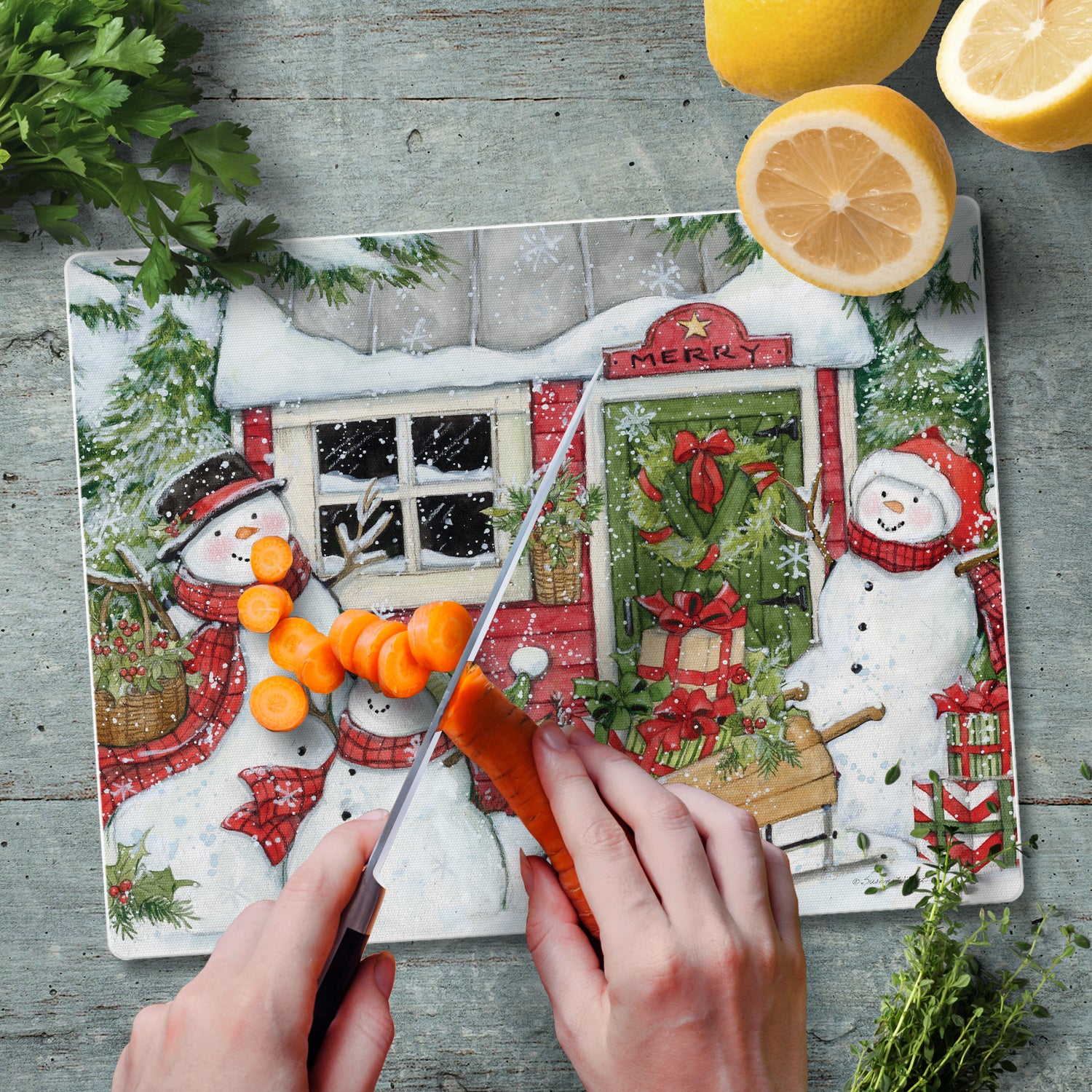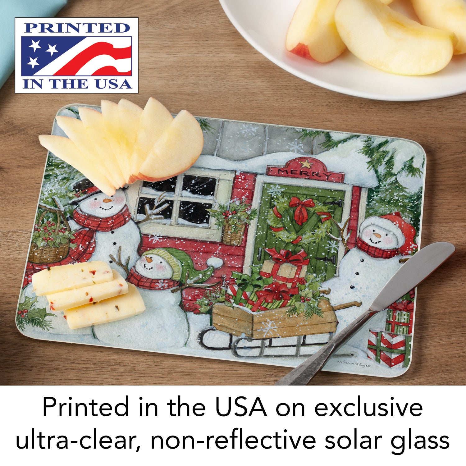 CounterArt Snowman's Farmhouse 3mm Tempered Glass Cutting Board 10” x 8” Manufactured in the USA