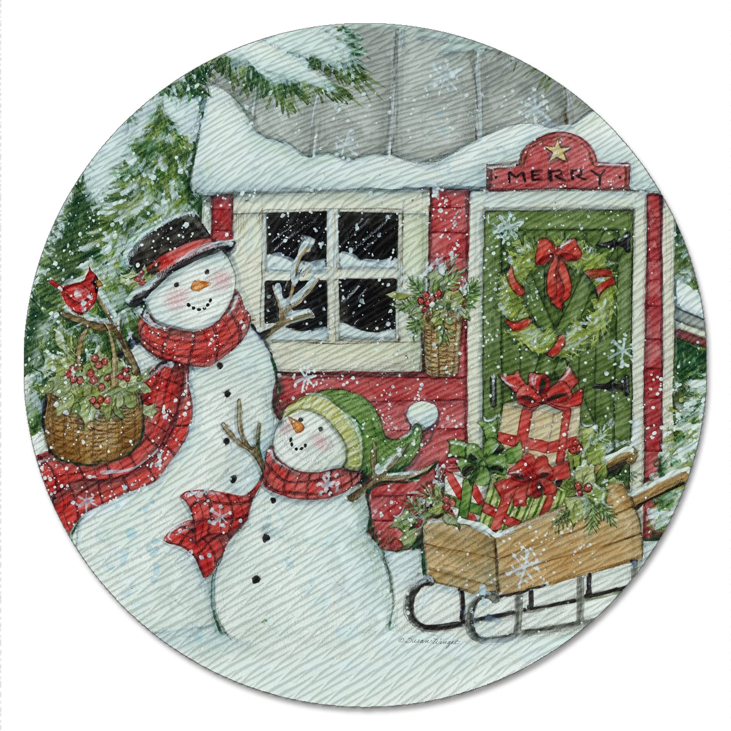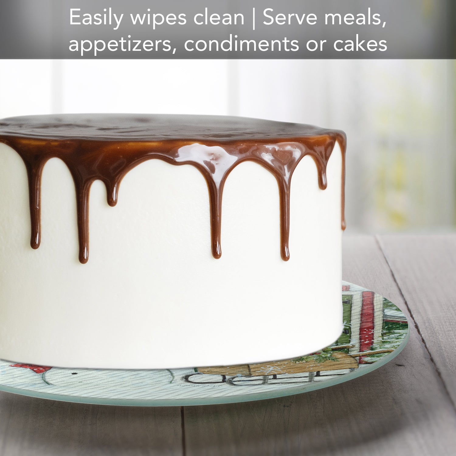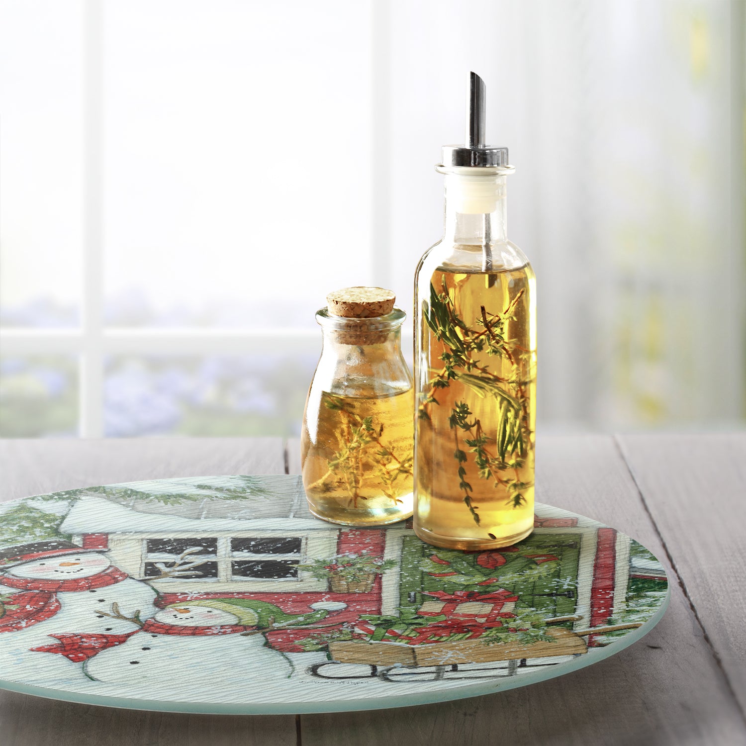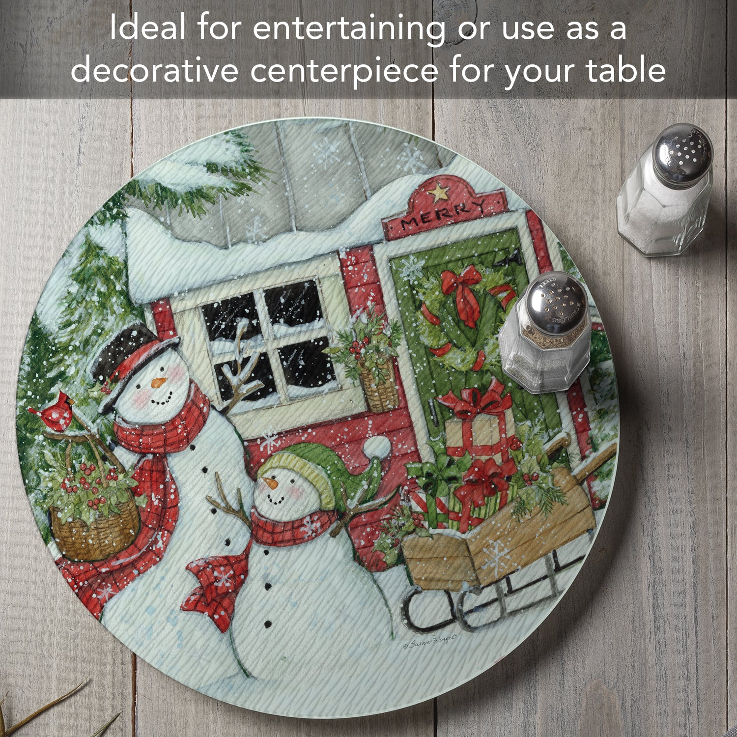 CounterArt Snowman's Farmhouse 4mm Tempered Glass Lazy Susan Turntable 13" Diameter