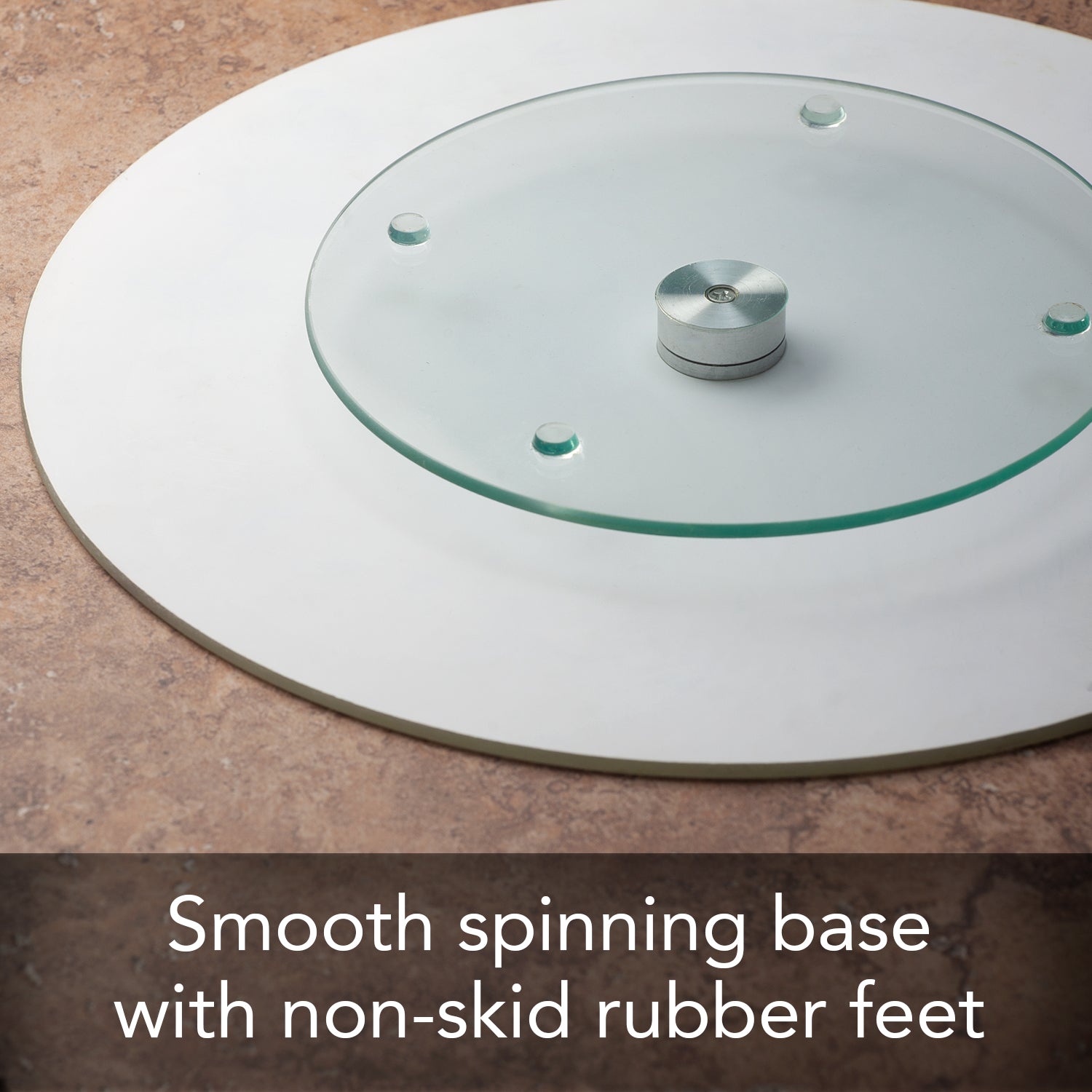 FEATURES-Lazy Susan Turntable features a slightly textured surface to keep items from slipping while in motion. Lazy Susan turntable sits on a smooth rotation glass base.