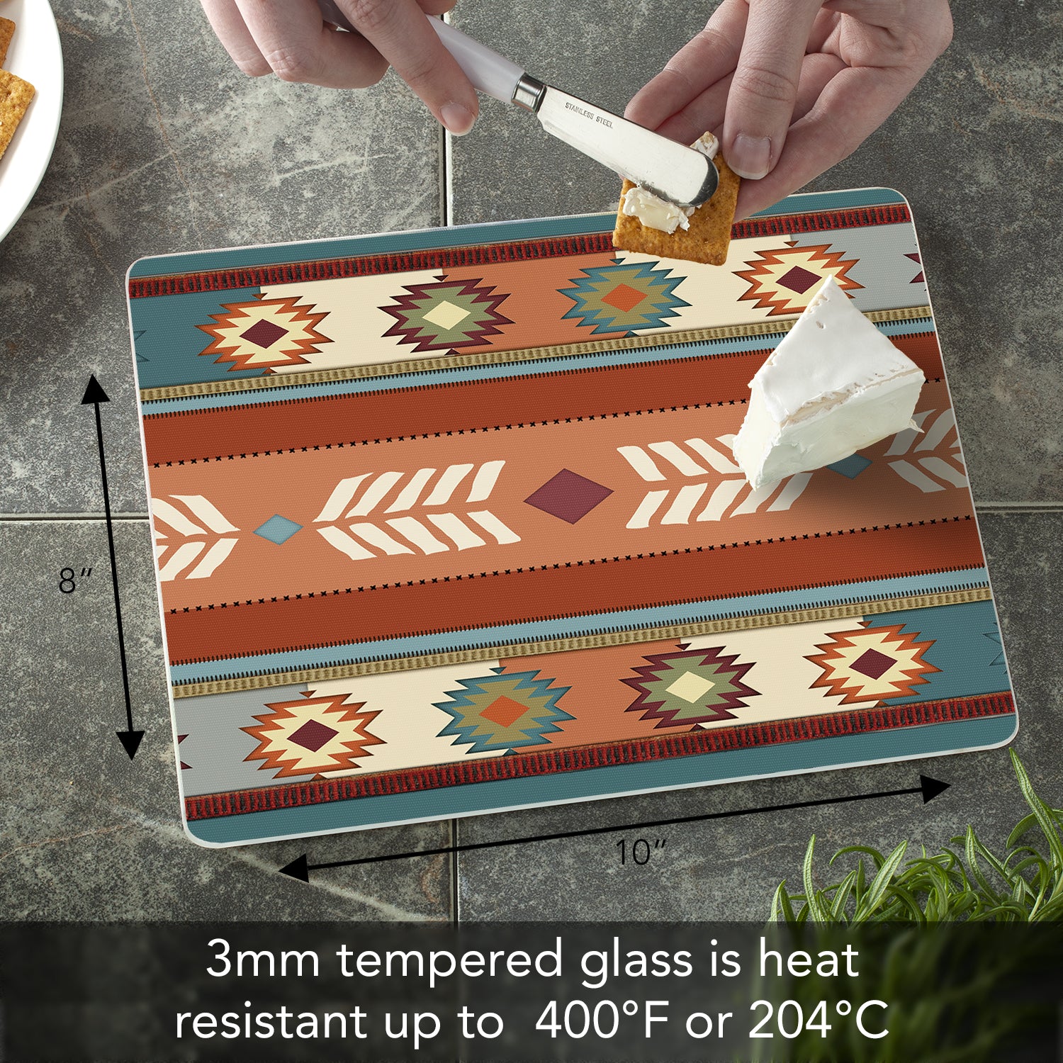 CounterArt Southwest Vibe 3mm Tempered Glass Cutting Board 10” x 8” Manufactured in the USA