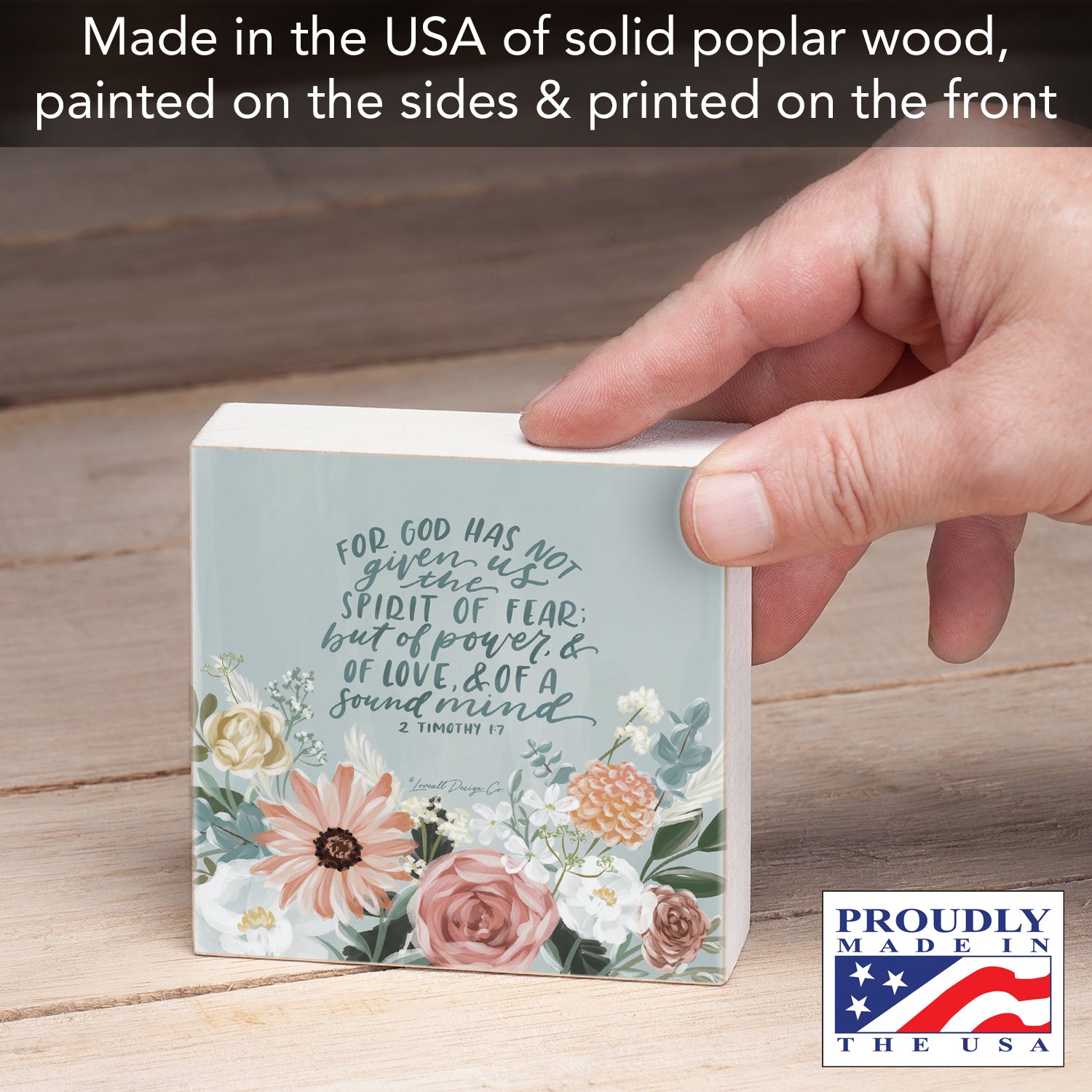 DURABLE-Our Wood Blocks are constructed of solid Poplar Wood. Artistic design and quotes are printed on the front with painted sides and a natural wood back.