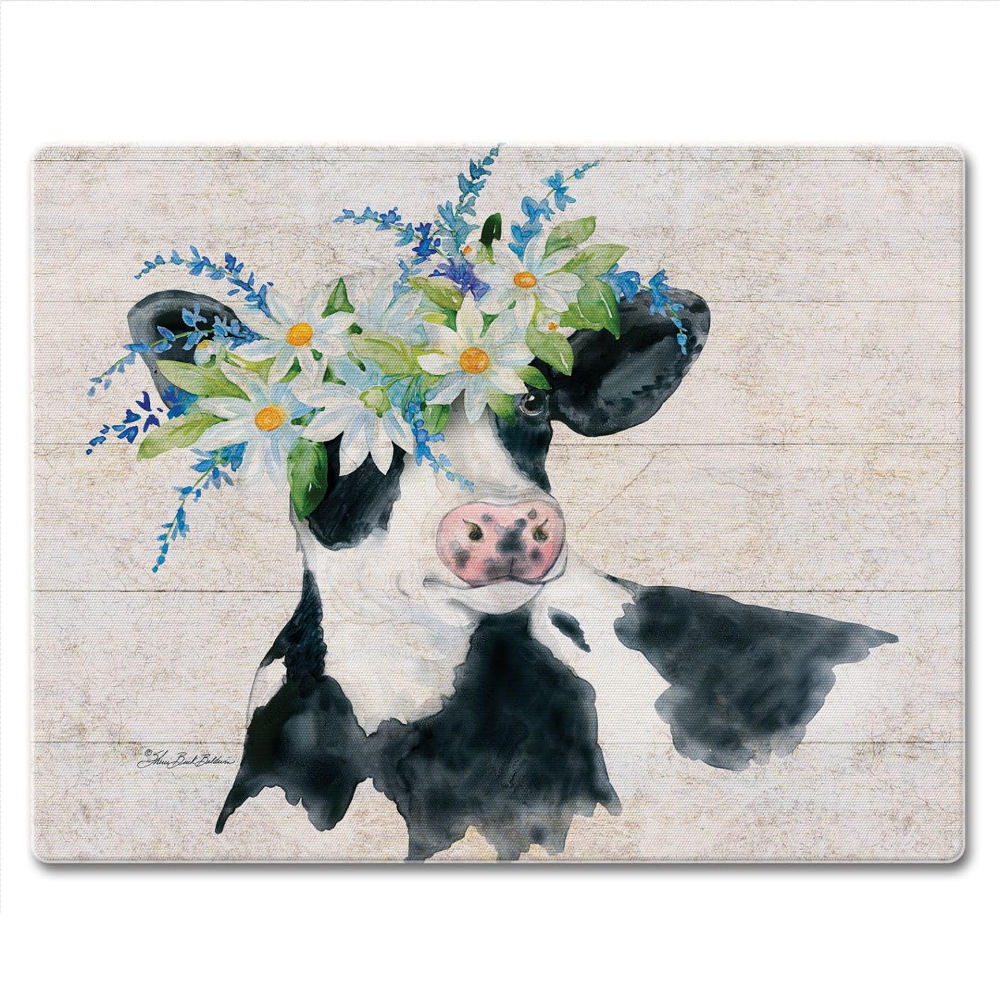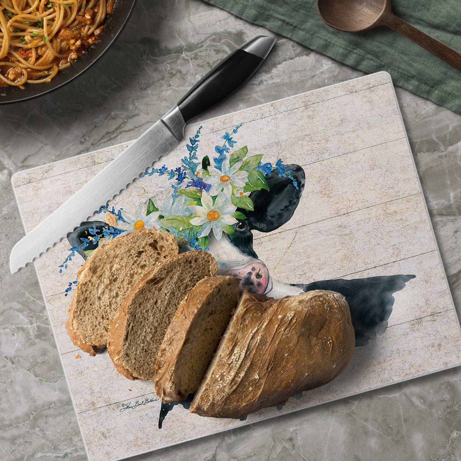 CounterArt Spring Cow 3mm Tempered Glass Cutting Board 10” x 8” Manufactured in the USA