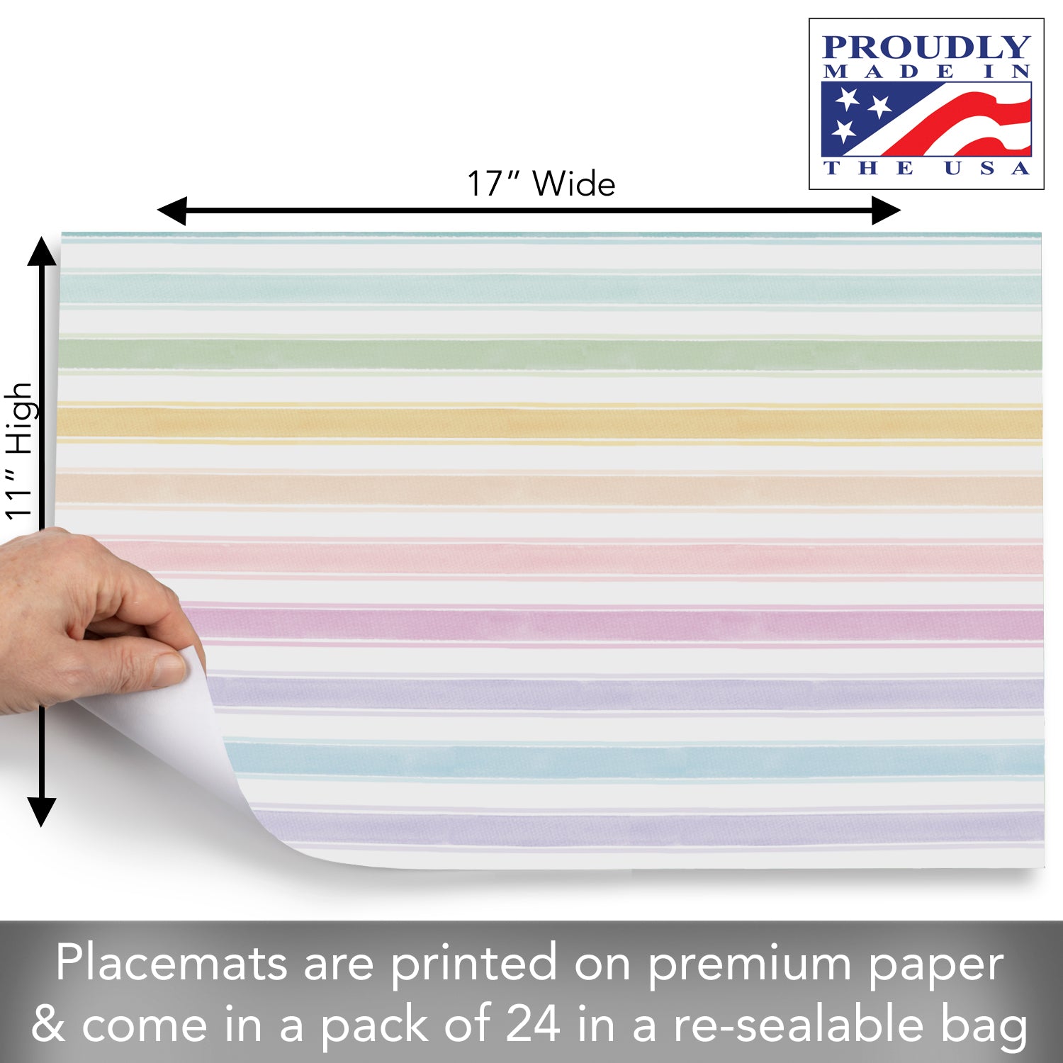 Spring Stripes 24 Premium Paper Placemats in Resealable Storage Bag Made in the USA 17" x 11"