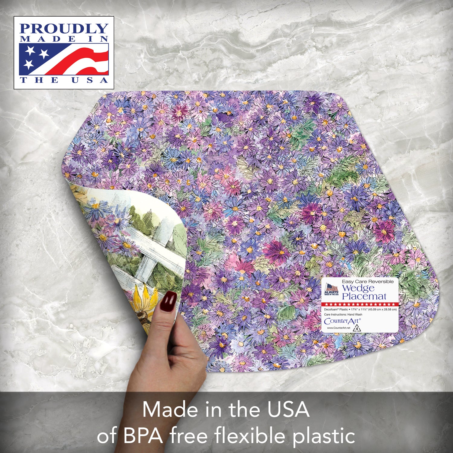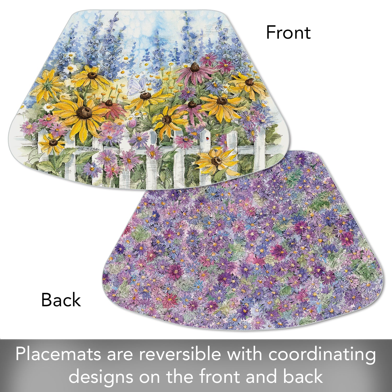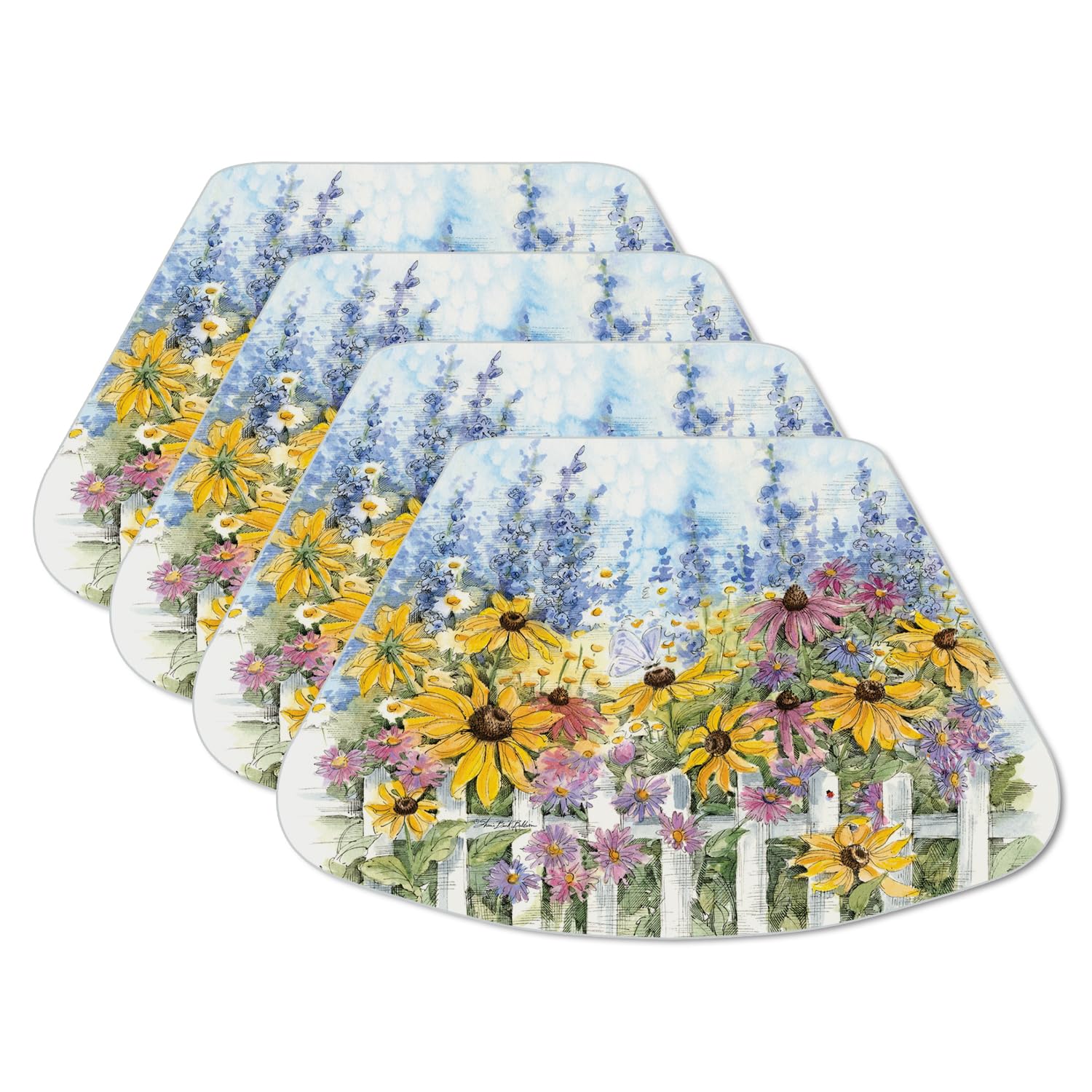 CounterArt Springtime Garden 4 Pack Wedge Shaped Reversible Easy Care Placemats Made in the USA 17.75" x 11.25"