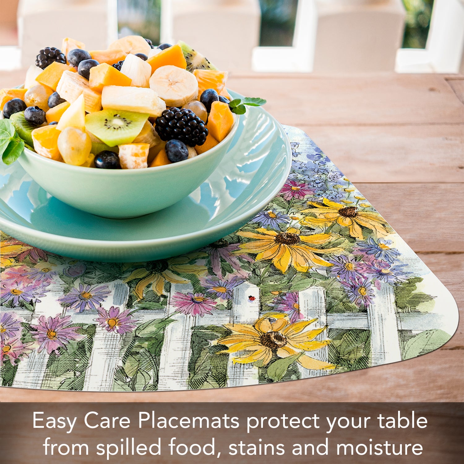 PROTECTS YOUR SURFACES-Placemats protect your table or countertop from spilled food, scratches, or stains. Placemat material prevents liquids from soaking through to your surfaces.