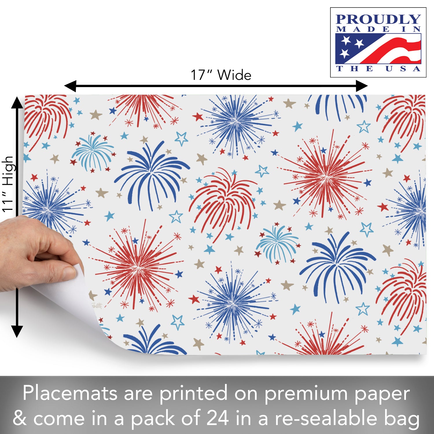 Star Spangled 24 Premium Paper Placemats in Resealable Storage Bag Made in the USA 17" x 11"