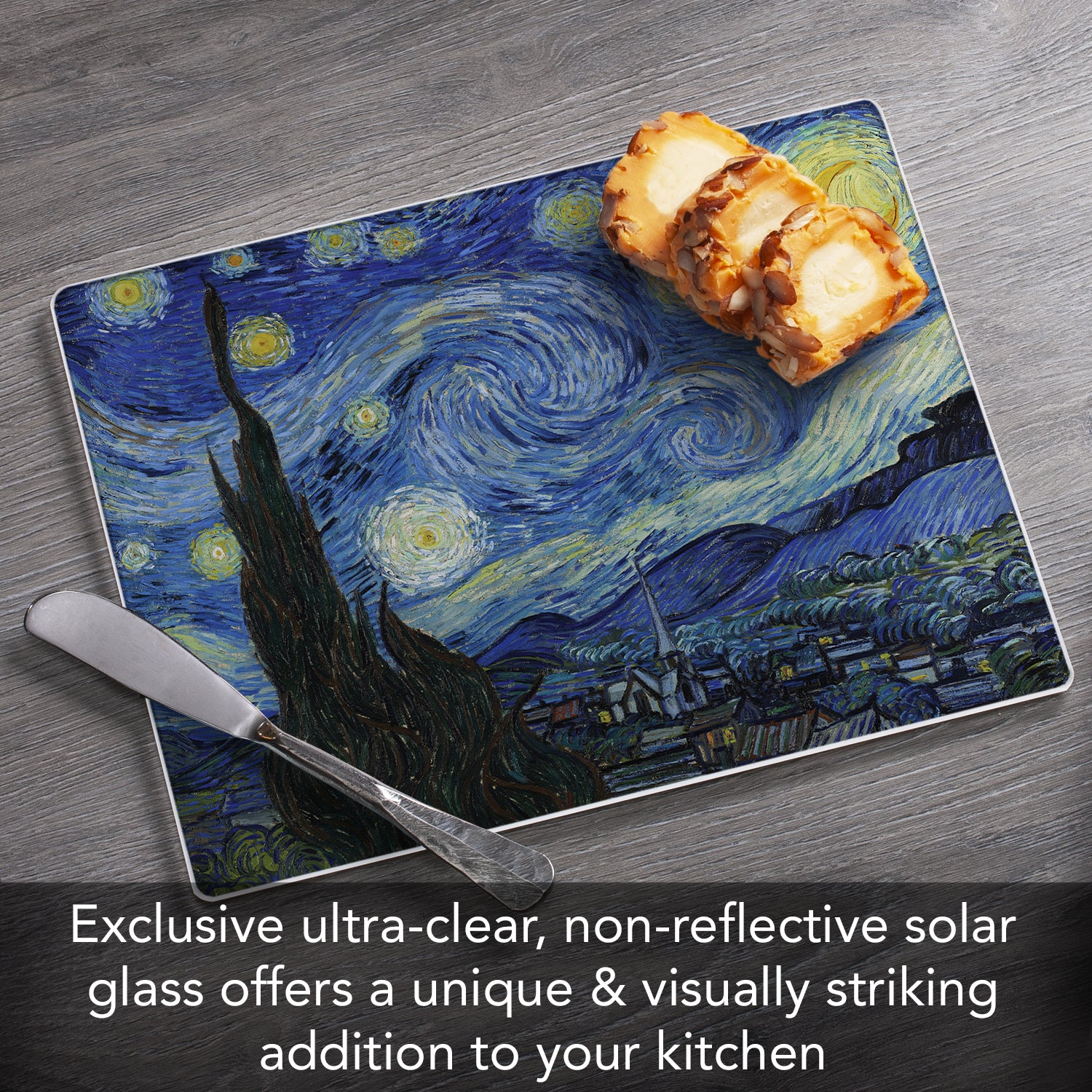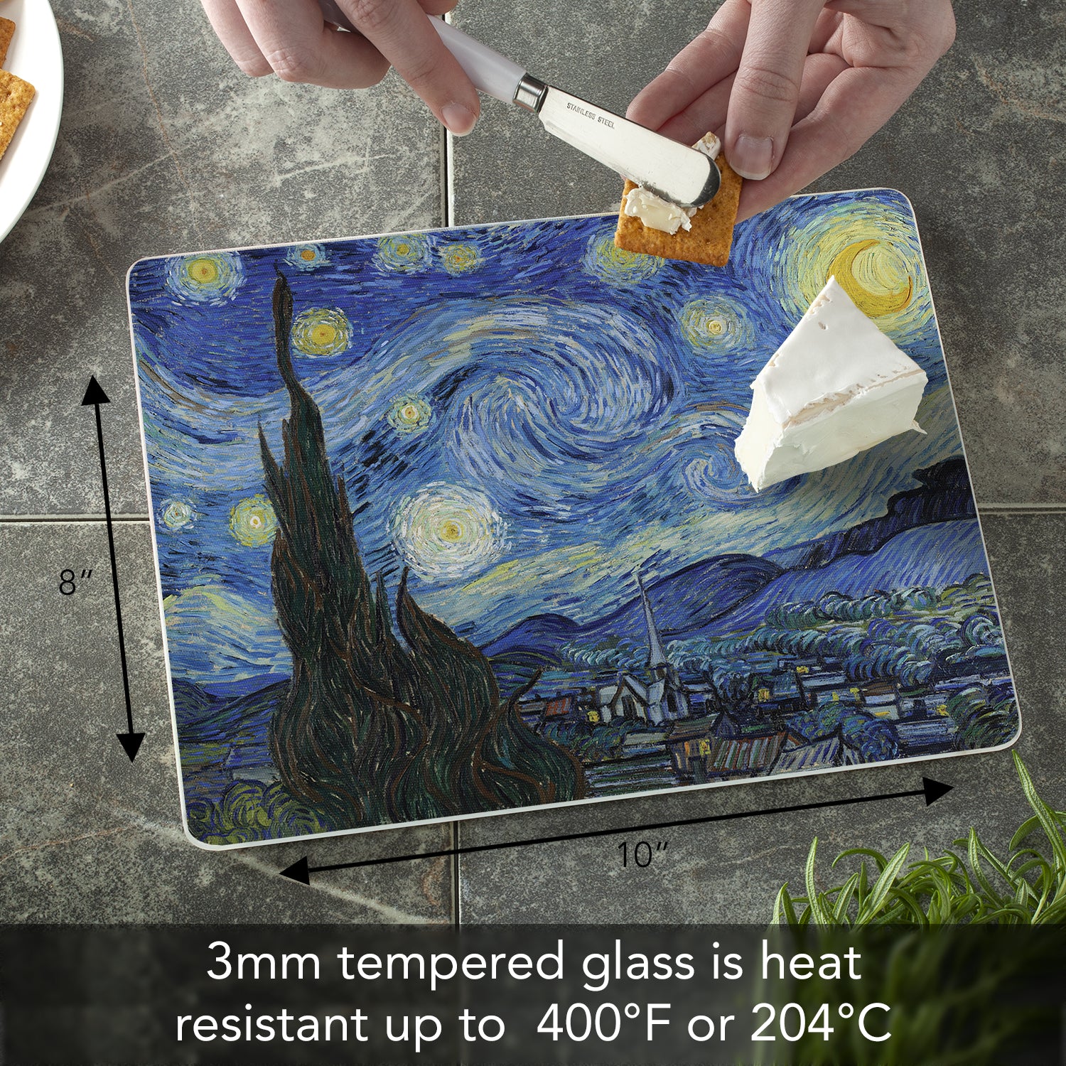 CounterArt Starry Night 3mm Tempered Glass Cutting Board 10” x 8” Manufactured in the USA