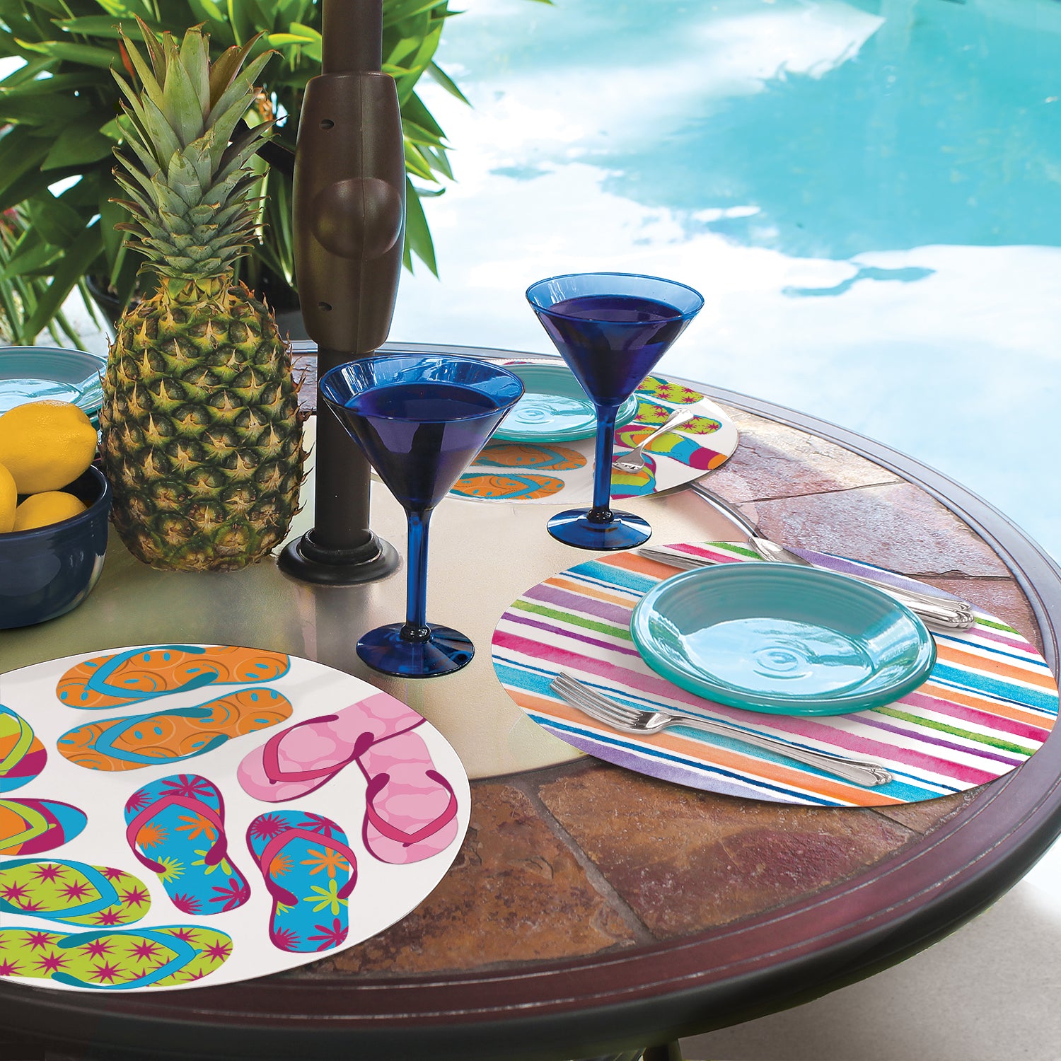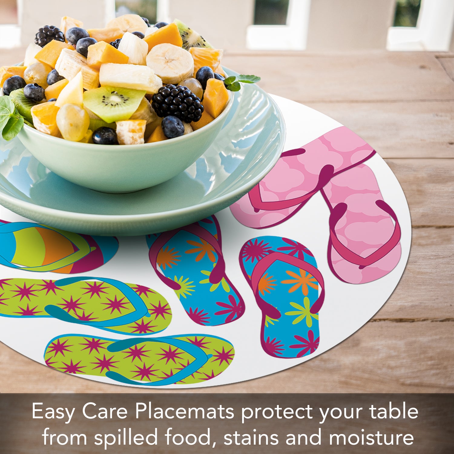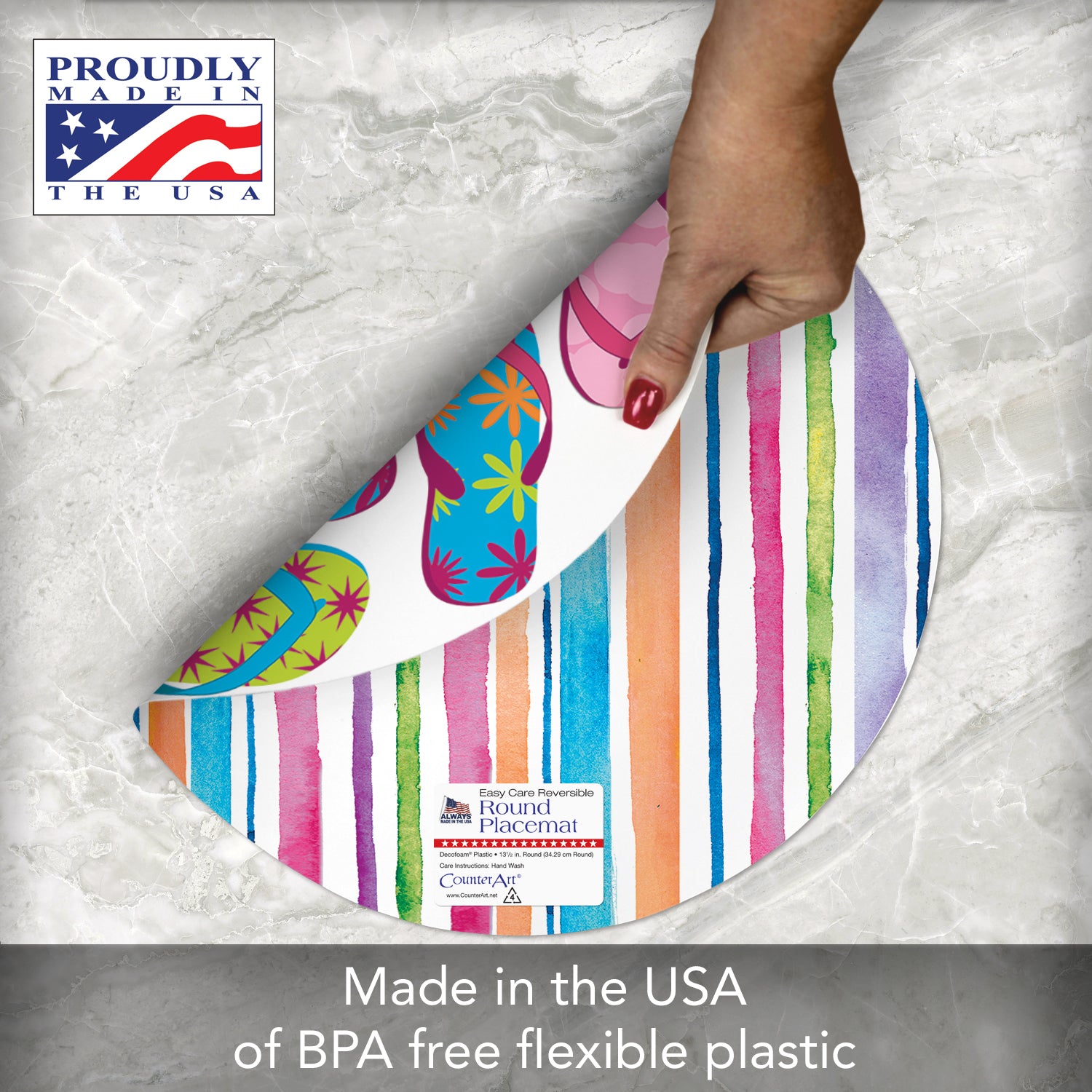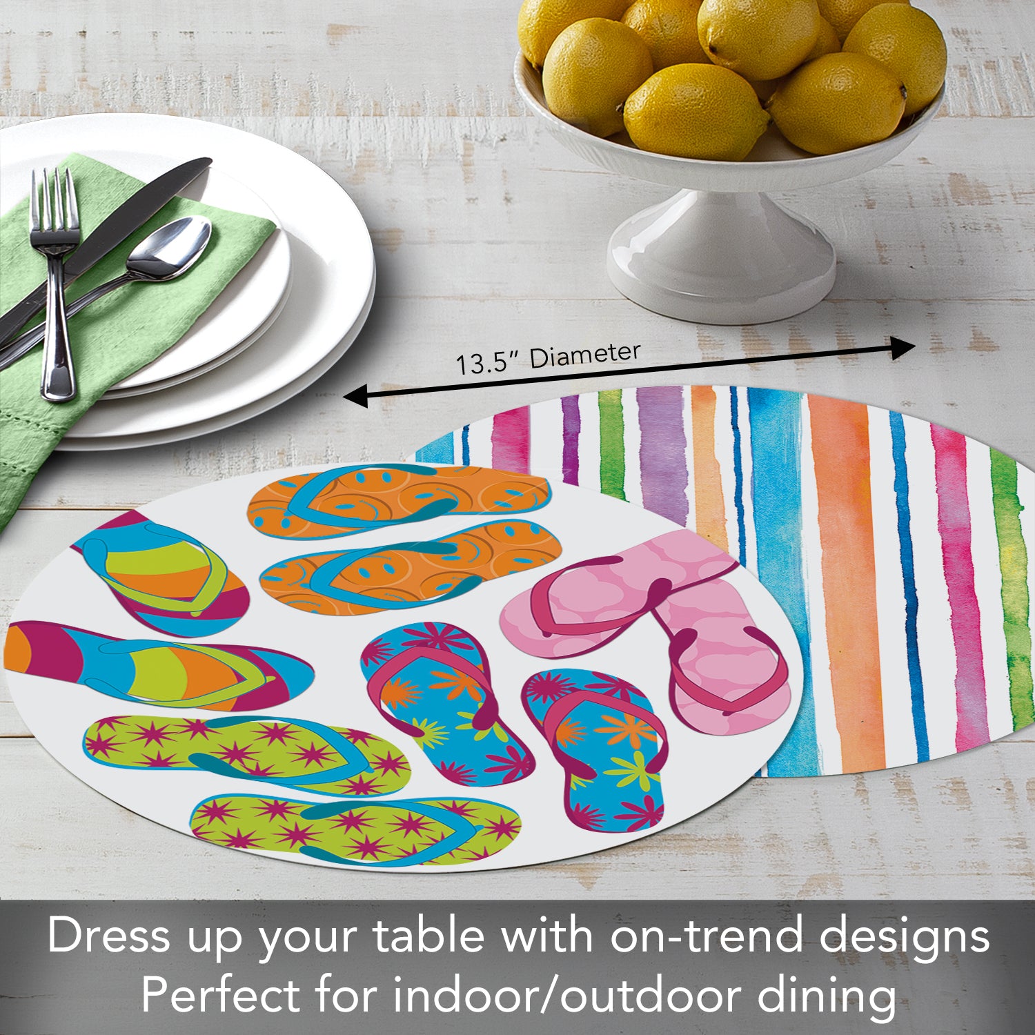 CounterArt Summer Flip Flops 4 Pack Round Reversible Easy Care Flexible Placemats Made in the USA
