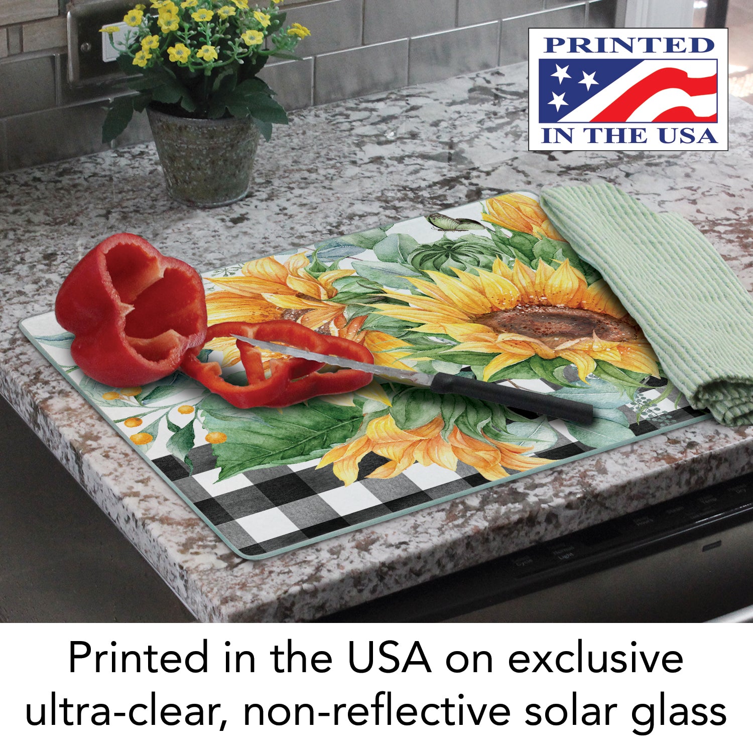 CounterArt Sunflower Fields 3mm Tempered Glass Cutting Board 12" x 15" Manufactured in the USA