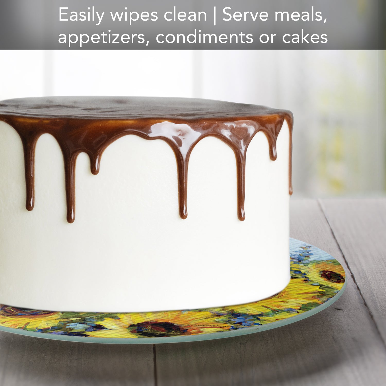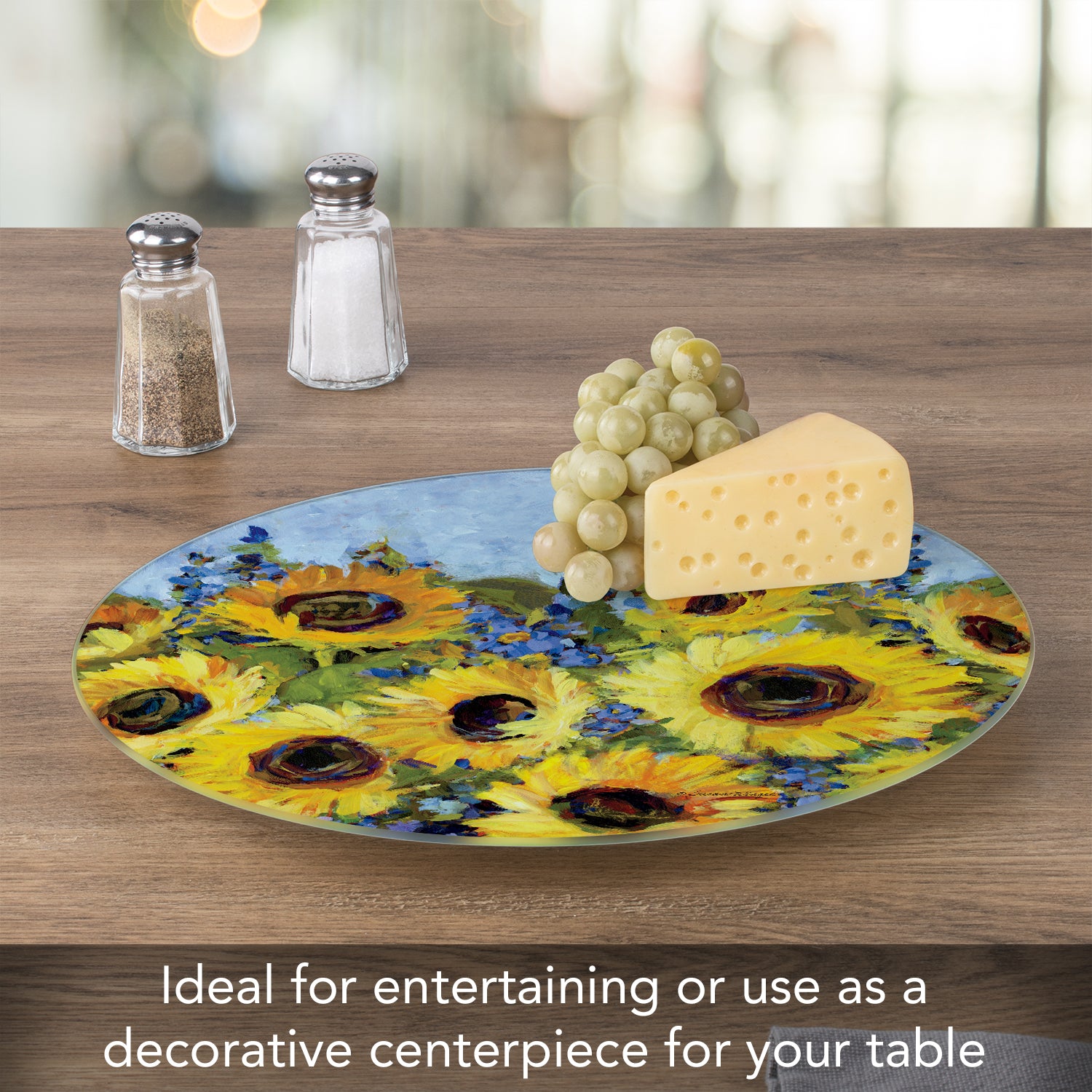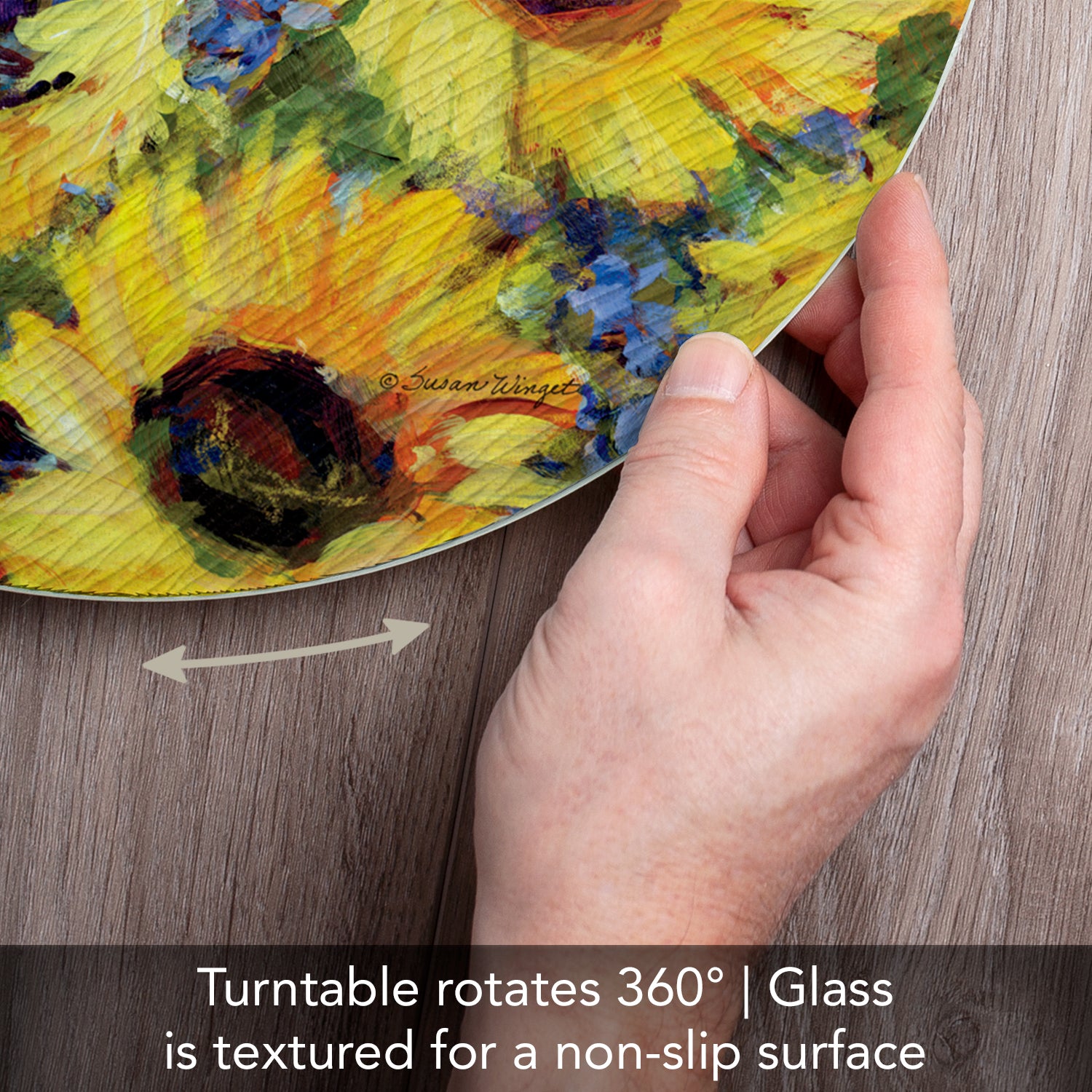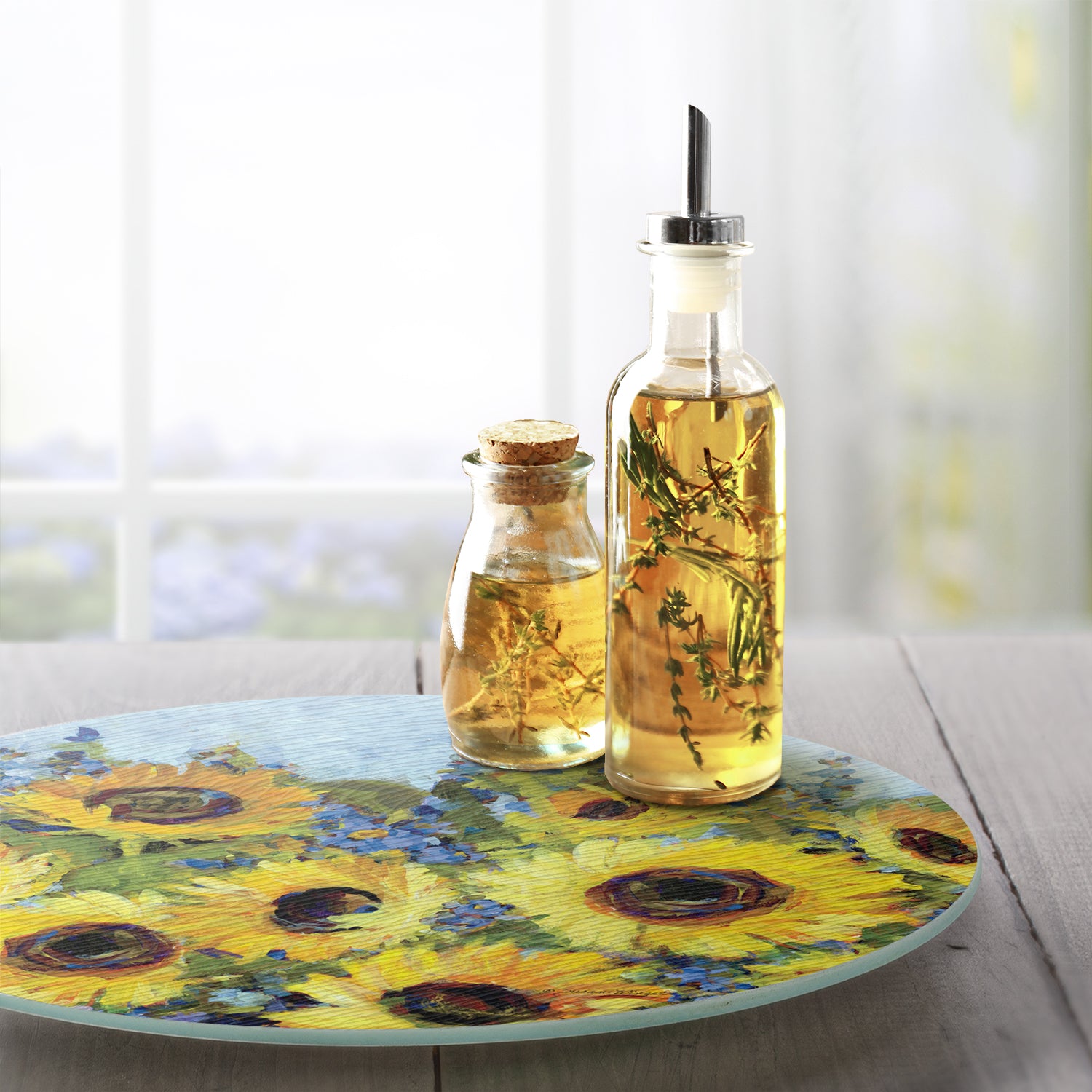 CounterArt Sunflower Gallery 4mm Tempered Glass Lazy Susan Turntable 13" Diameter