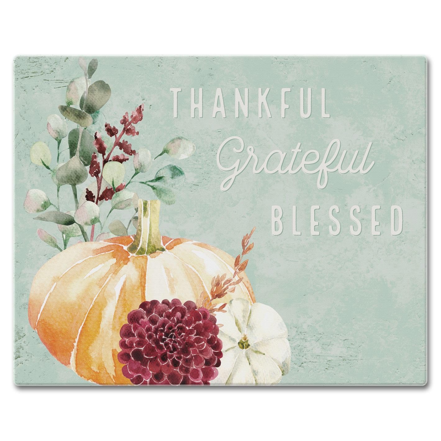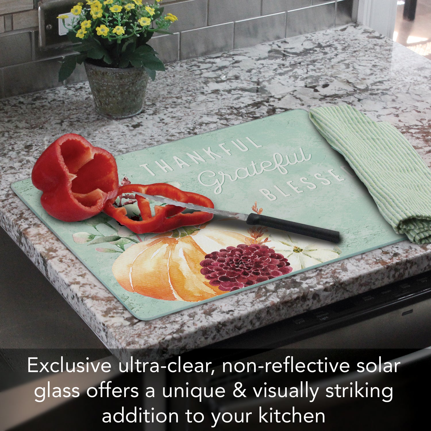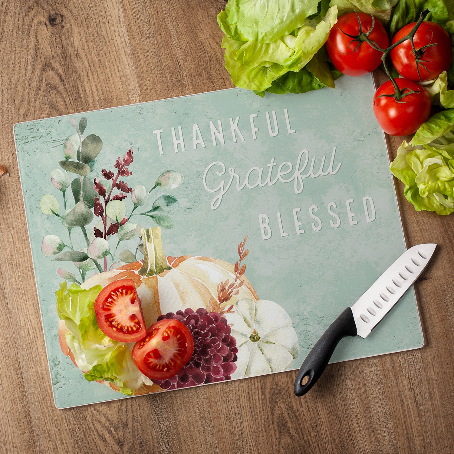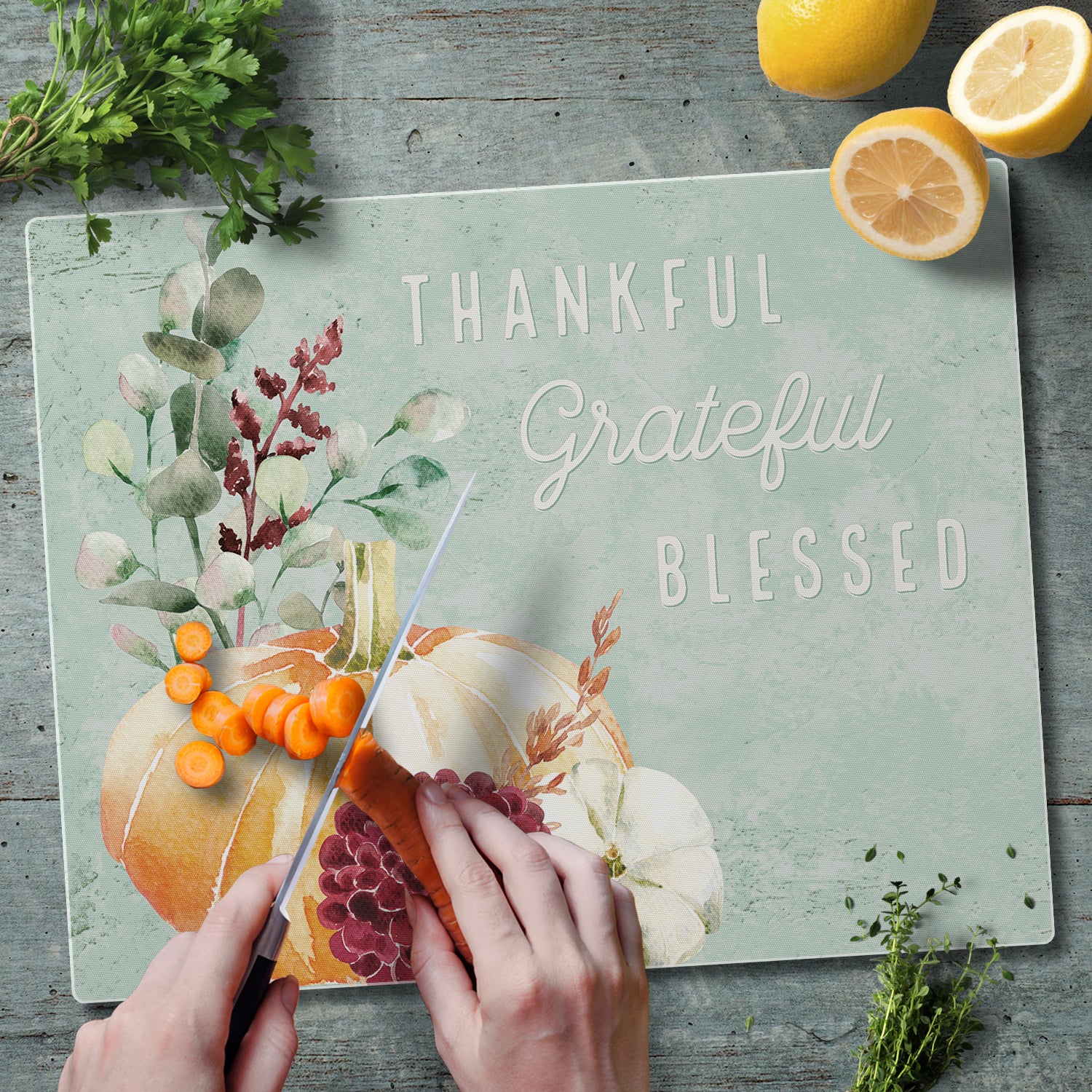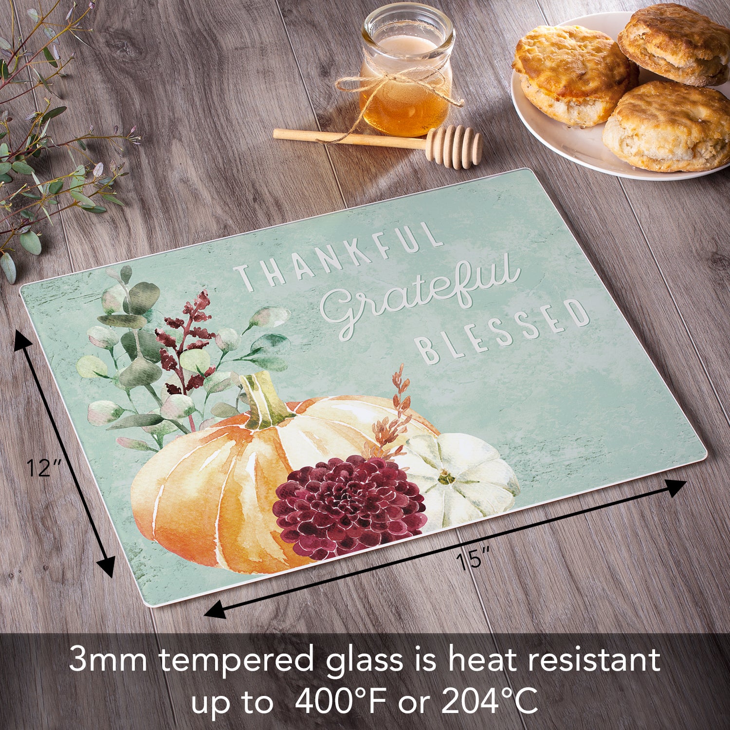 CounterArt Thankful Grateful Pumpkin 3mm Tempered Glass Cutting Board 15" x 12" Manufactured in the USA