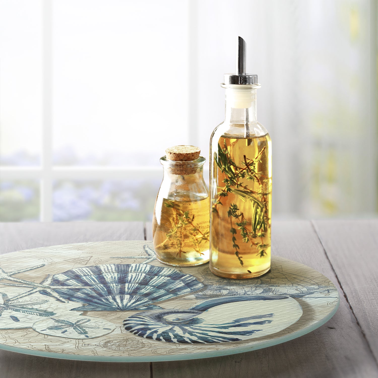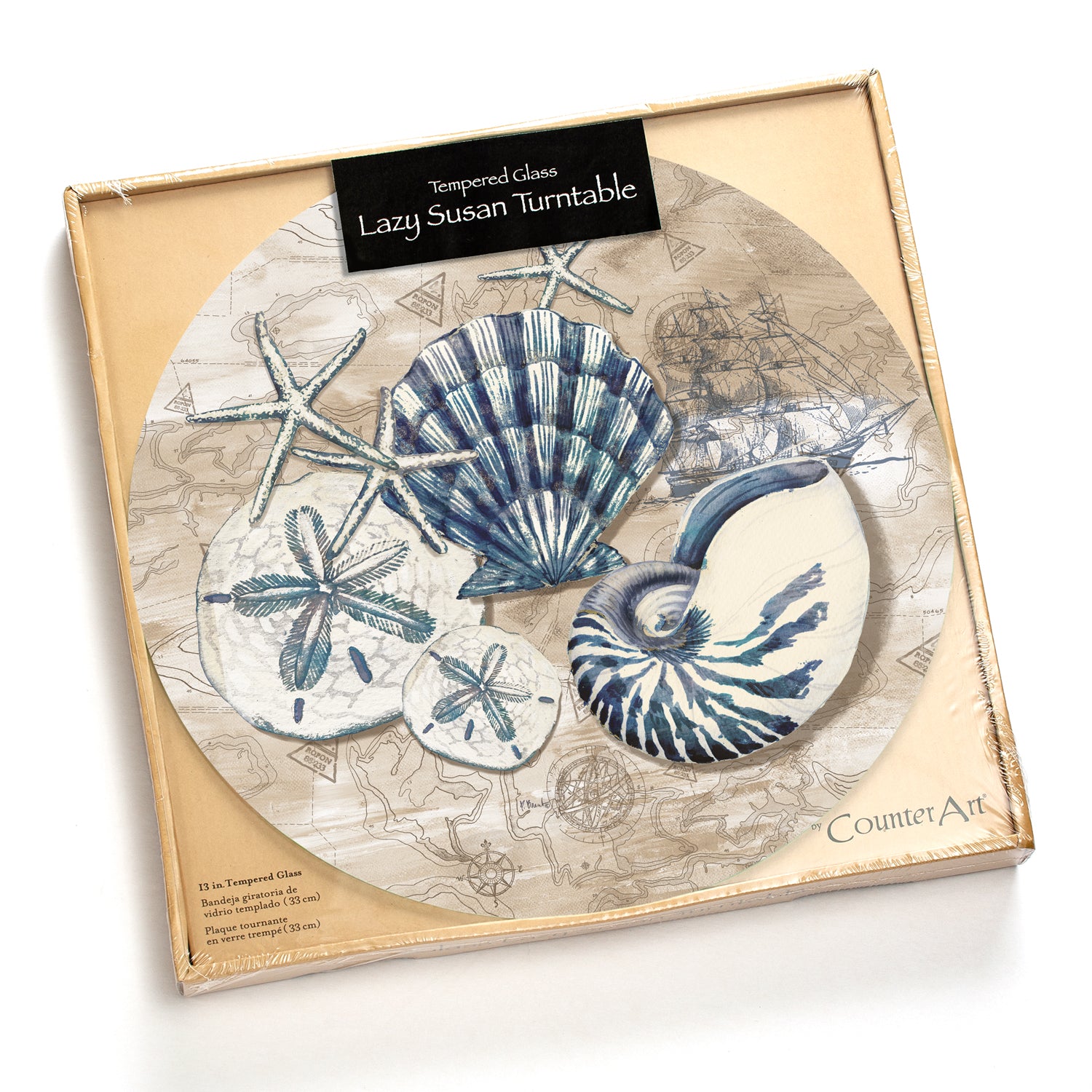 Counterart Tide Pool Shells 4mm Tempered Glass Lazy Susan Turntable 13" Diameter