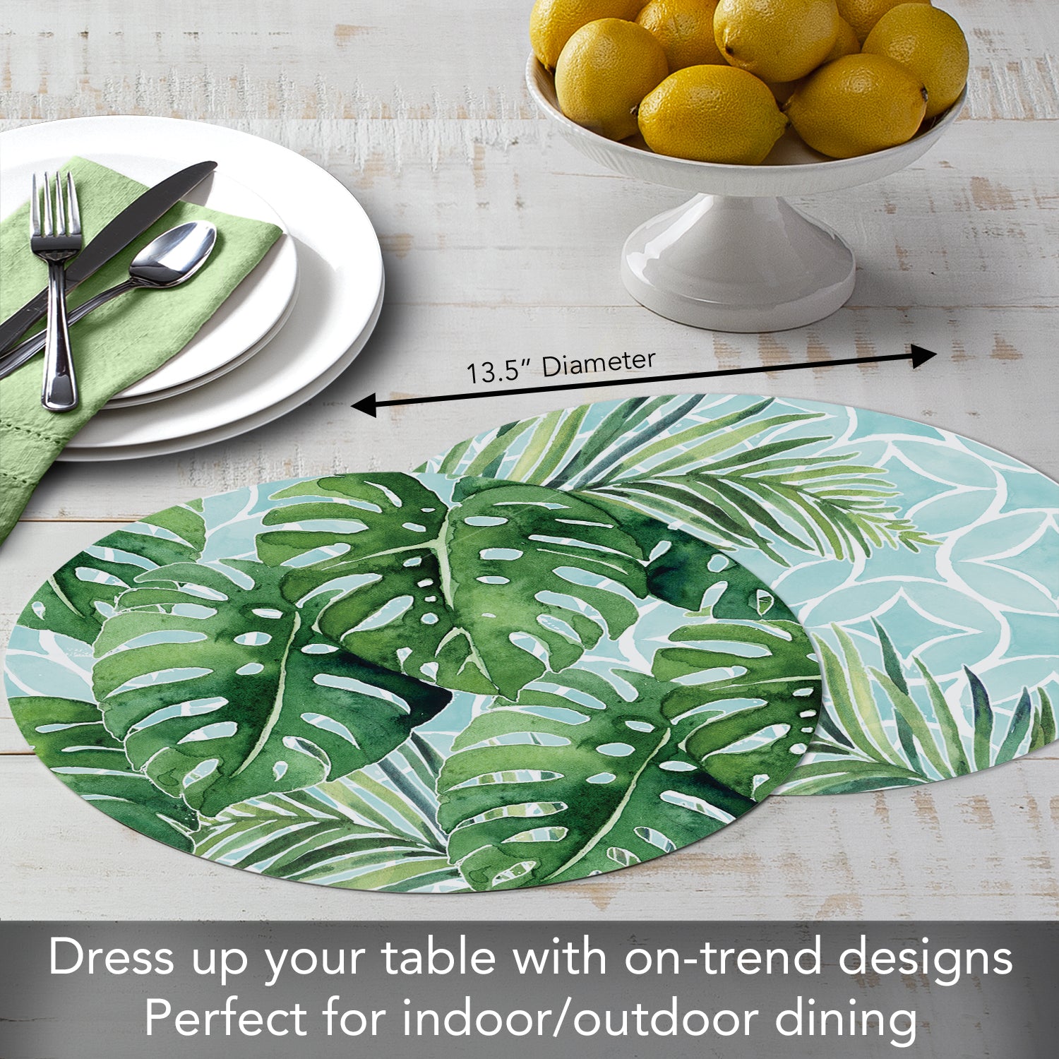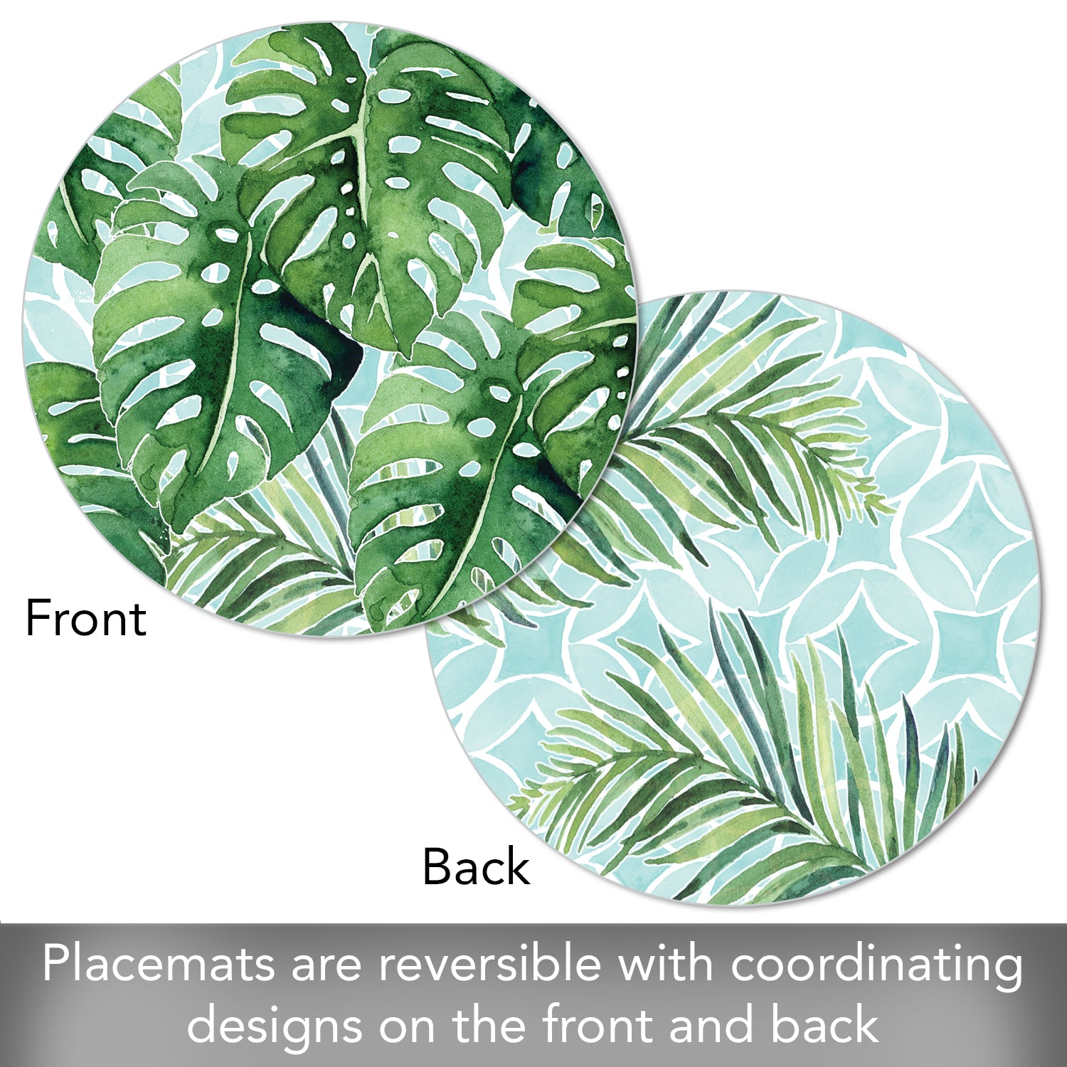 REVERSIBLE-Placemats are reversible, featuring different coordinating designs on both the front and back of each mat. Attractive coordinating designs are great for everyday meals, parties and outdoor entertaining.