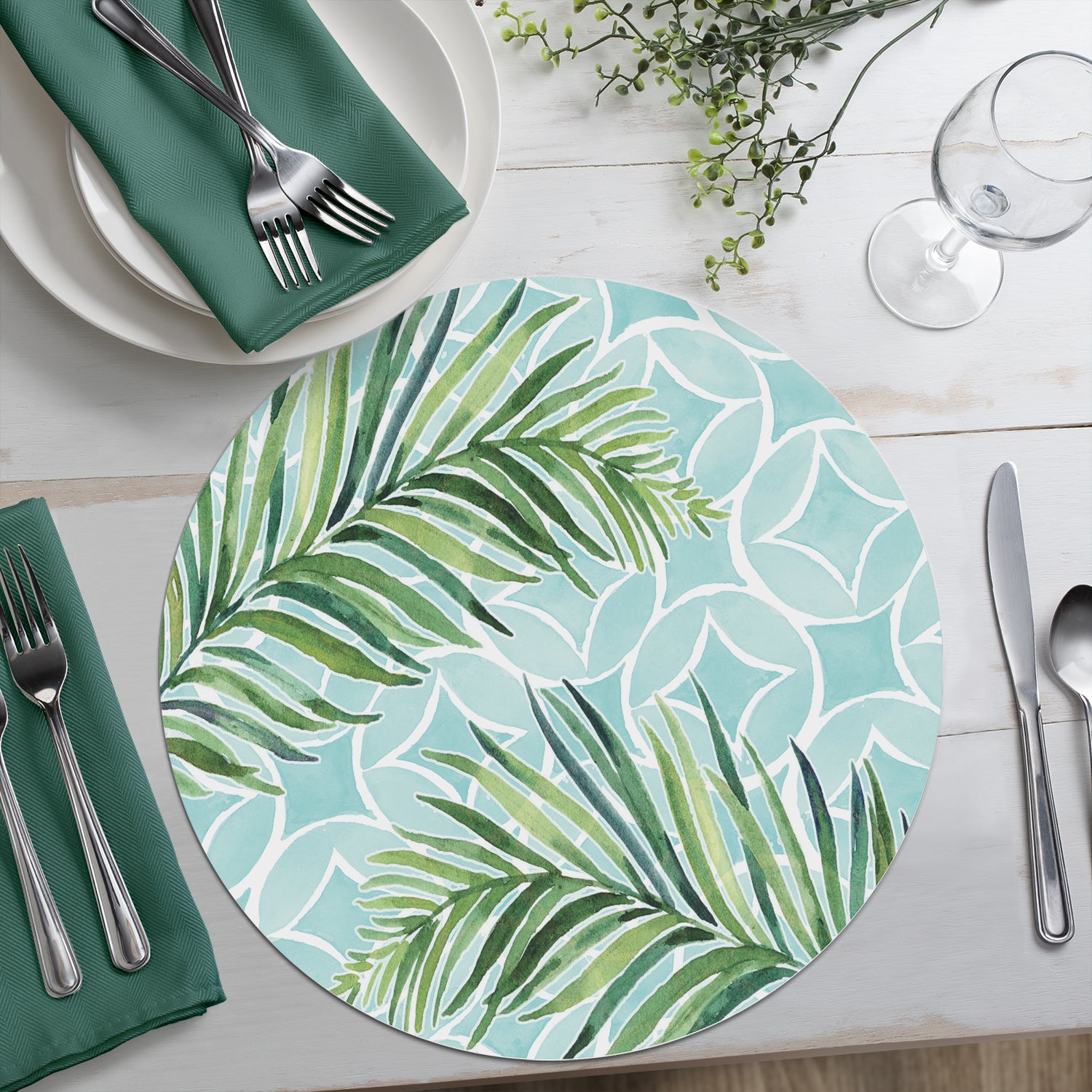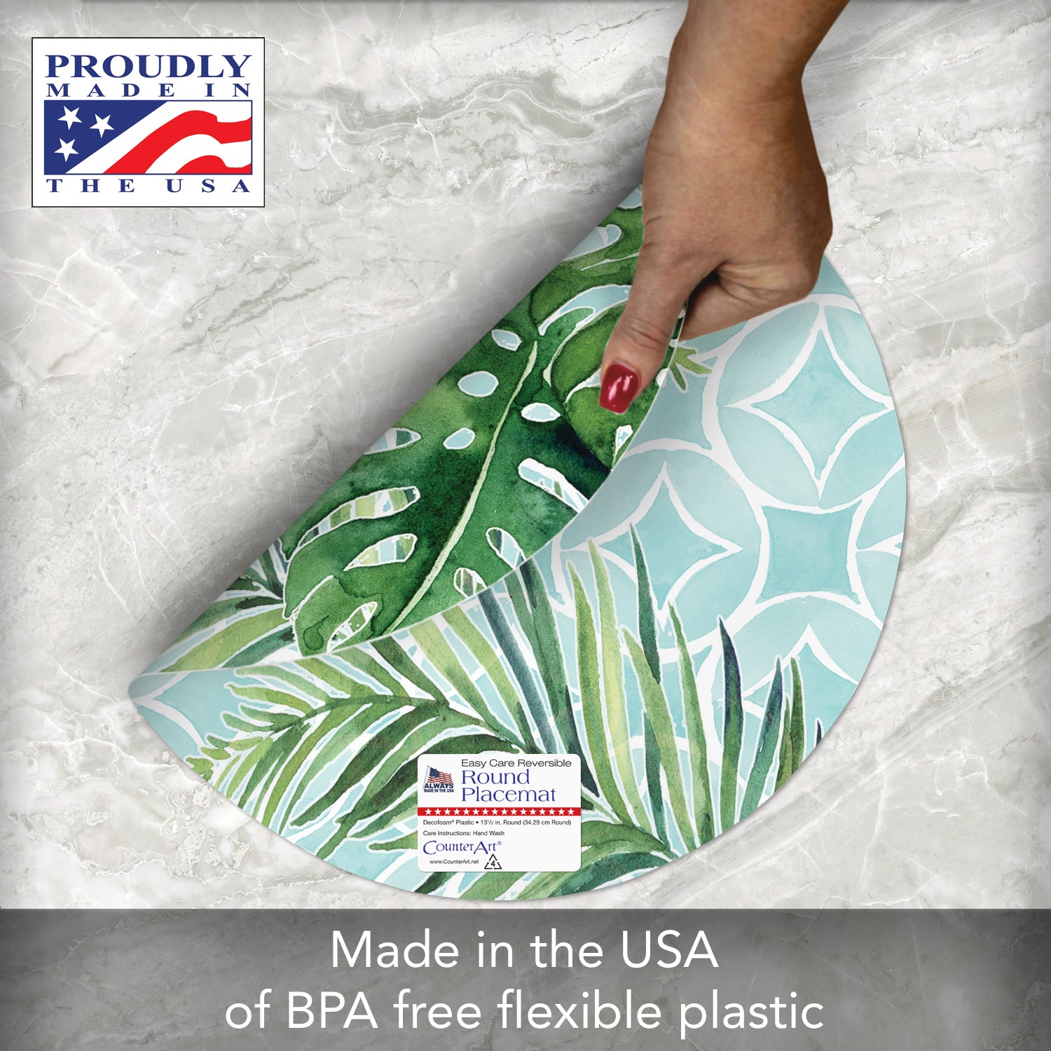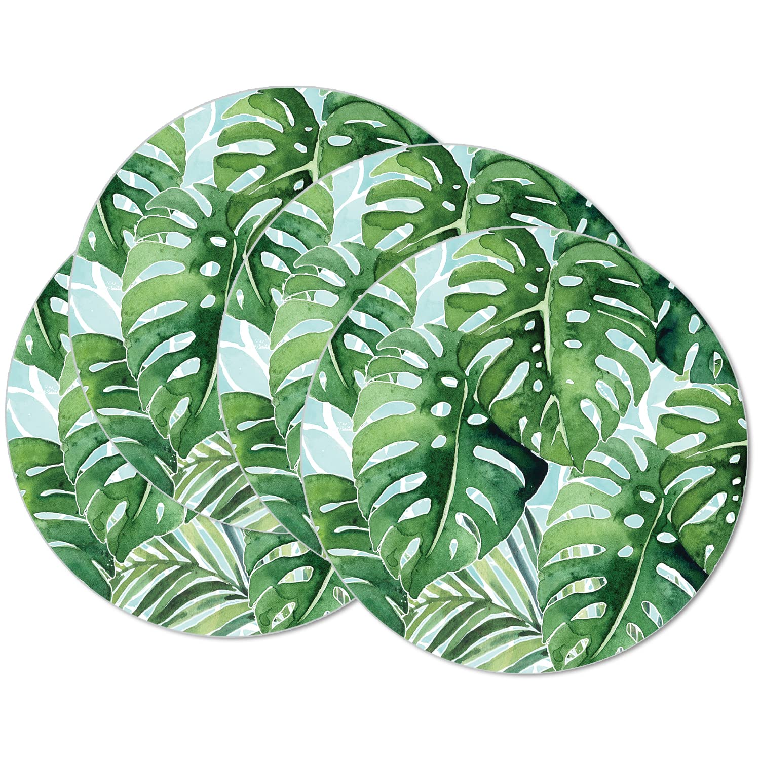 CounterArt Tropical Foliage 4 Pack Round Reversible Easy Care Flexible Placemats Made in the USA
