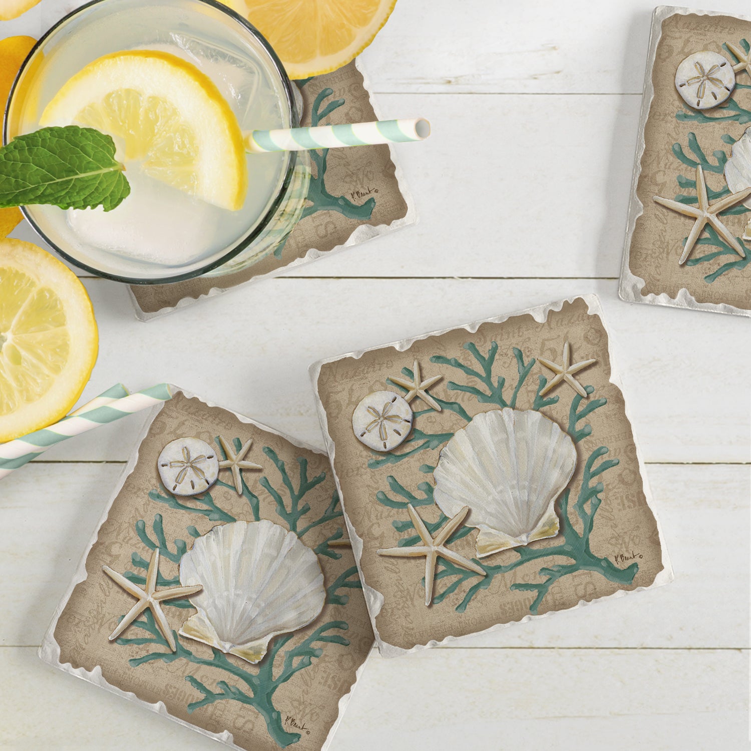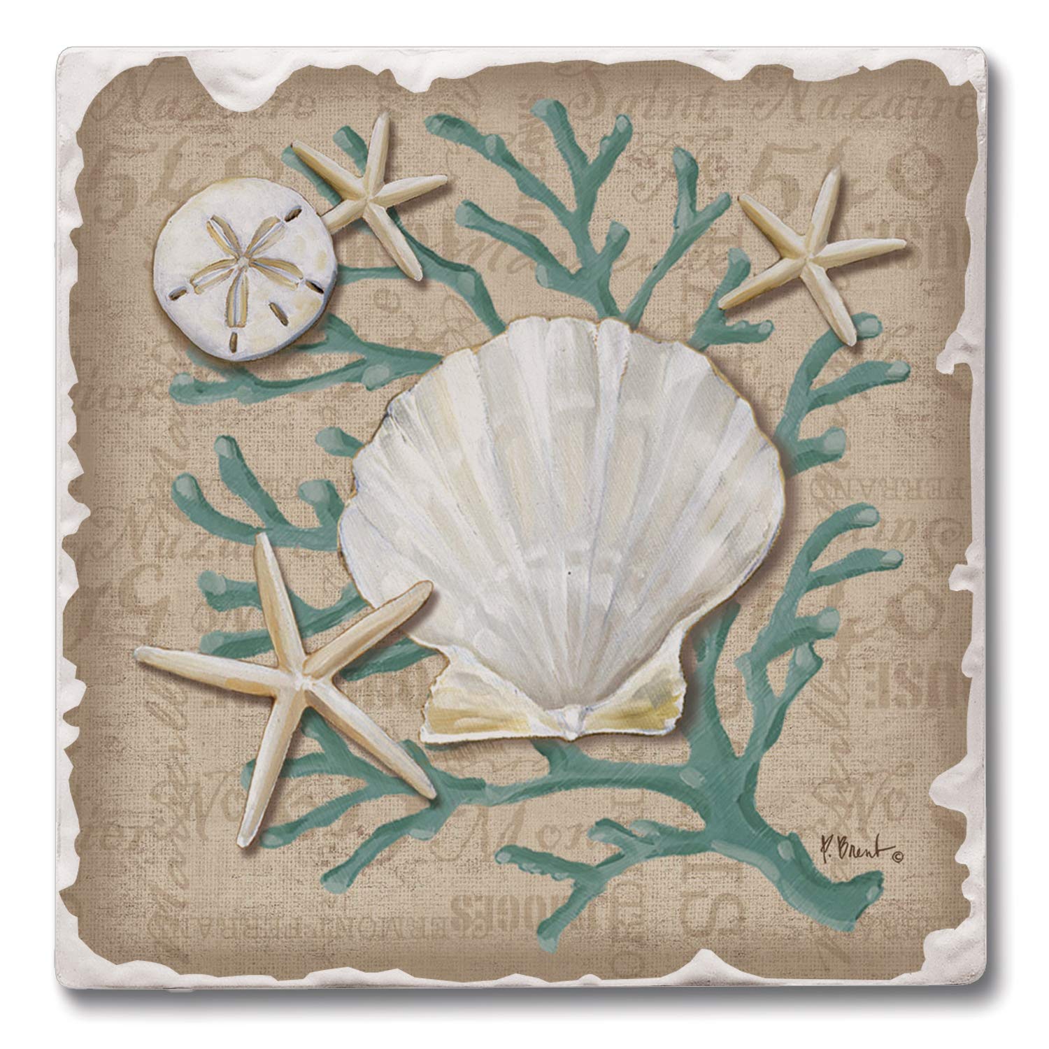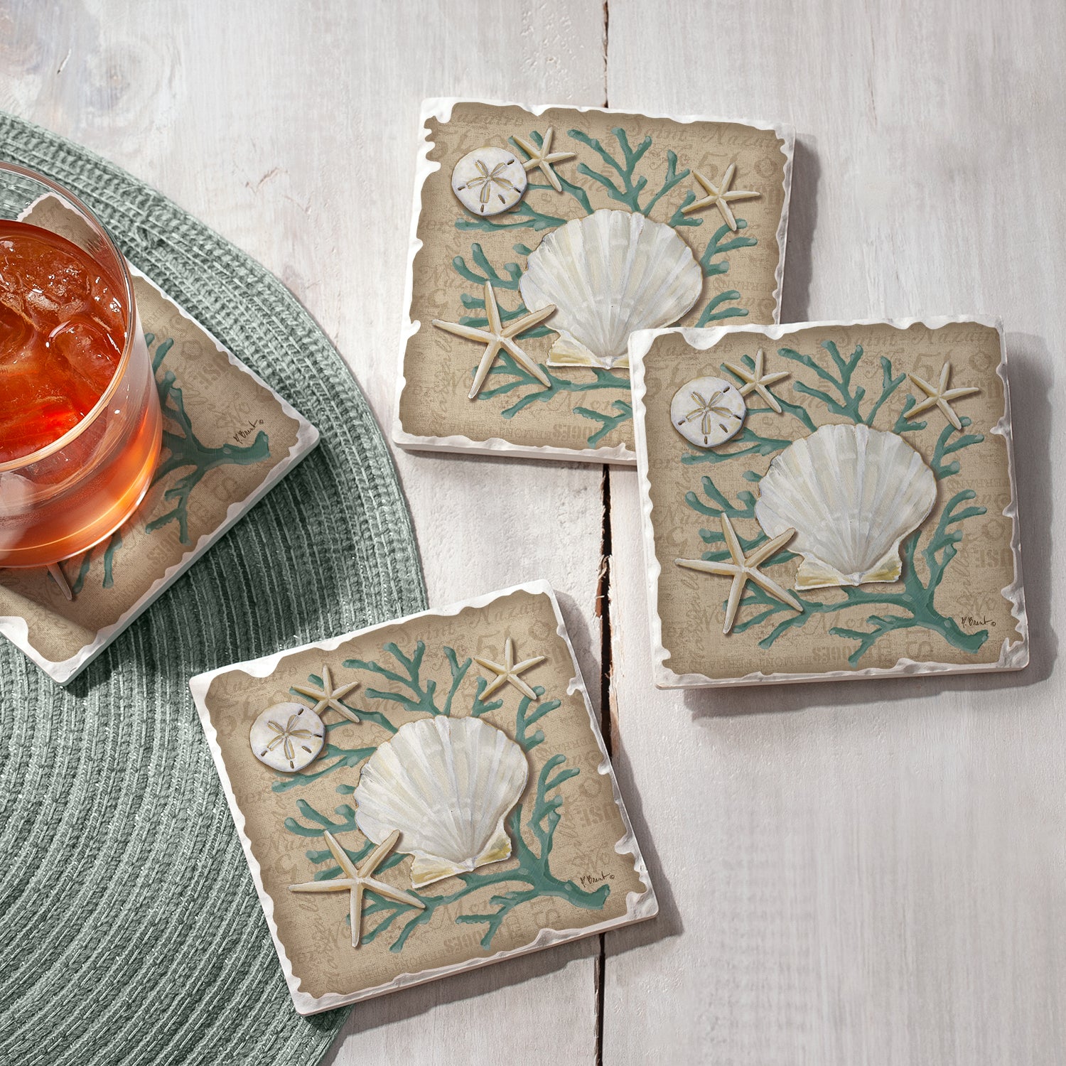 CounterArt Tumbled Tile Coasters, Linen Shells, Set of 4