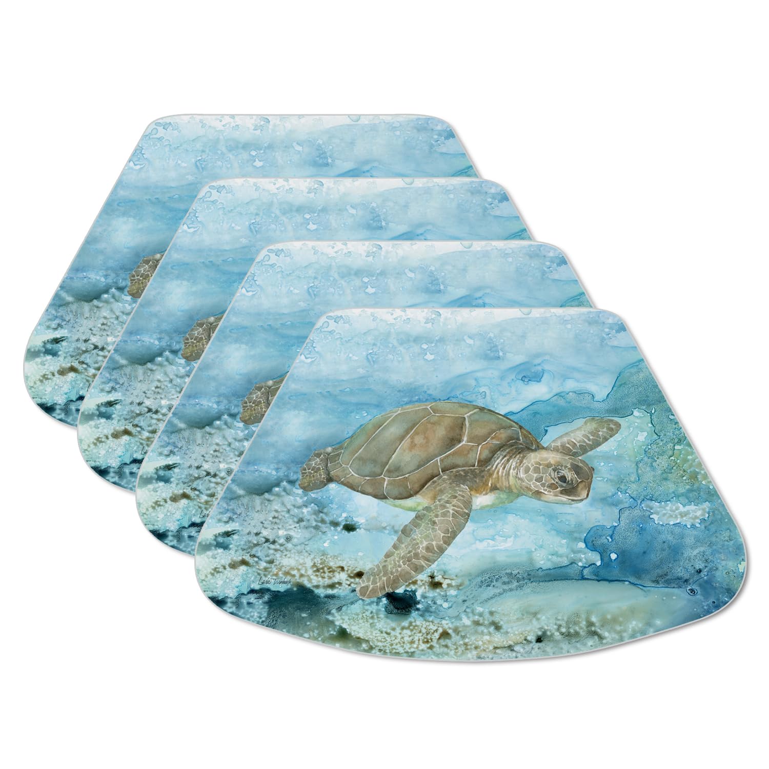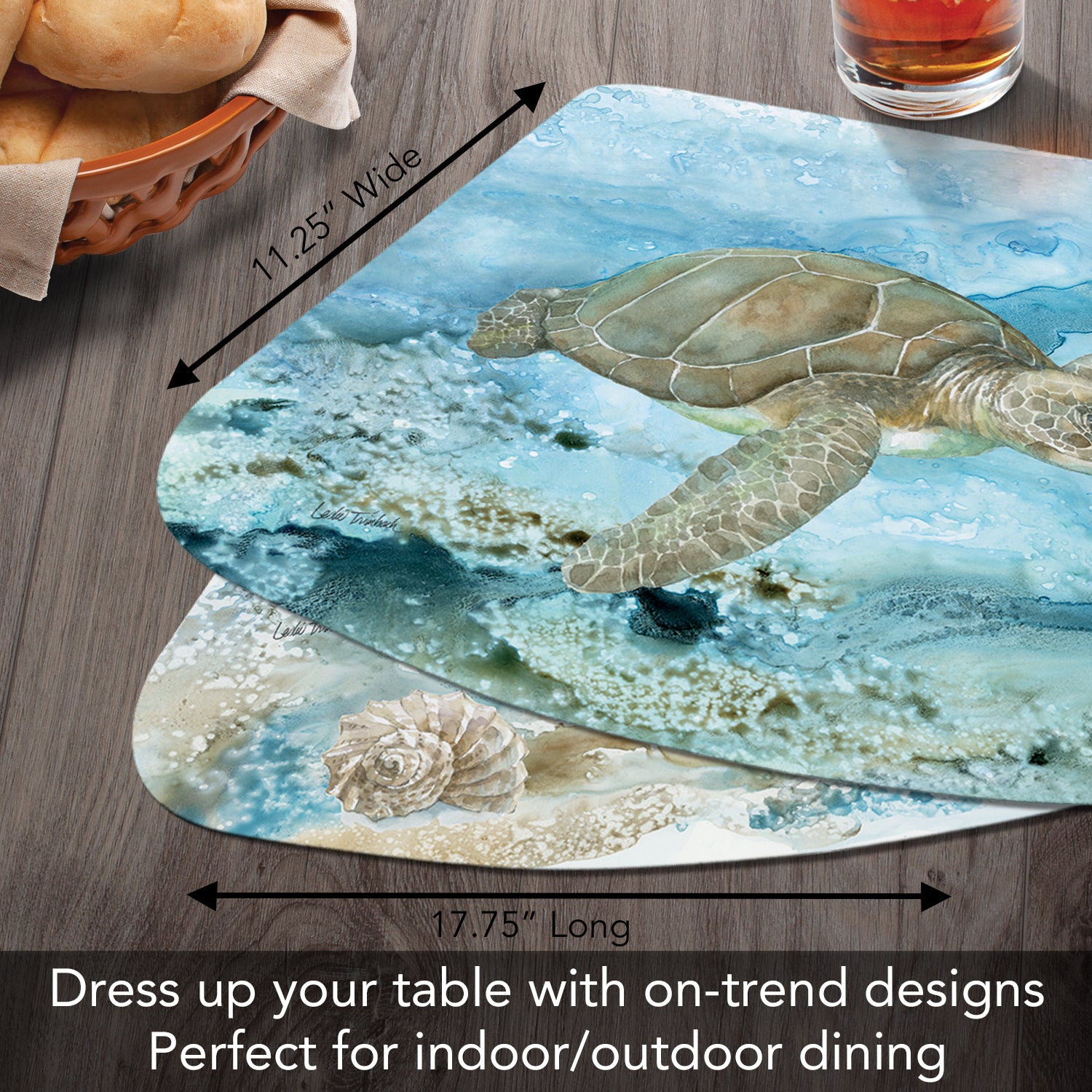 CounterArt Under Sea Life 4 Pack Wedge Shaped Reversible Easy Care Placemats Made in the USA