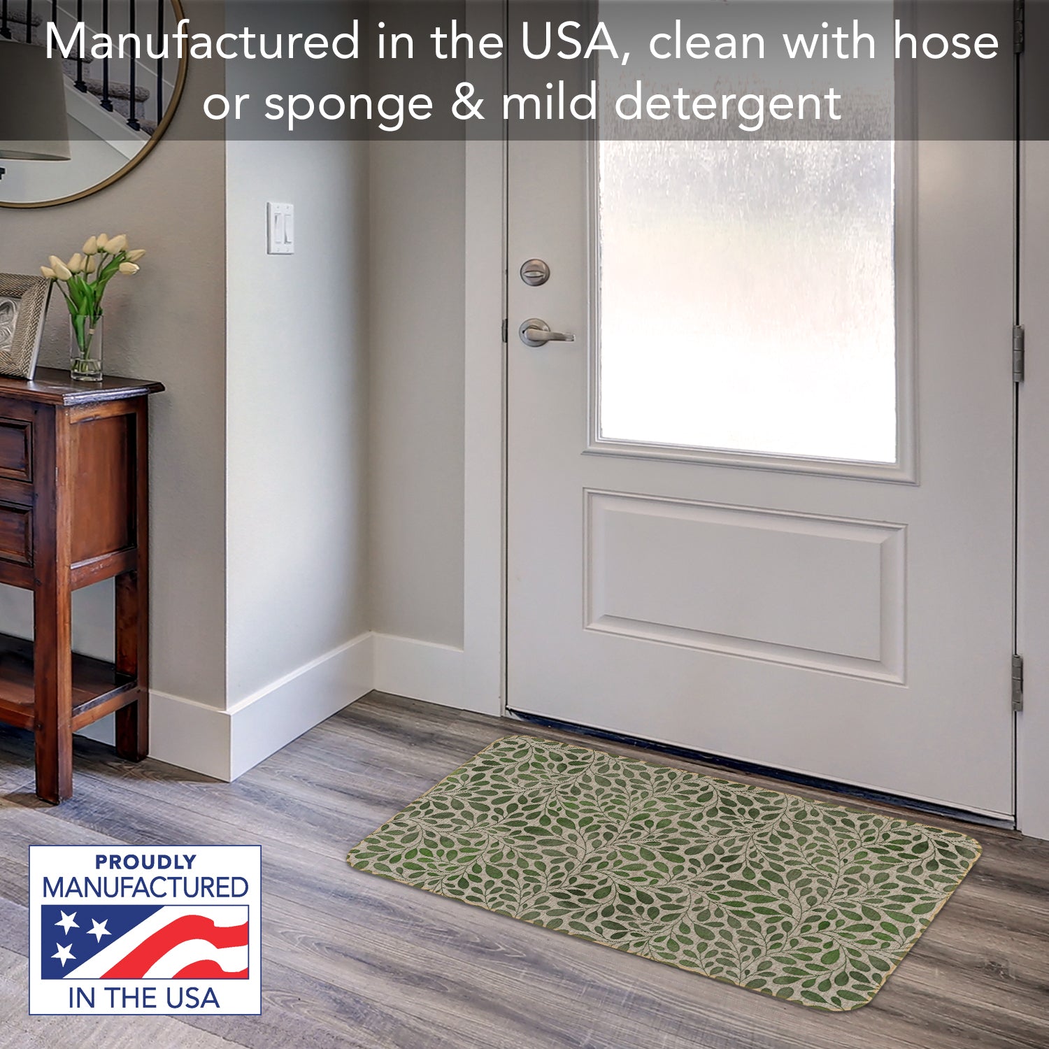 DURABLE & EASY TO CLEAN- Durable Woven Polyester surface with stitched edging has a look of natural linen. Non-skid rubber backing keeps the Floor Mat in place. Floor Mat is easy to clean with mild soap and water or by spraying off with garden hose then lying flat to dry.
