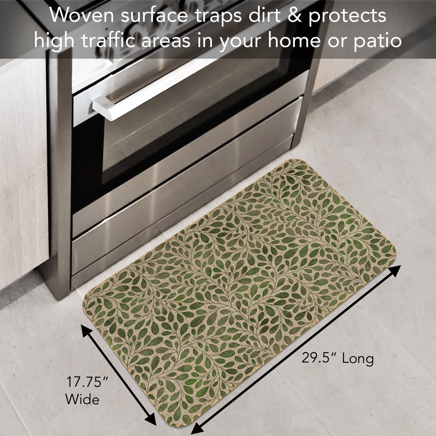 INDOOR/OUTDOOR-Natural Linen Look decorative floor mat adds style to entryways, porch, patio, kitchen, and other rooms in your home. Floor Mat protects floors in high traffic areas.