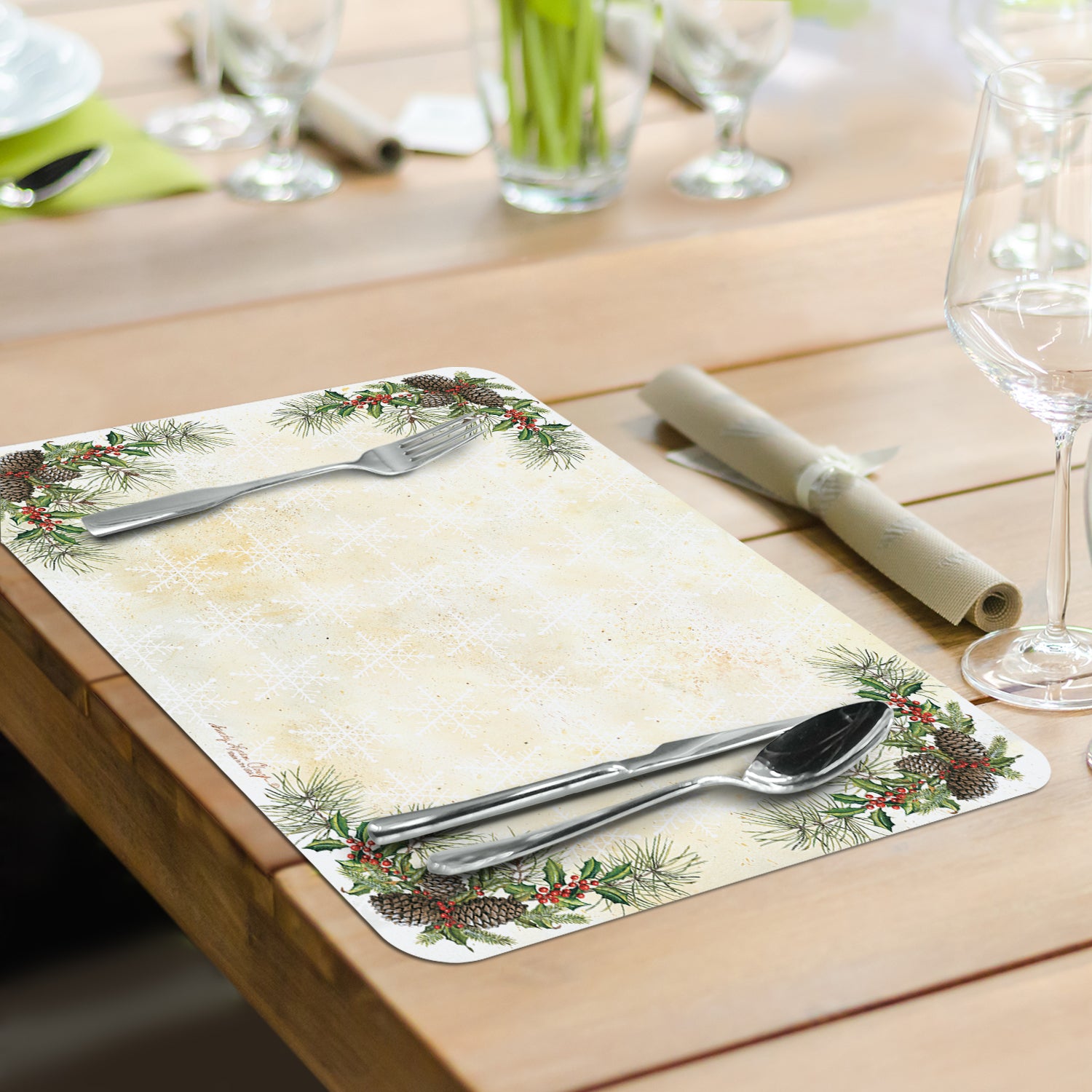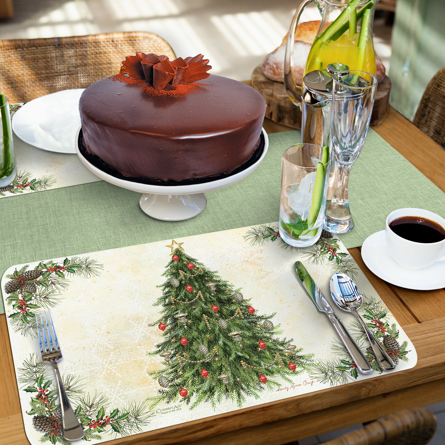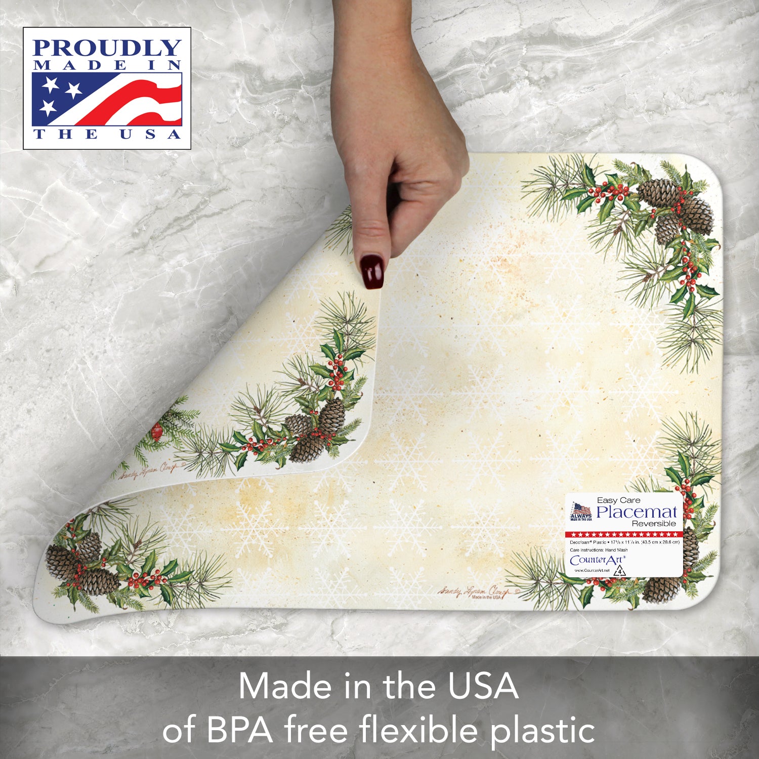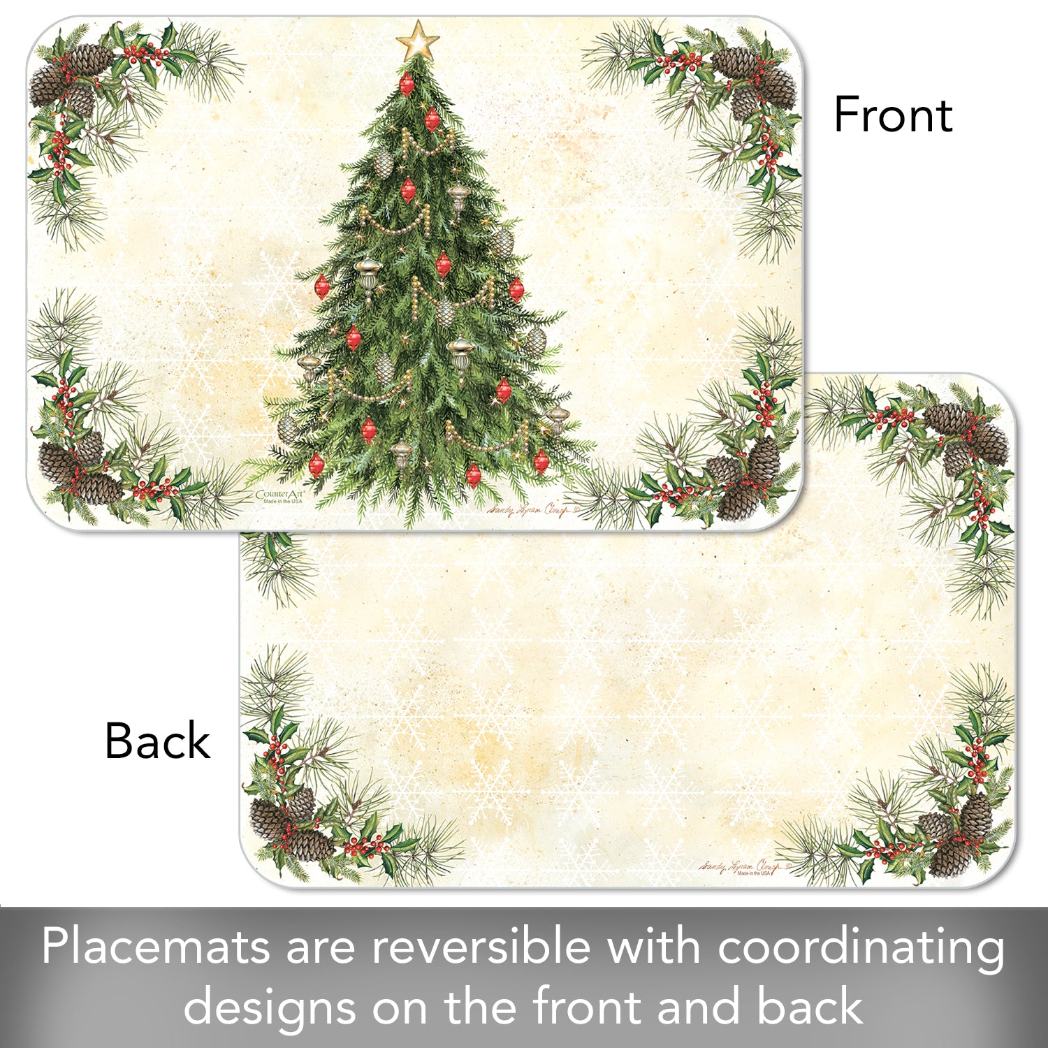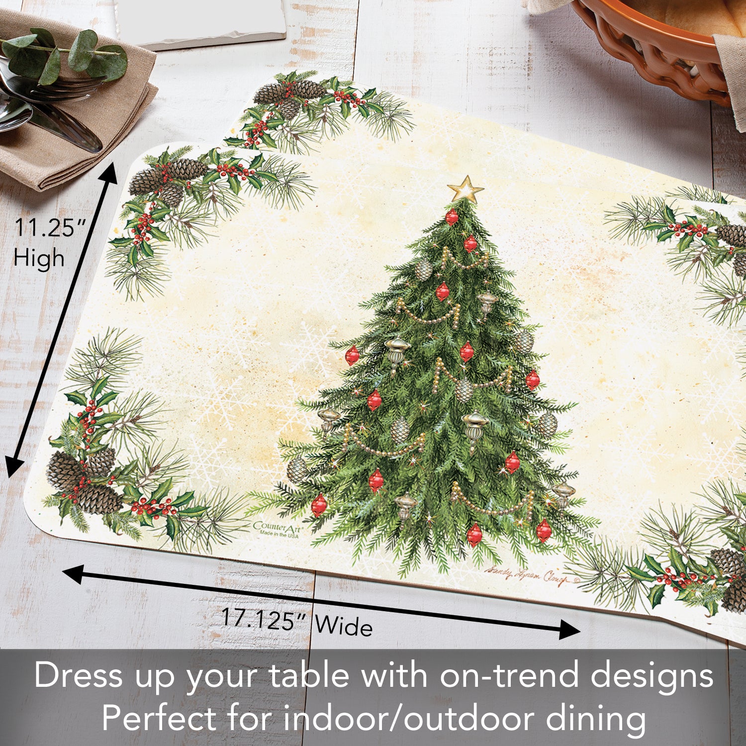 CounterArt Vintage Christmas Tree Reversible Easy Care Flexible Plastic Placemats 4 Pack Made in The USA BPA Free Easily Wipes Clean