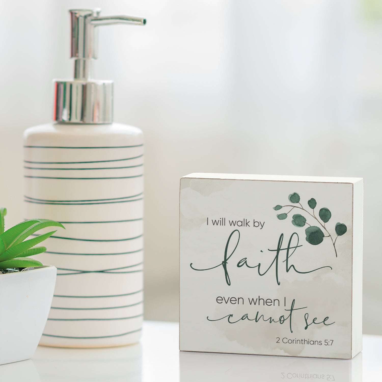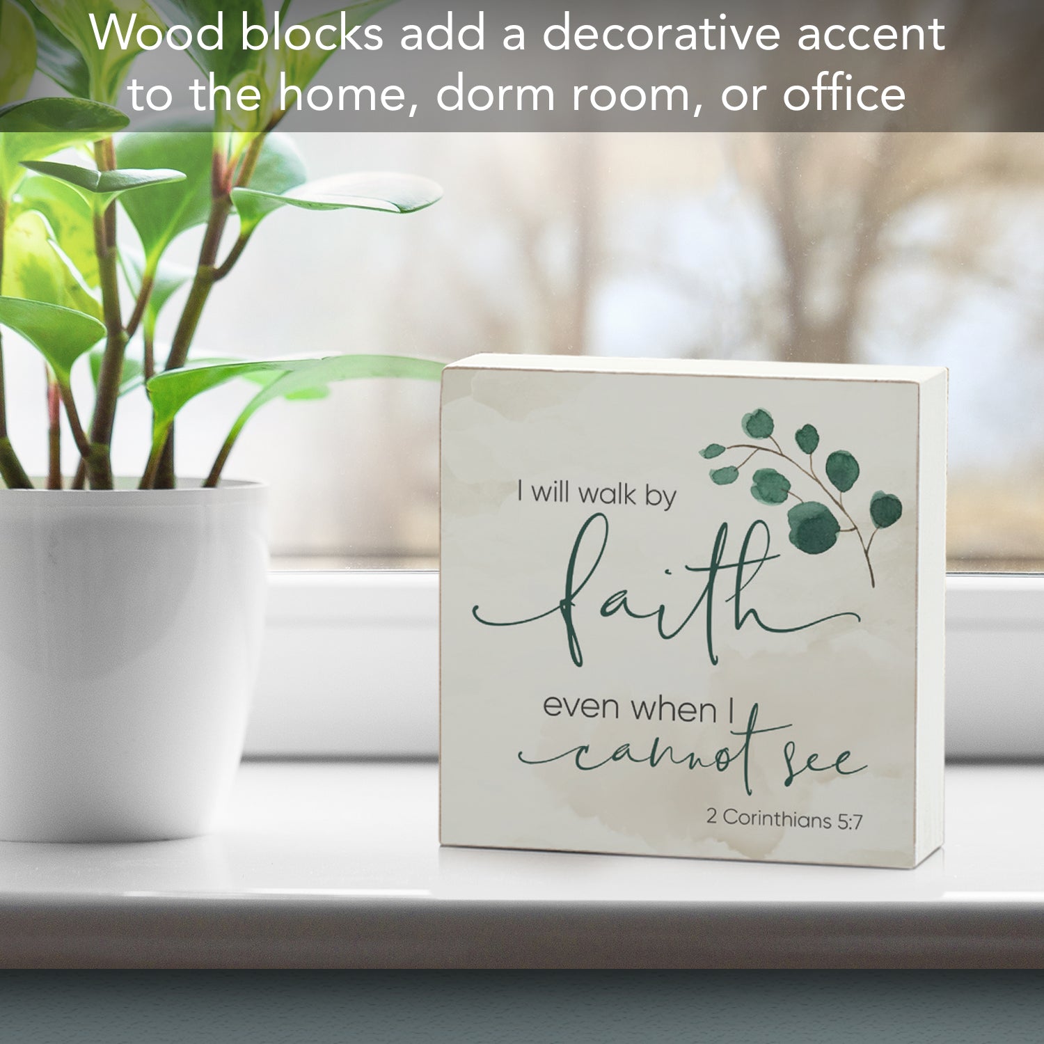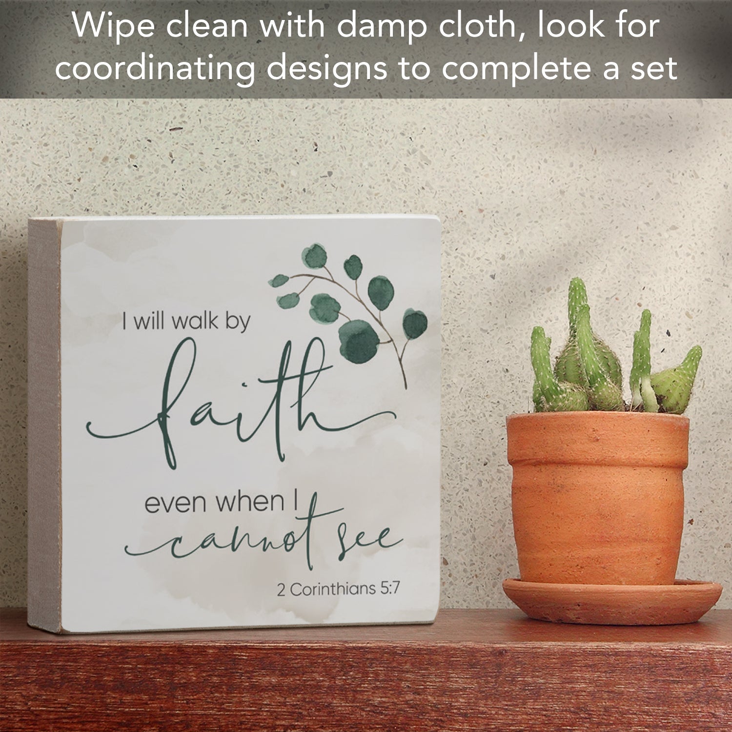 Walk by Faith Decorative Faith Driven Wooden Home Accent Sign 3.75" Square Made in the USA