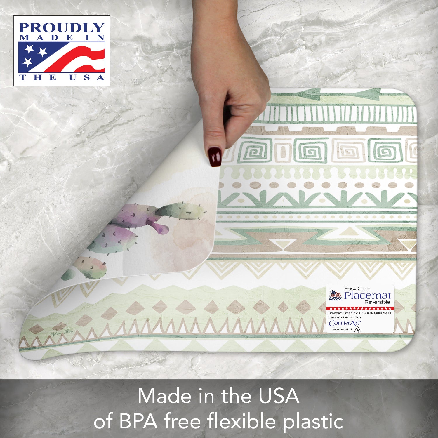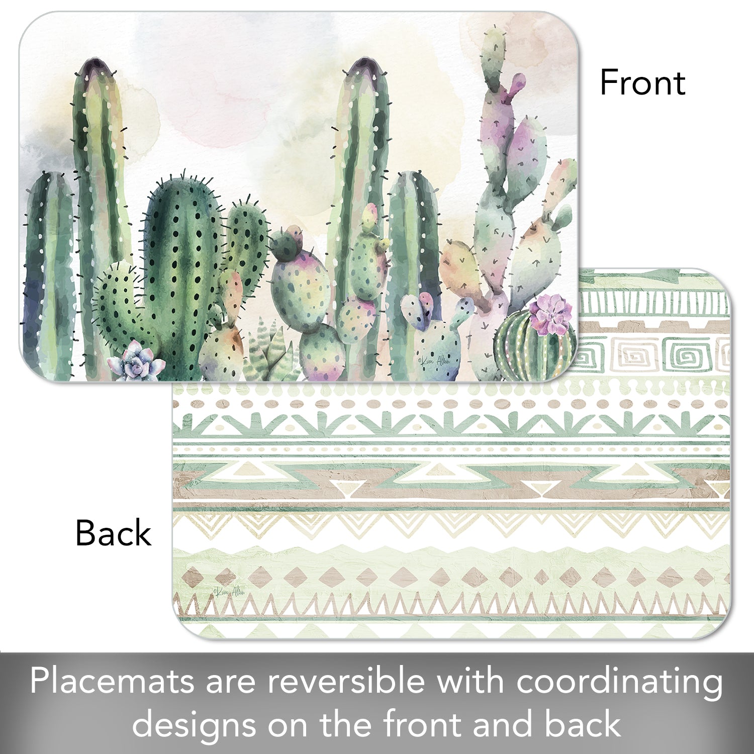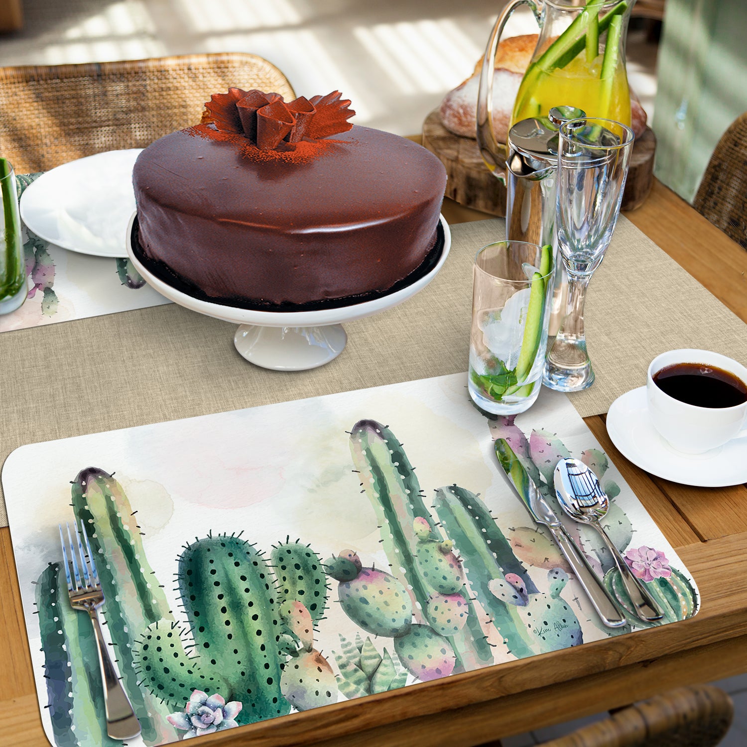 CounterArt Watercolor Cacti 4 Pack Reversible Easy Care Flexible Placemats Made in the USA