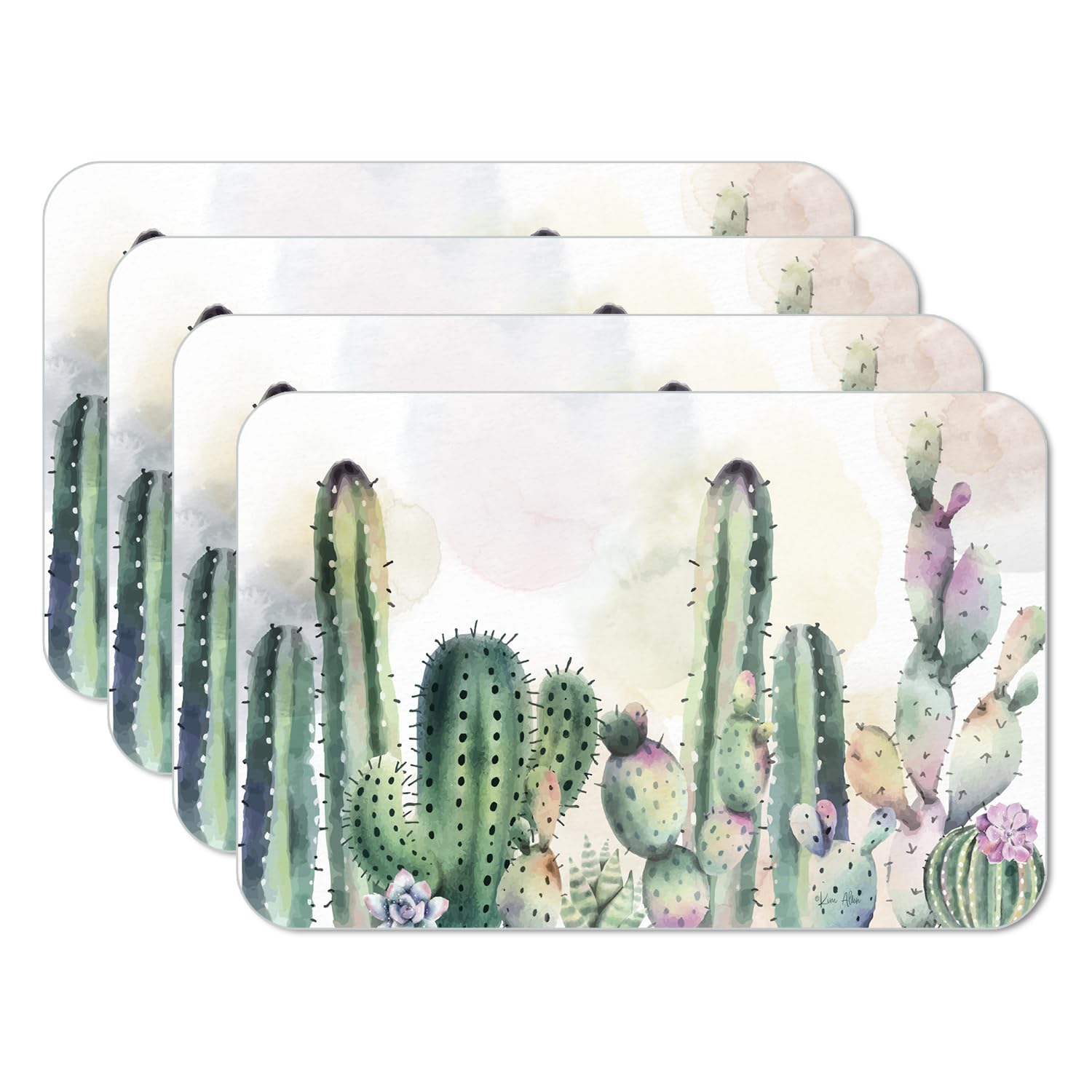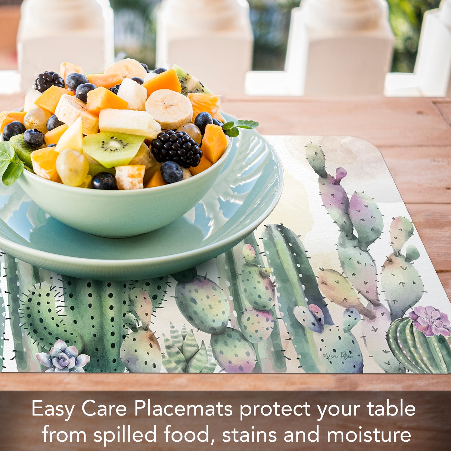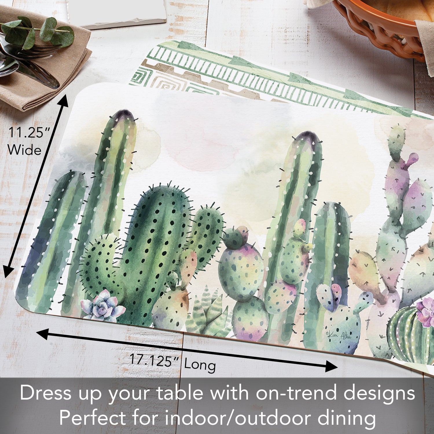 CounterArt Watercolor Cacti 4 Pack Reversible Easy Care Flexible Placemats Made in the USA