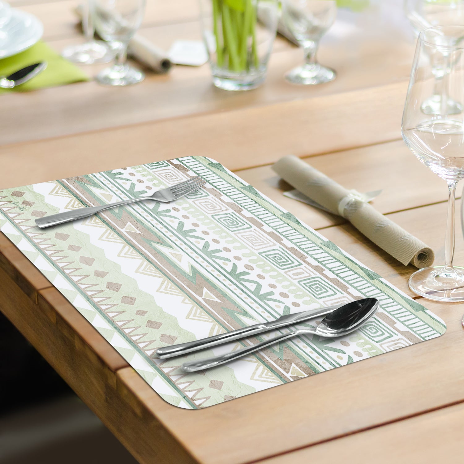 REVERSIBLE-Each Placemat features a coordinating design printed on the opposite side. Placemats are constructed of BPA and PVC free flexible plastic.