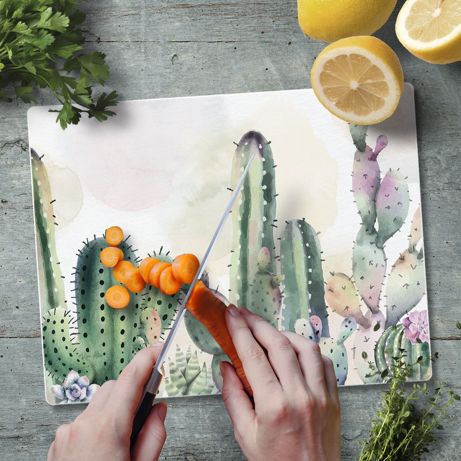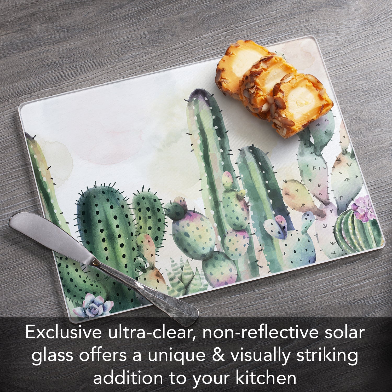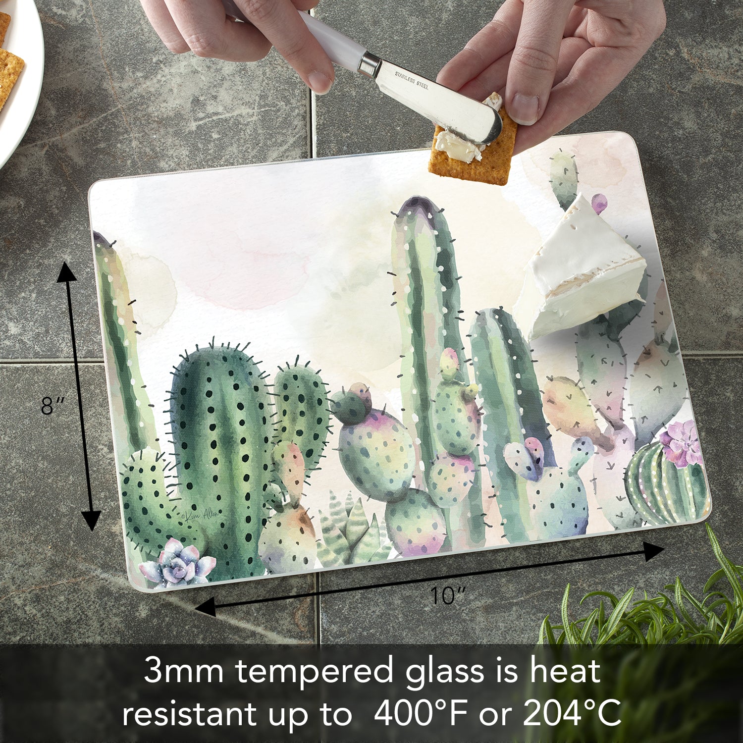 CounterArt Watercolor Cactus 3mm Tempered Glass Cutting Board 10” x 8” Manufactured in the USA