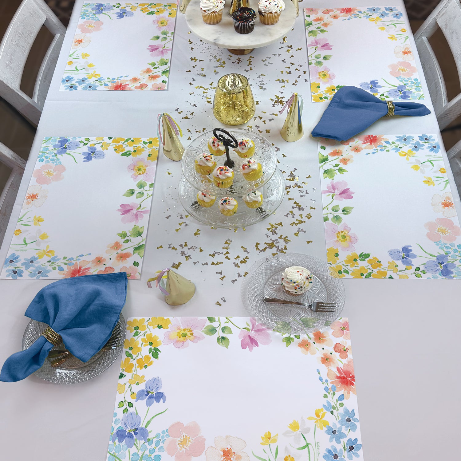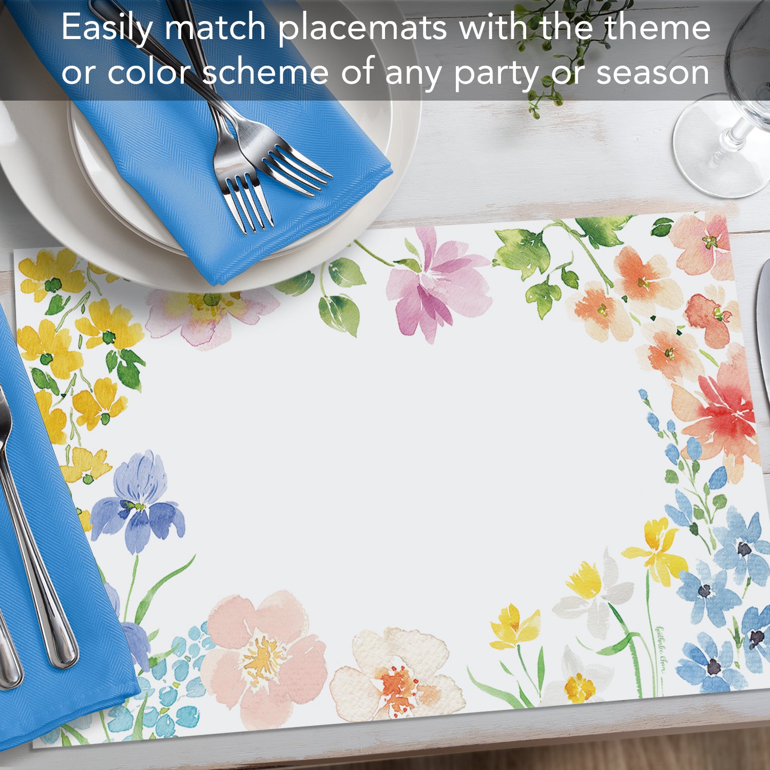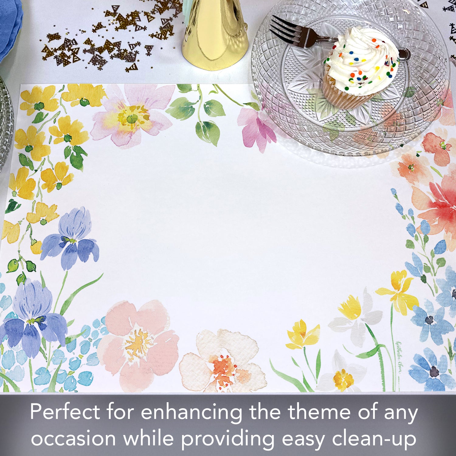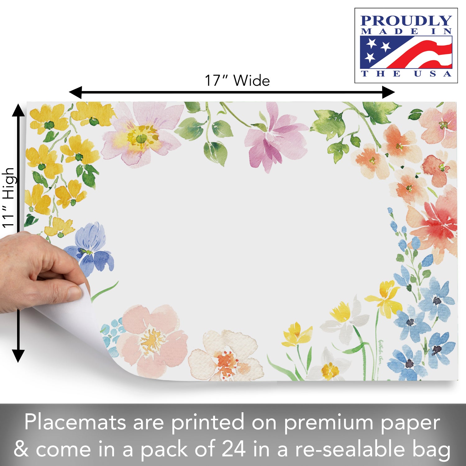 Watercolor Florals 24 Premium Paper Placemats in Resealable Storage Bag Made in the USA 17" x 11"