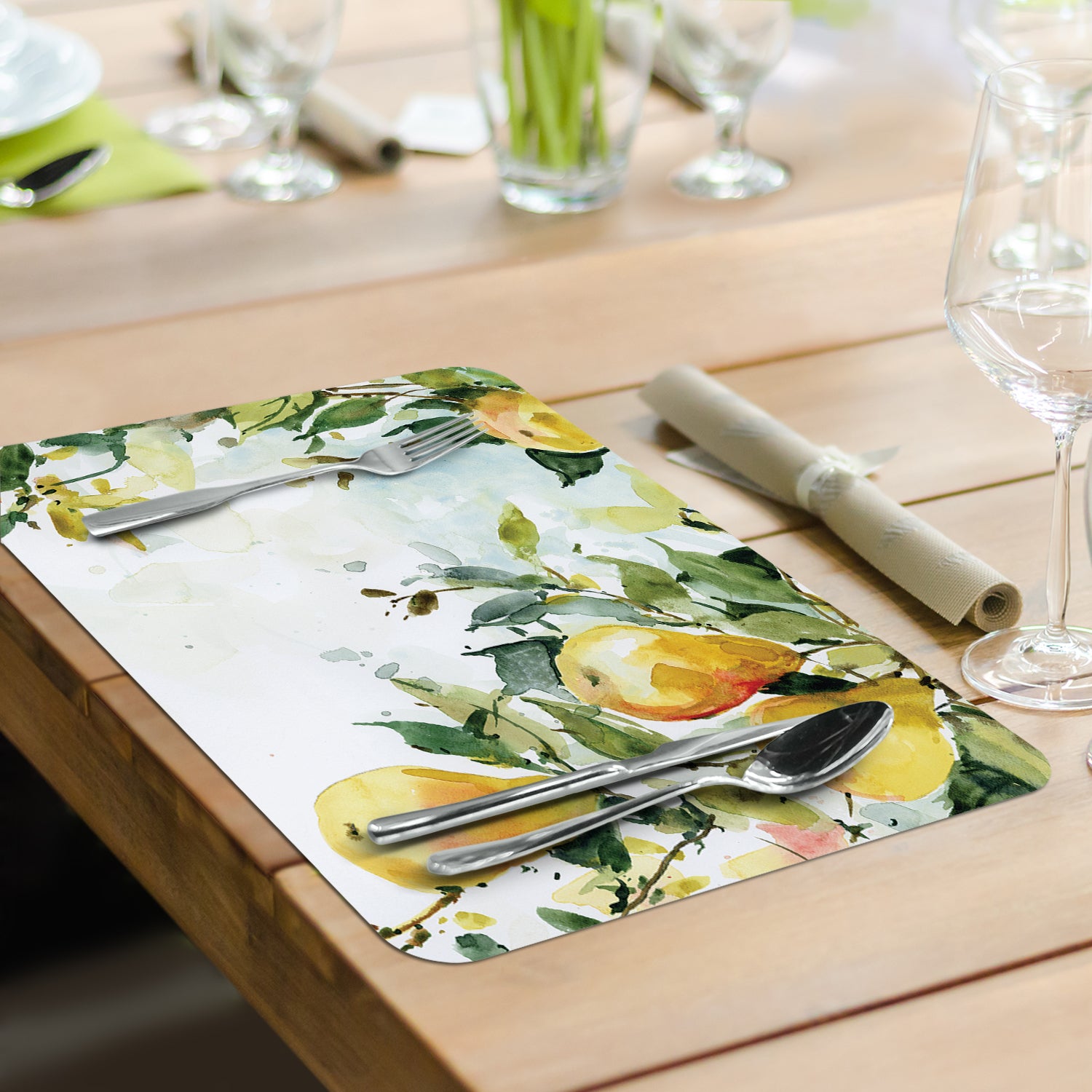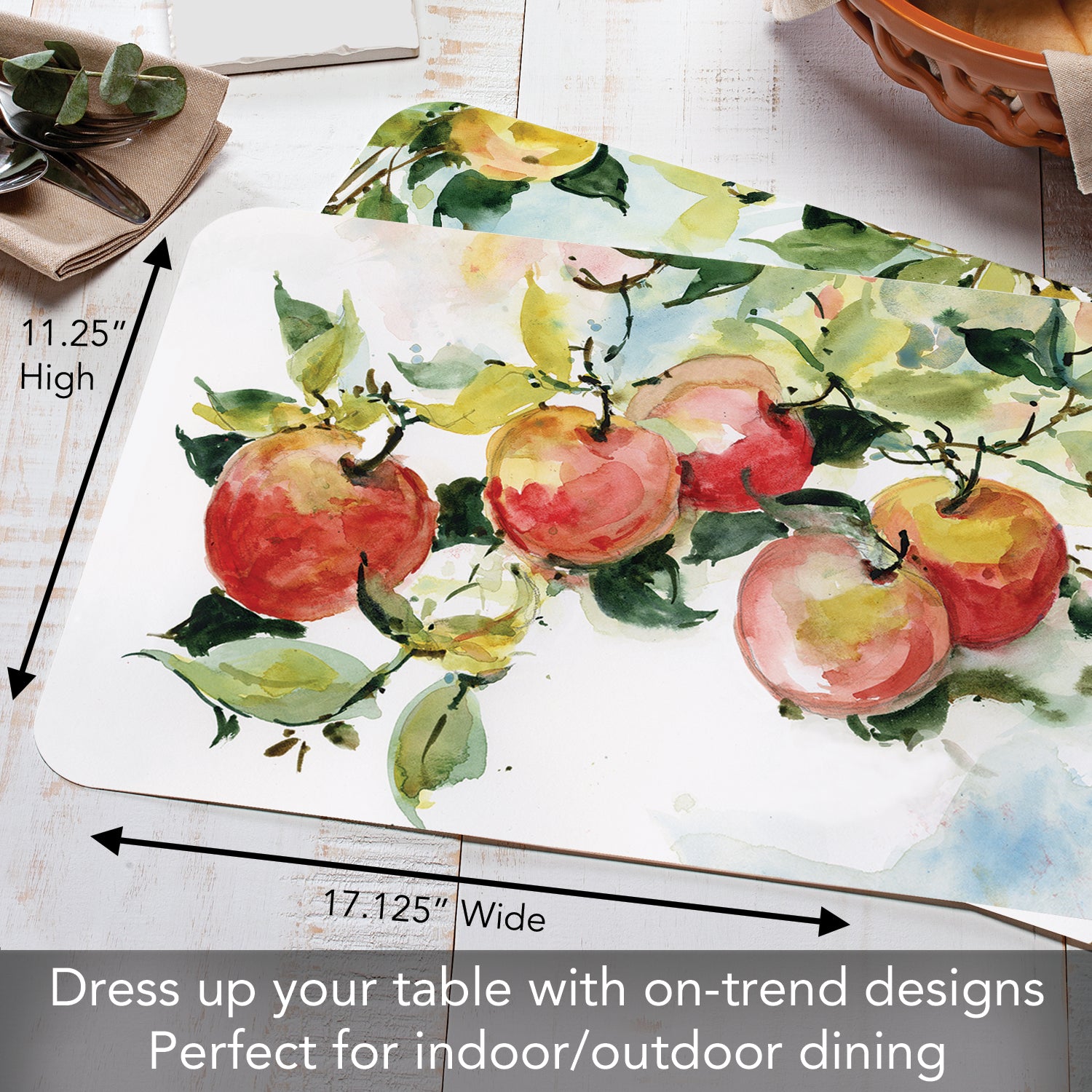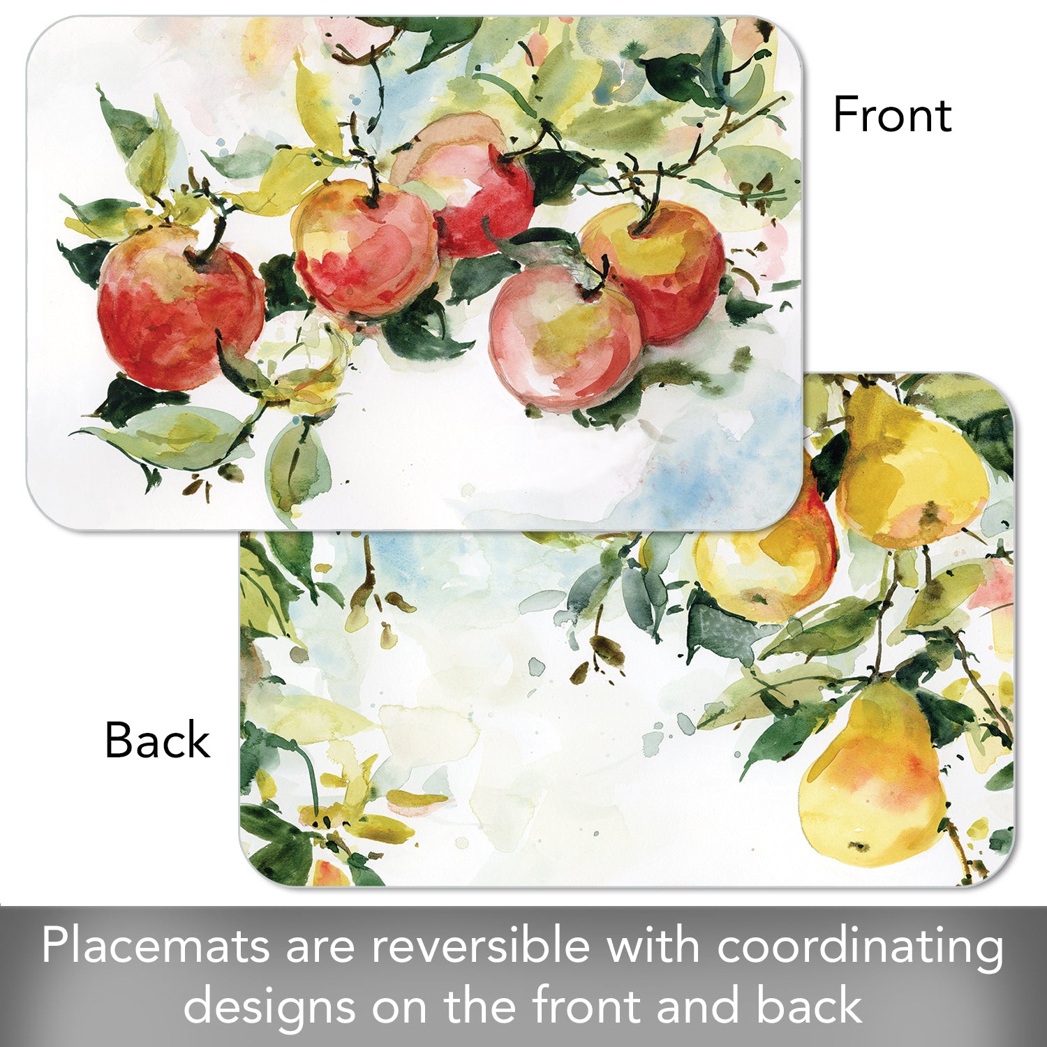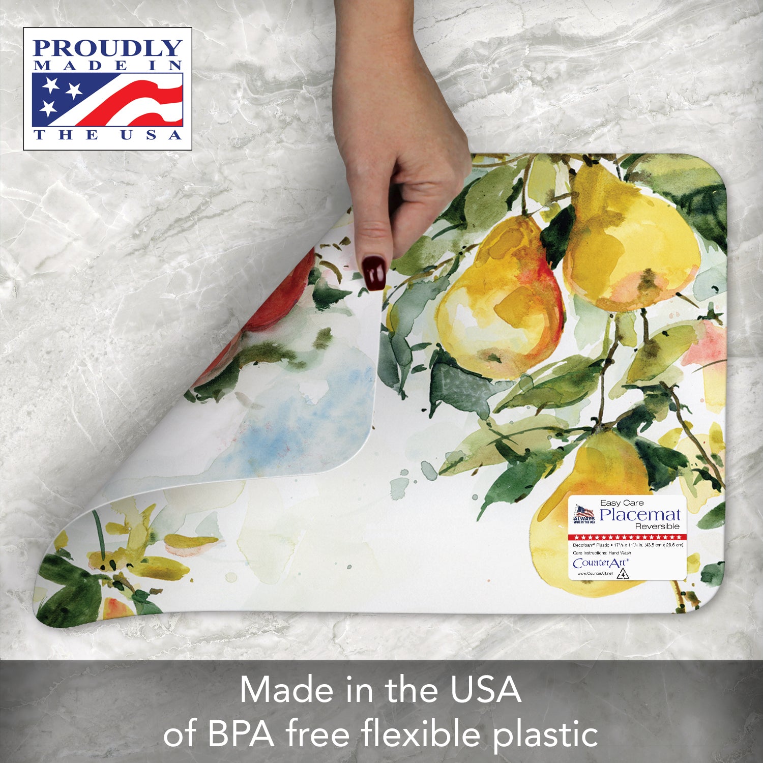 CounterArt Watercolor Fruit 4 Pack Reversible Easy Care Flexible Placemats Made in the USA