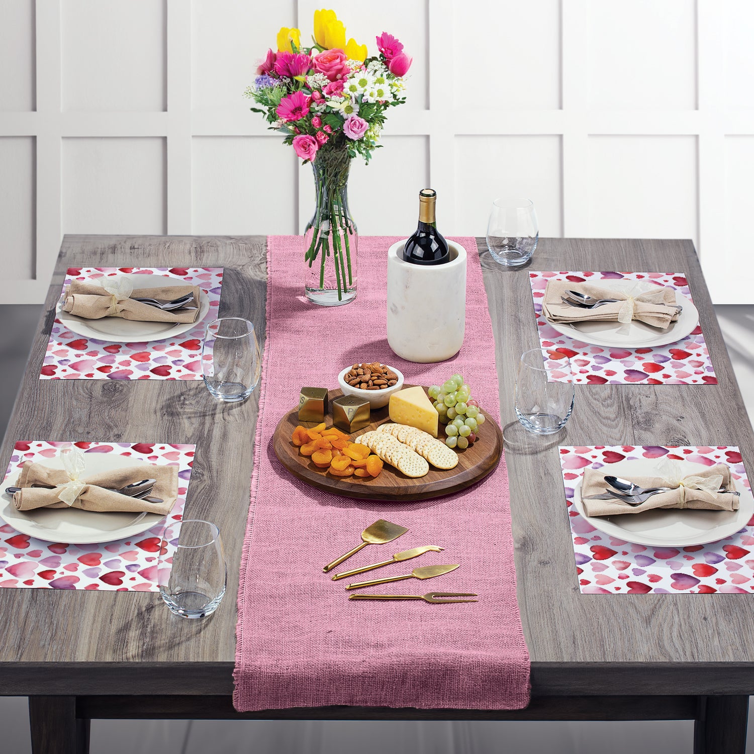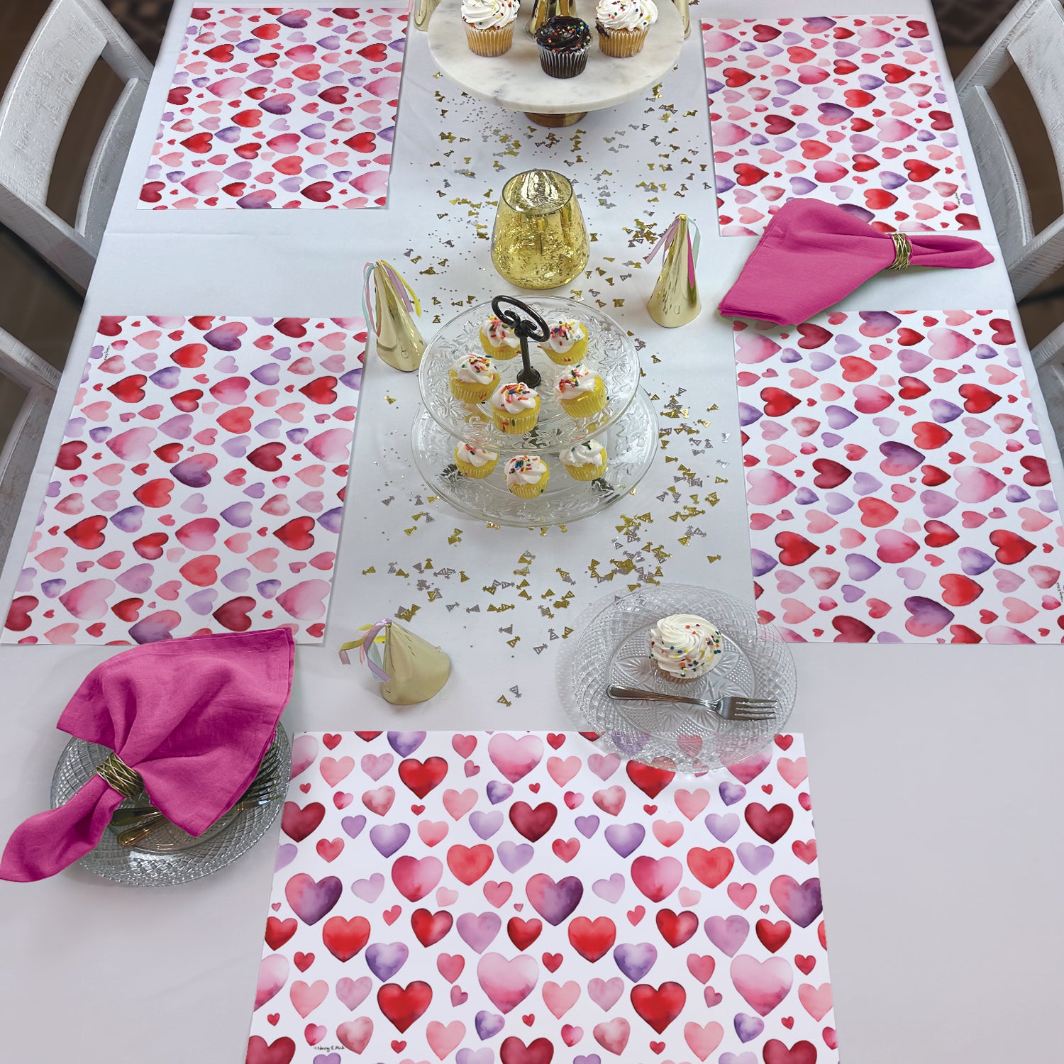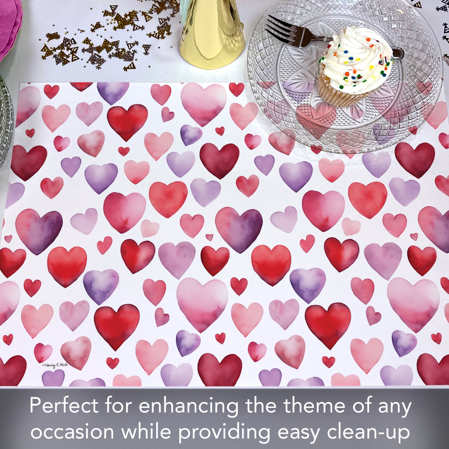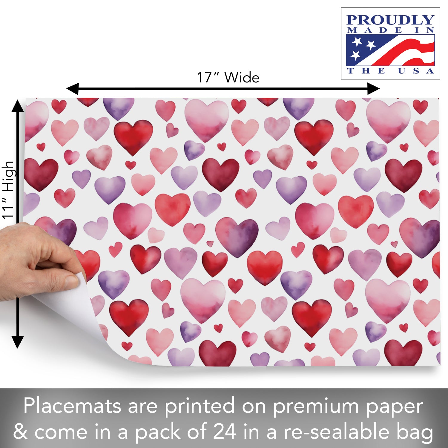 Watercolor Hearts 24 Premium Paper Placemats in Resealable Storage Bag Made in the USA 17" x 11"