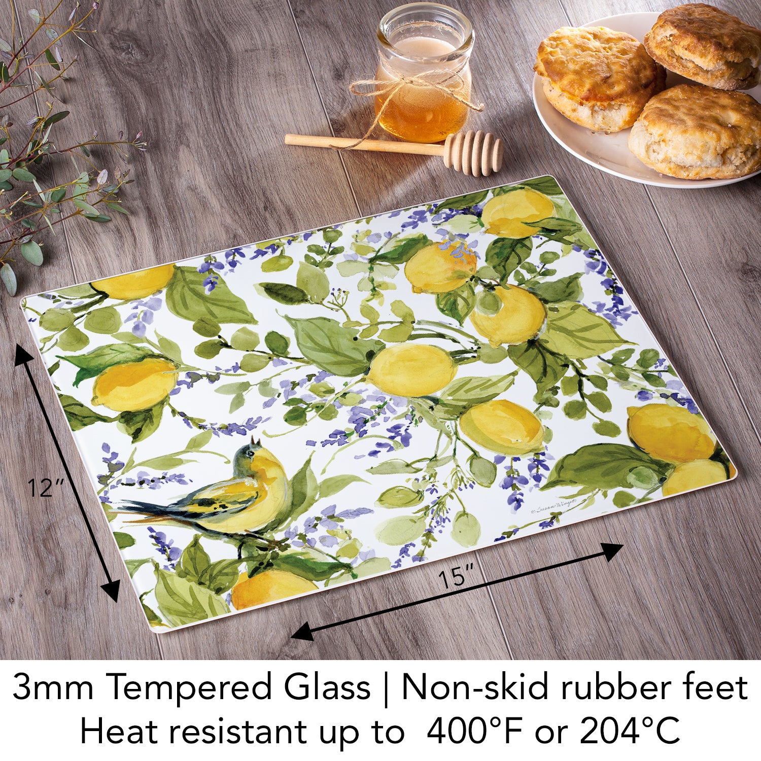 CounterArt Watercolor Lemons 3mm Tempered Glass Cutting Boards Manufactured in the USA