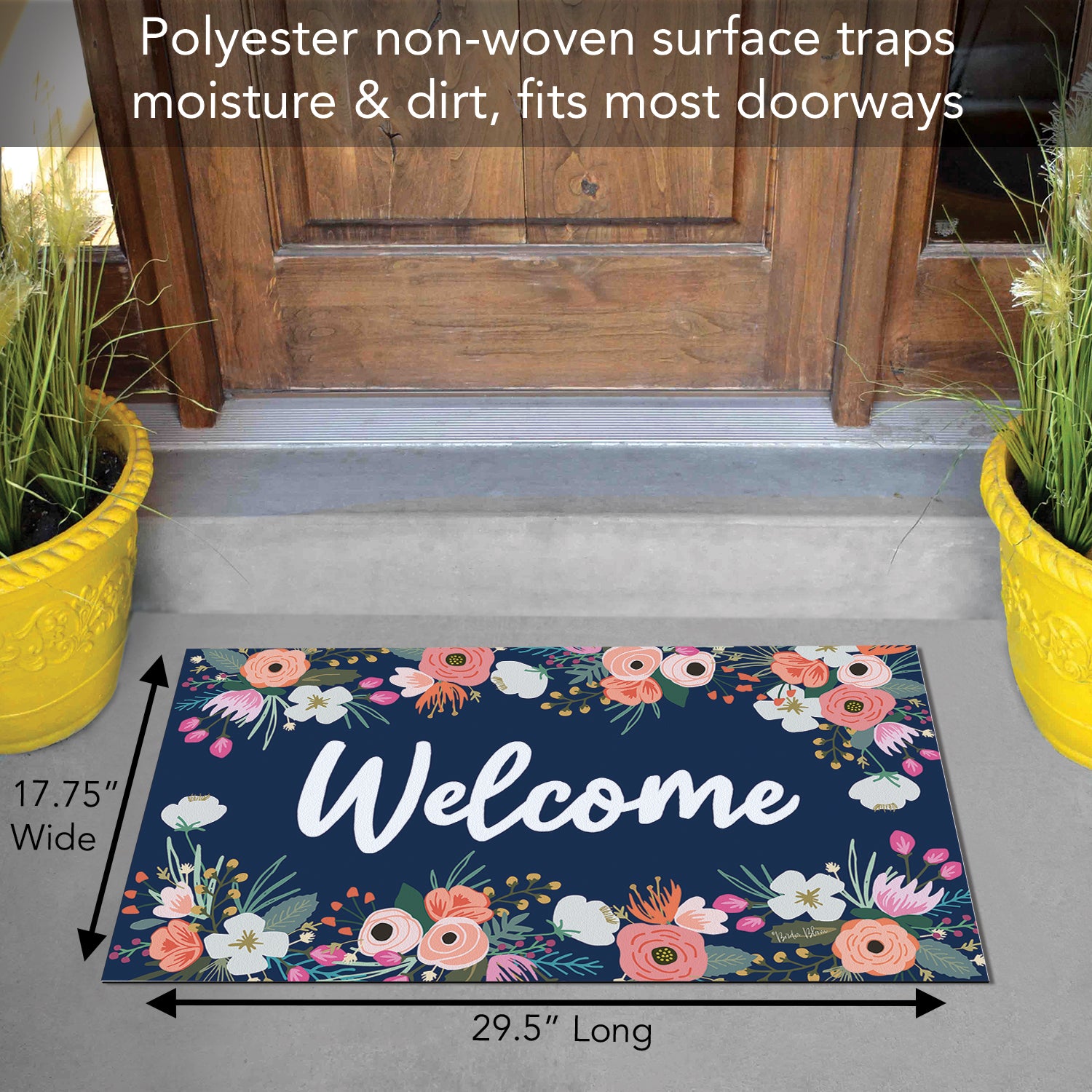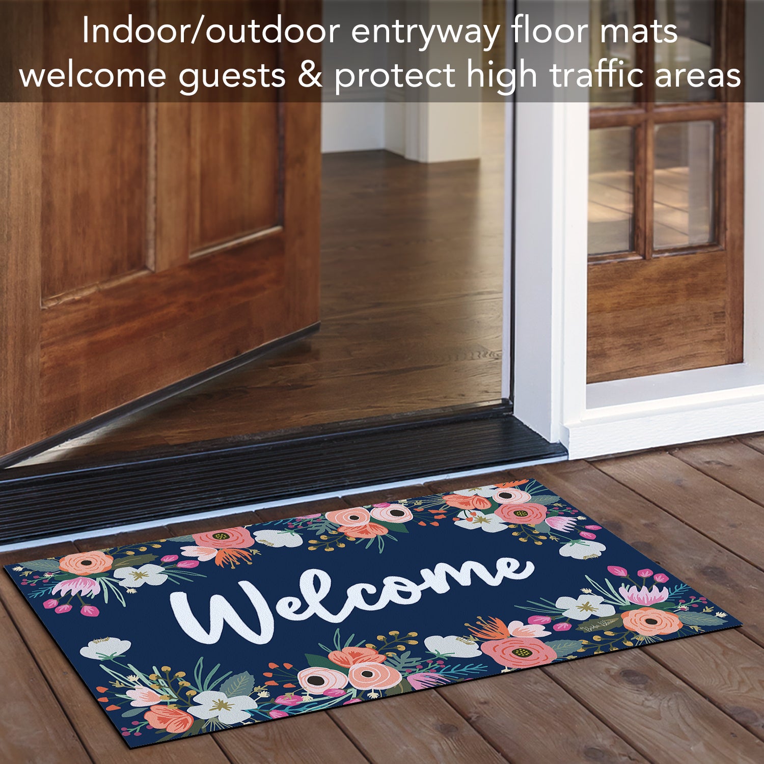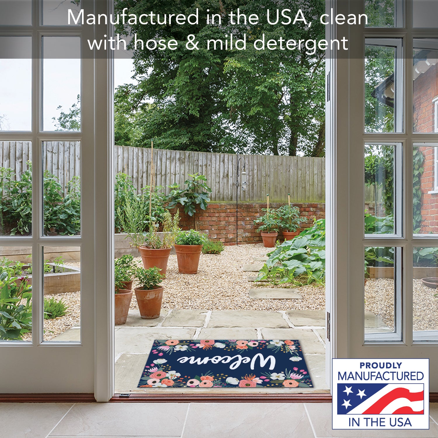 Counterart Floral on Navy Indoor/Outdoor Entryway Floor Mat Manufactured in the USA 29.5" by 17.75"
