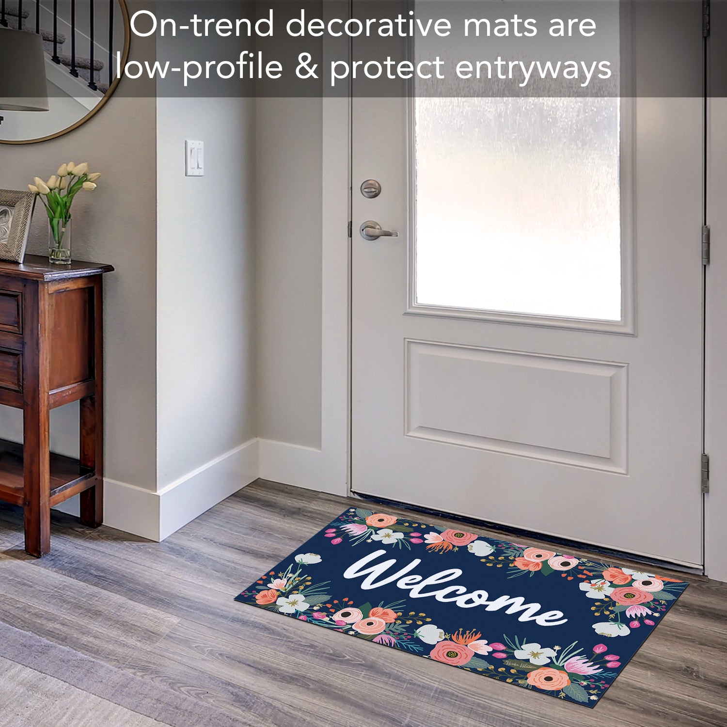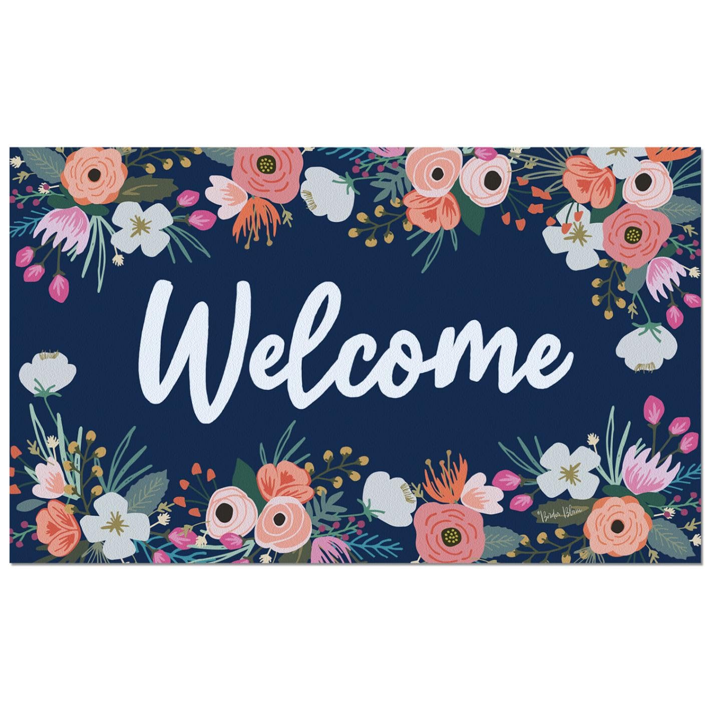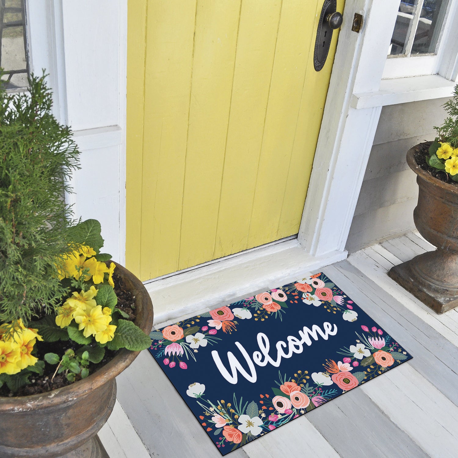 Counterart Floral on Navy Indoor/Outdoor Entryway Floor Mat Manufactured in the USA 29.5" by 17.75"