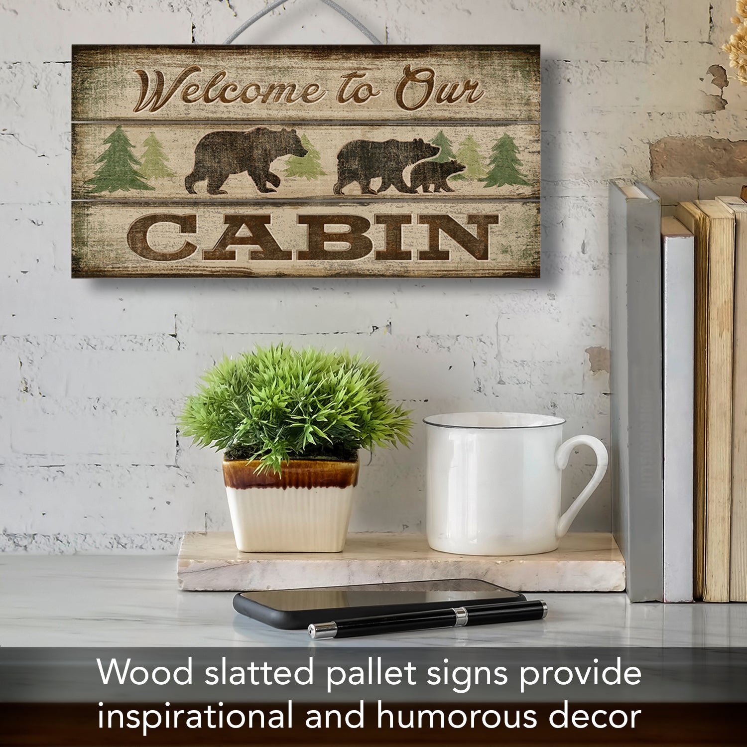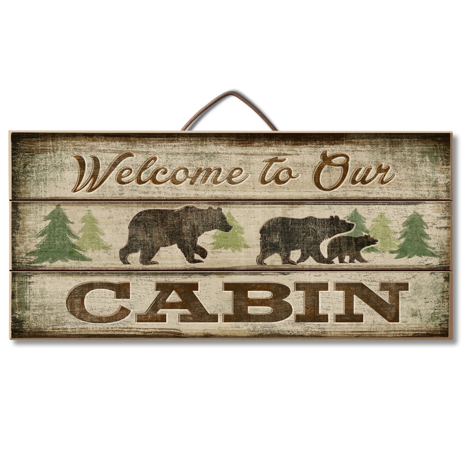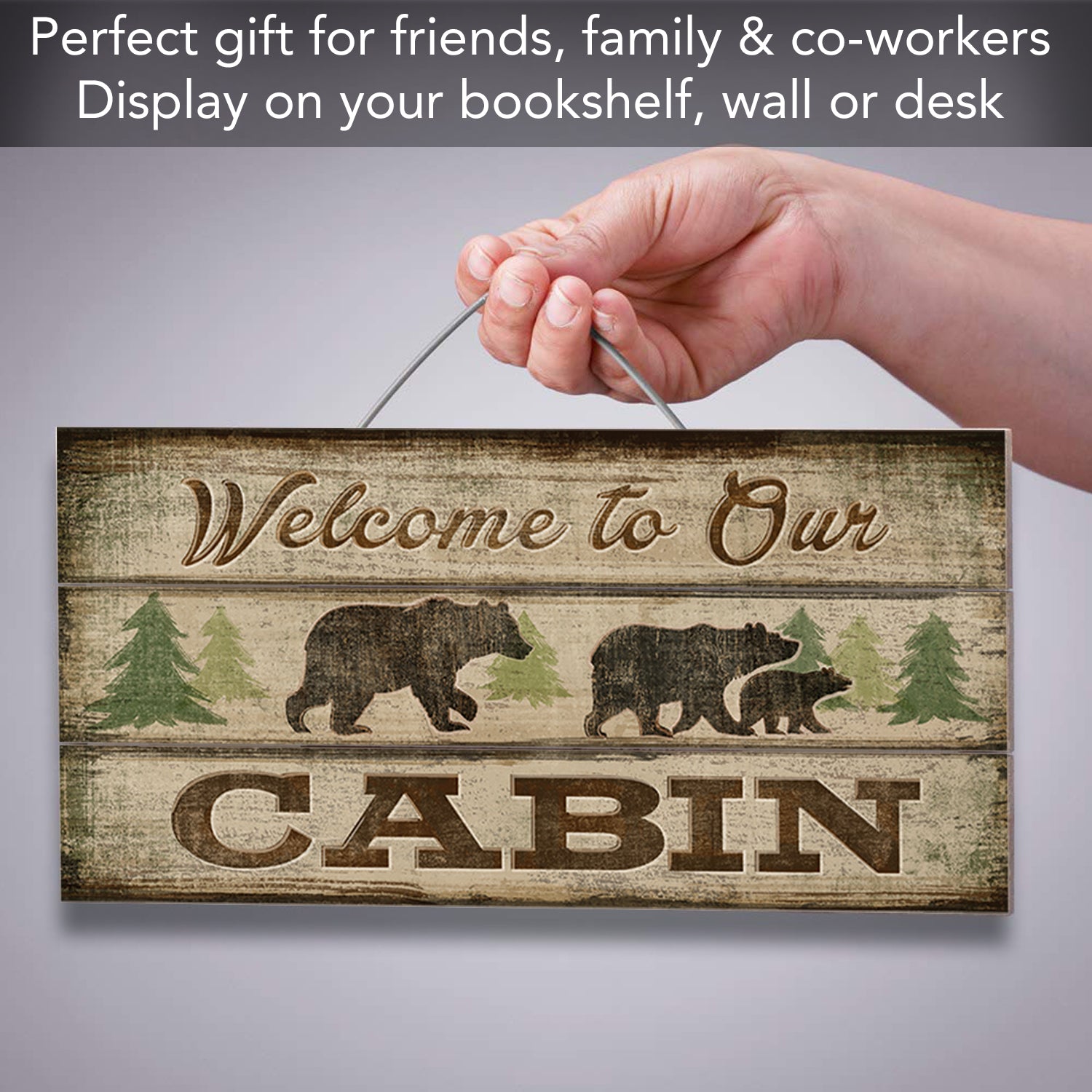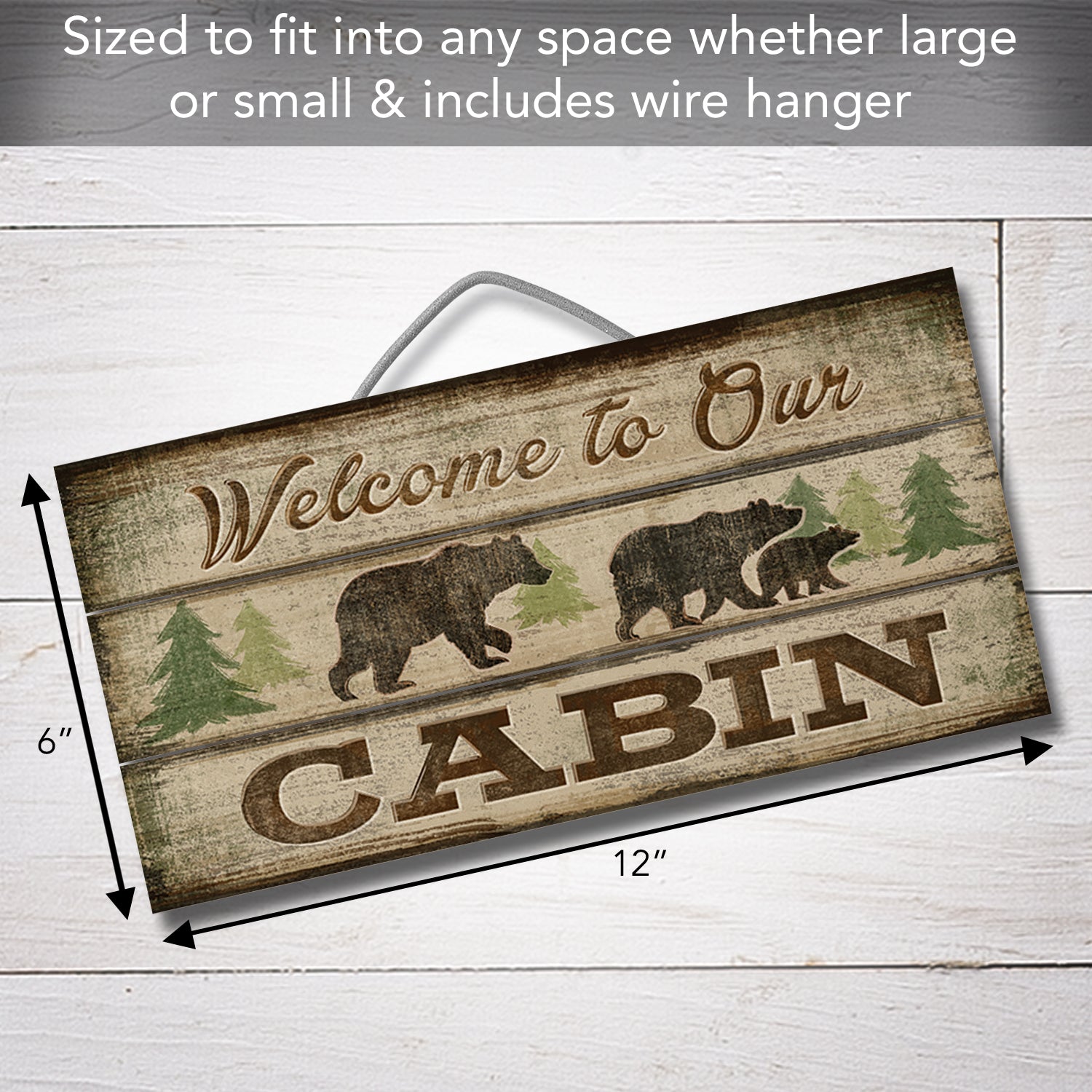 Welcome To Our Cabin Slatted Pallet Wood Sign 12" by 6" Made in the USA Wire Hanger Doubles as an Easel