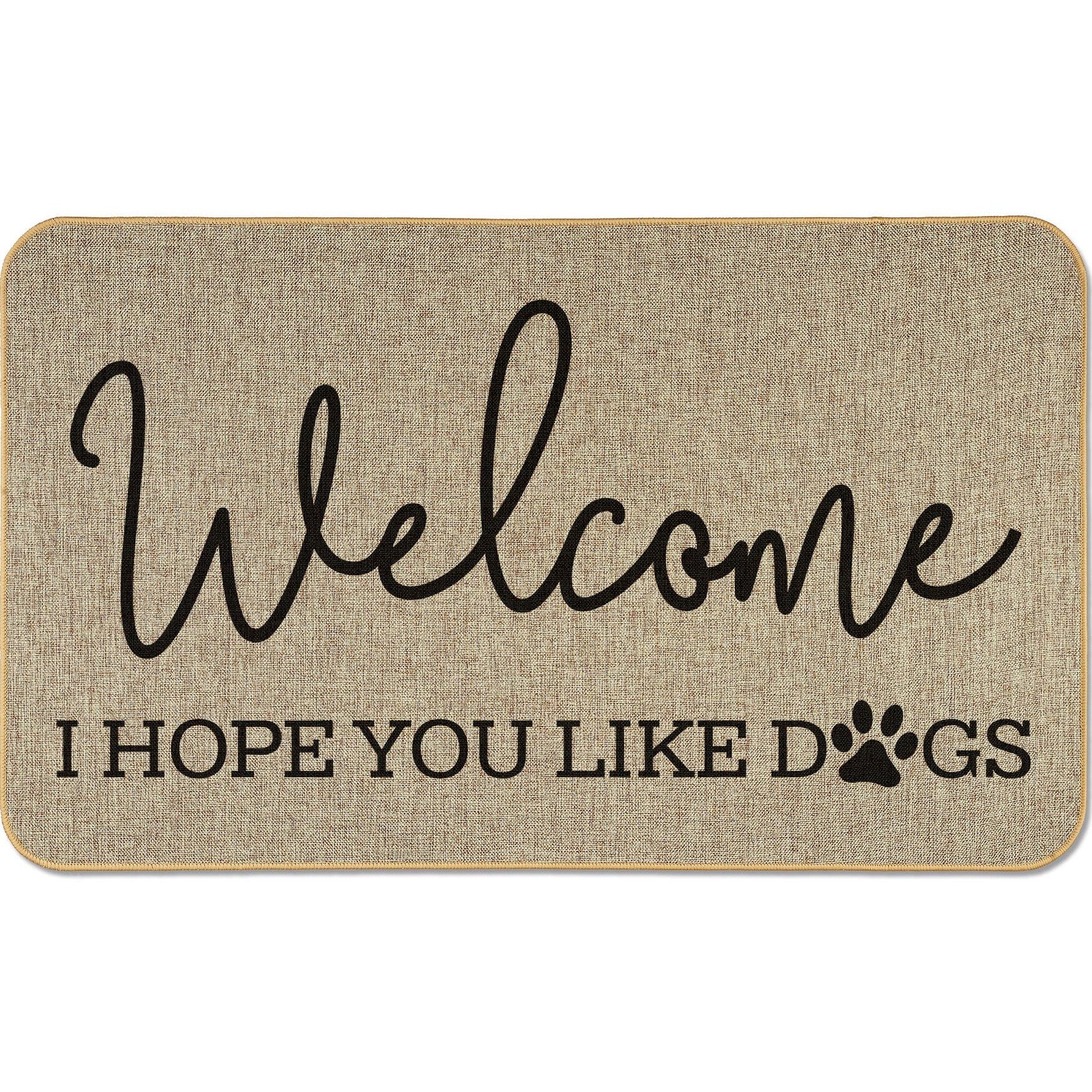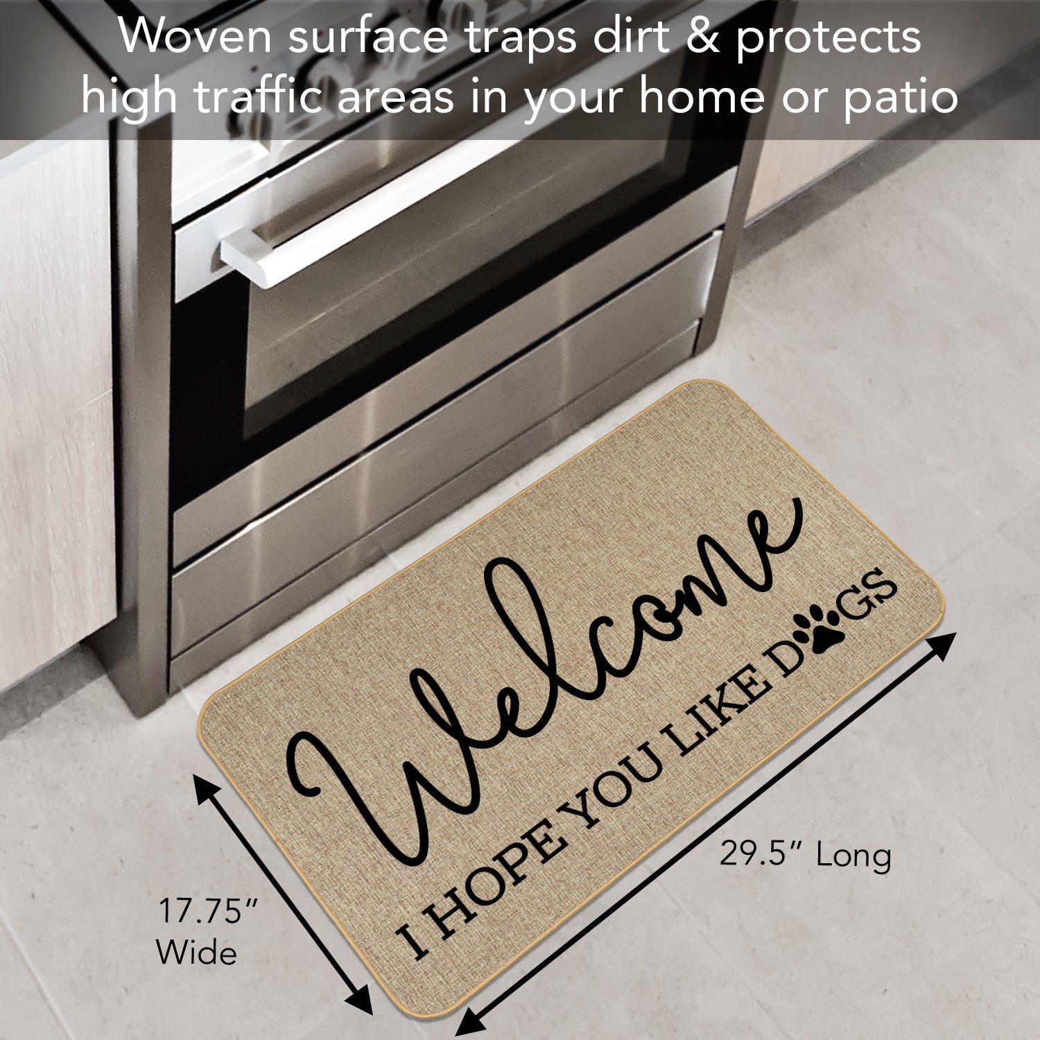 Welcome Hope You Like Dogs Decorative Indoor/Outdoor Natural Linen Look Floor Mat 29.5” x 17.75”