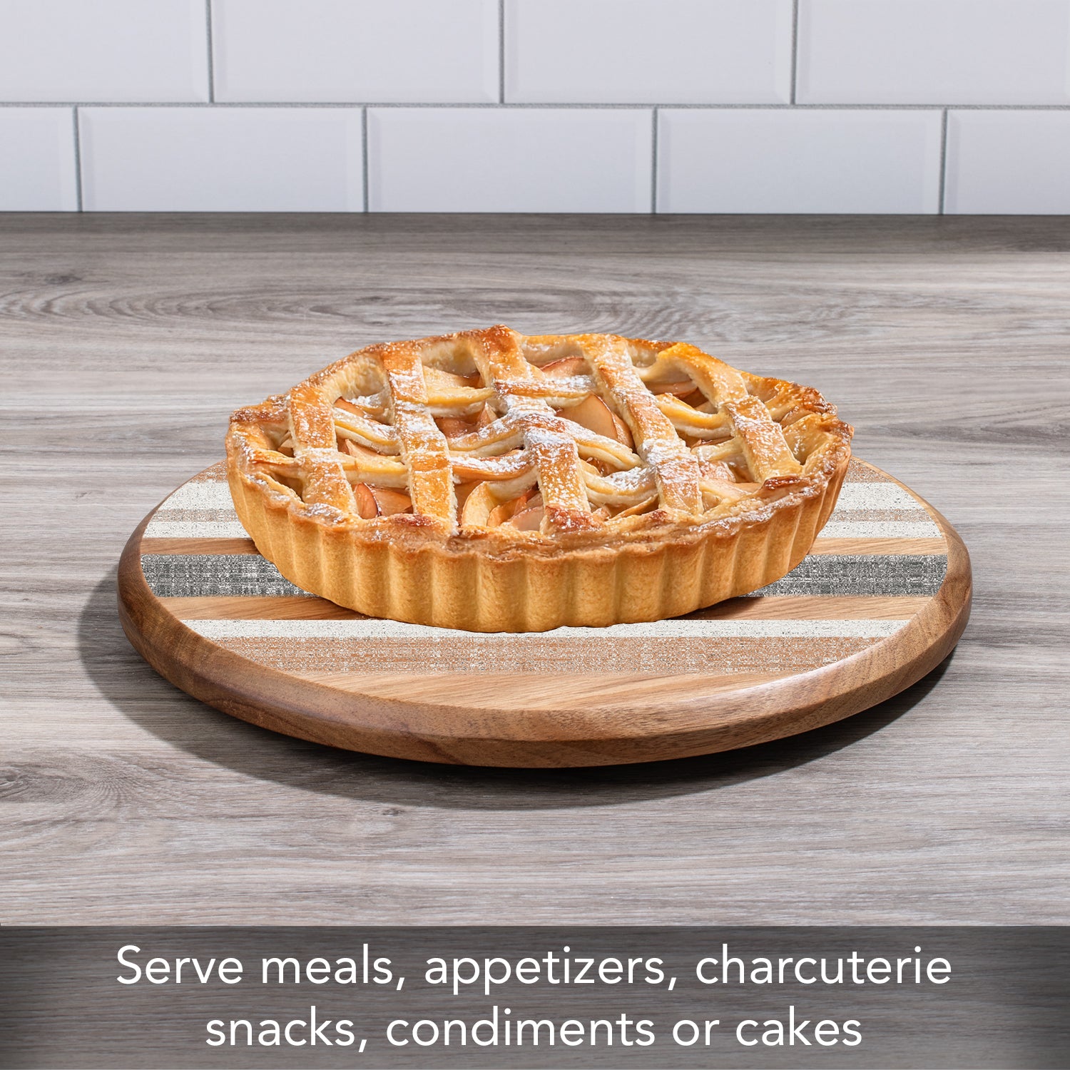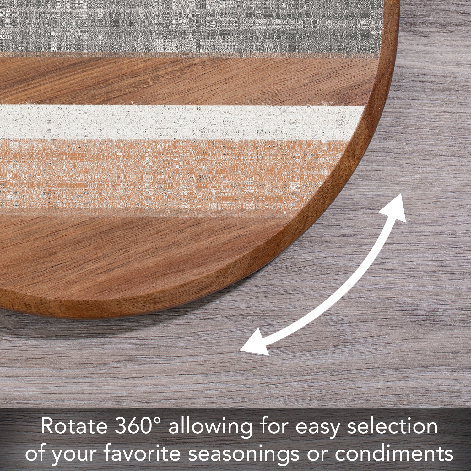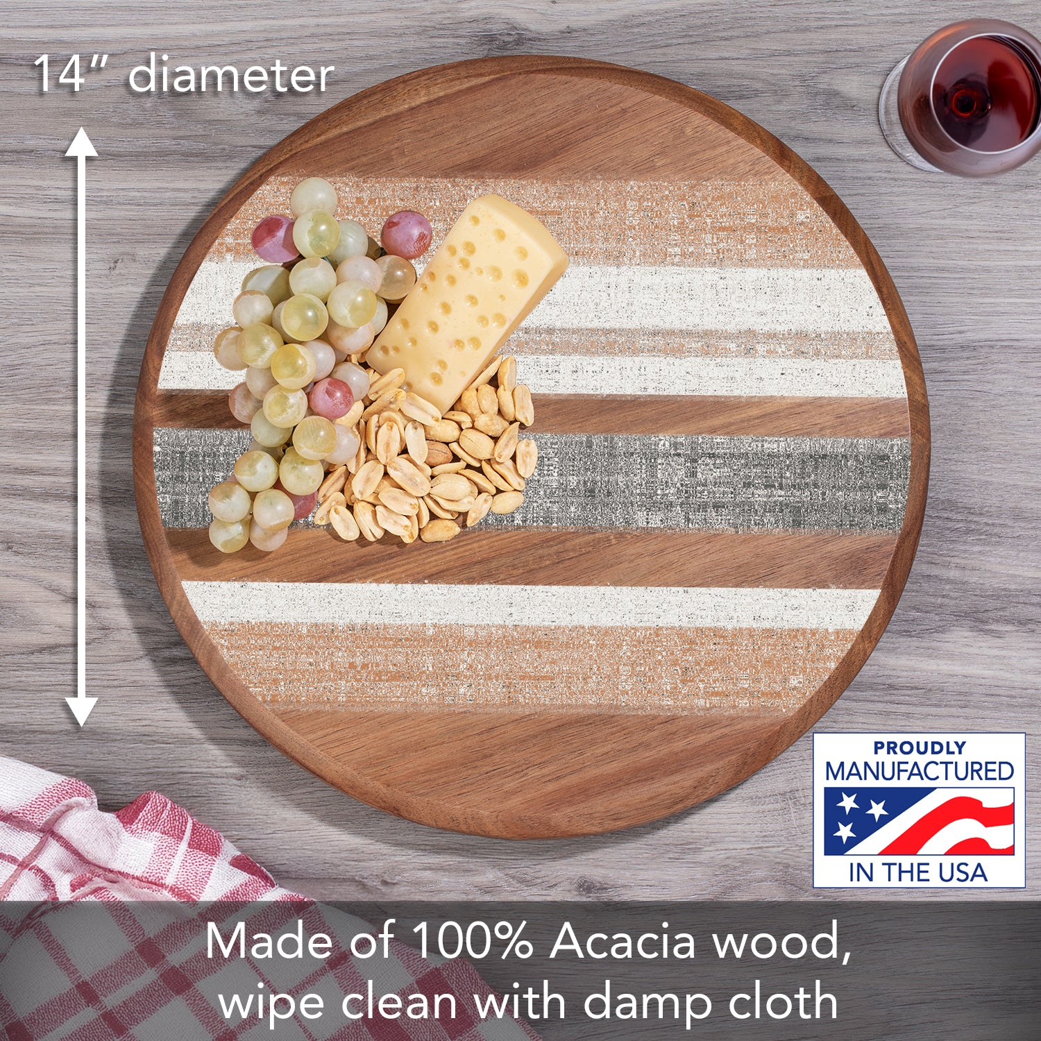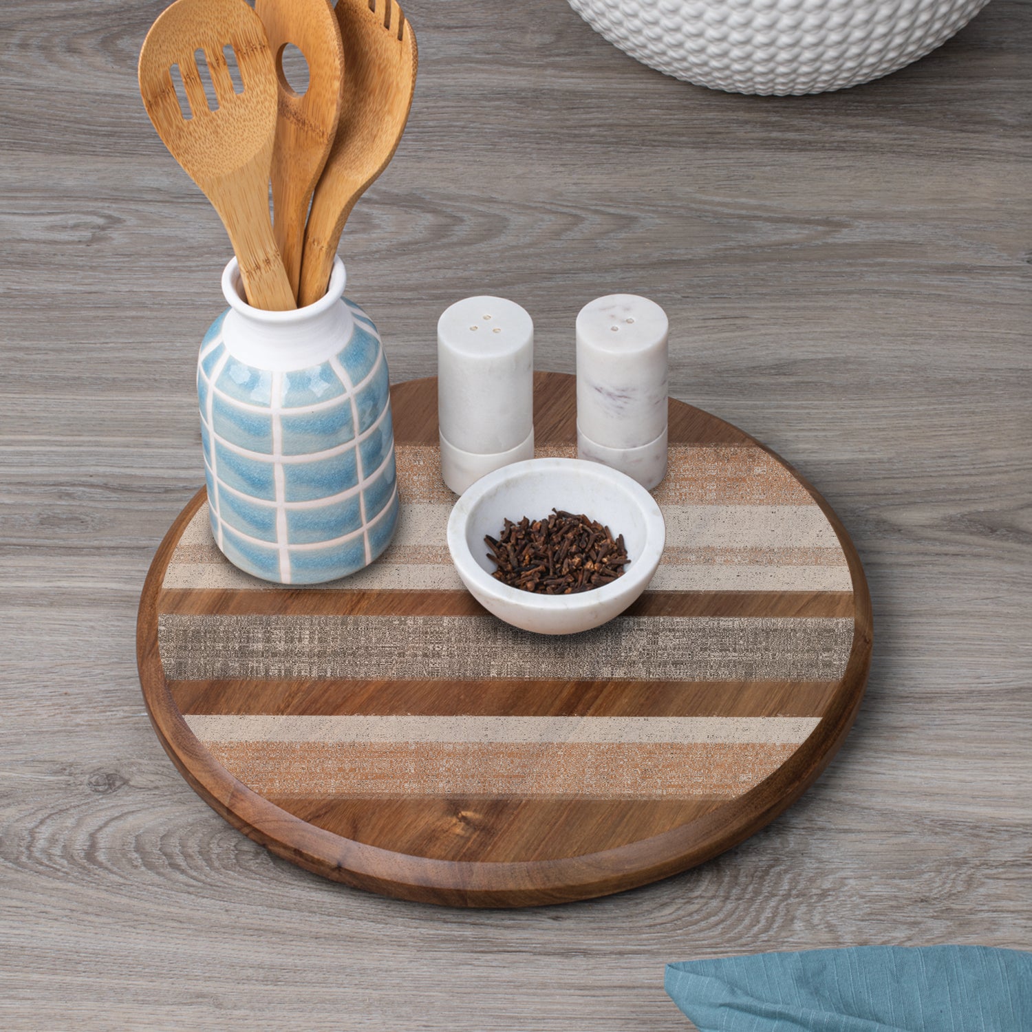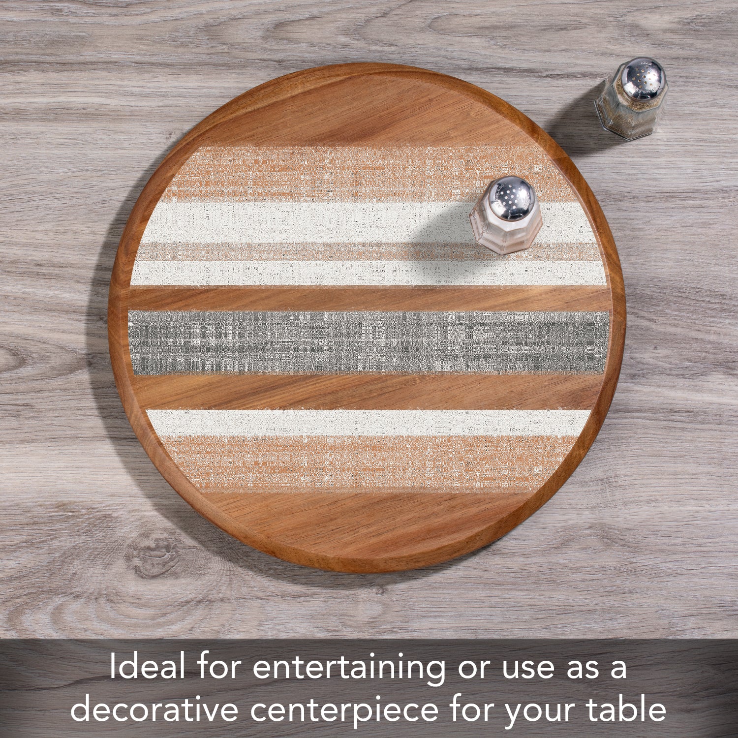 Wide Stripes Round Acacia Wood Lazy Susan Turntable 14" Diameter for Serving Kitchen Organization Condiment Caddy