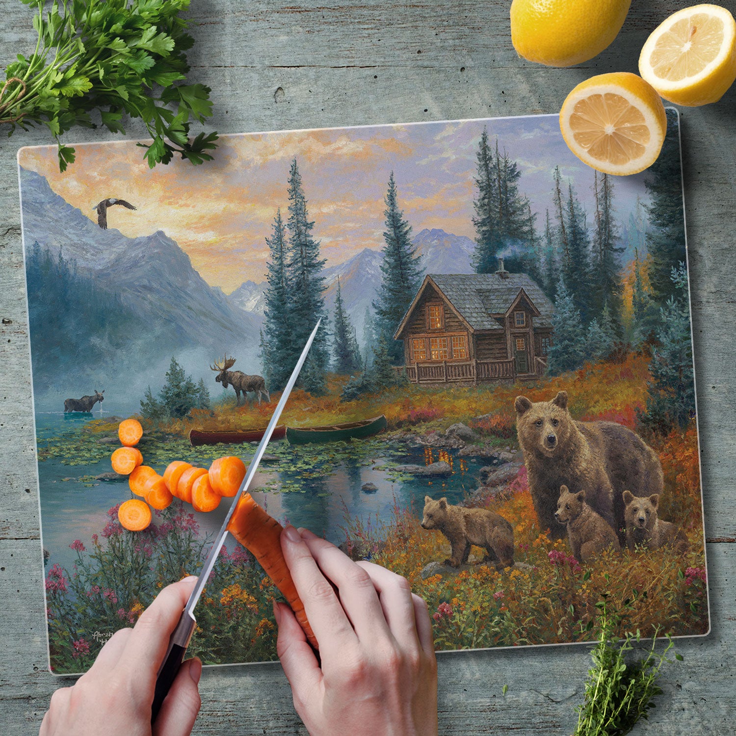 CounterArt Wilderness Retreat 3mm Tempered Glass Cutting Board 15" x 12" Manufactured in the USA