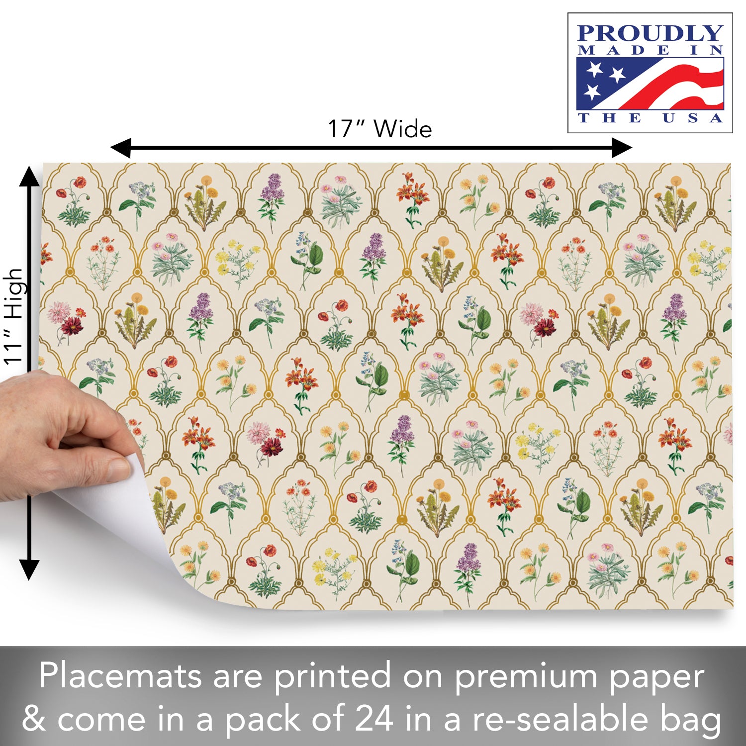 Wildflowers 24 Premium Paper Placemats in Resealable Storage Bag Made in the USA 17" x 11"