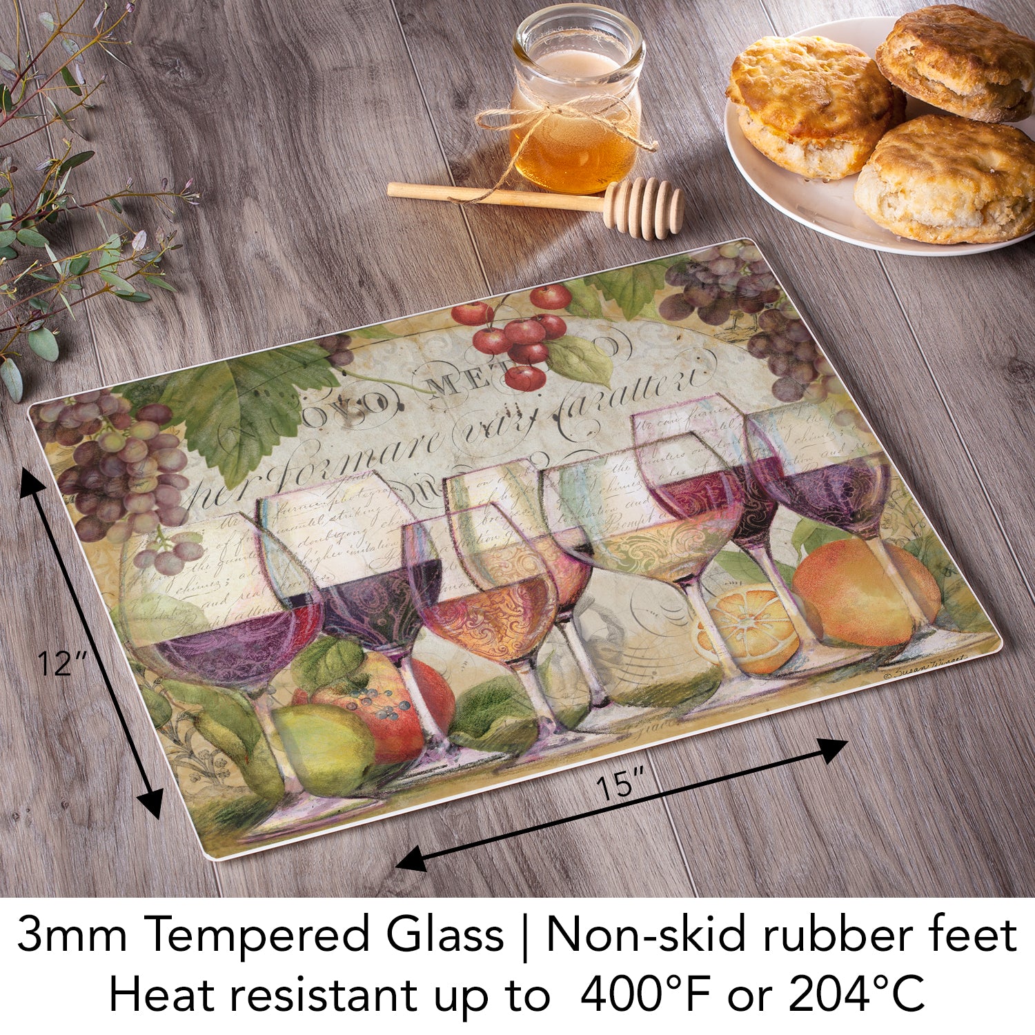 CounterArt Wine Country 3mm Tempered Glass Cutting Board 15" x 12" Manufactured in the USA