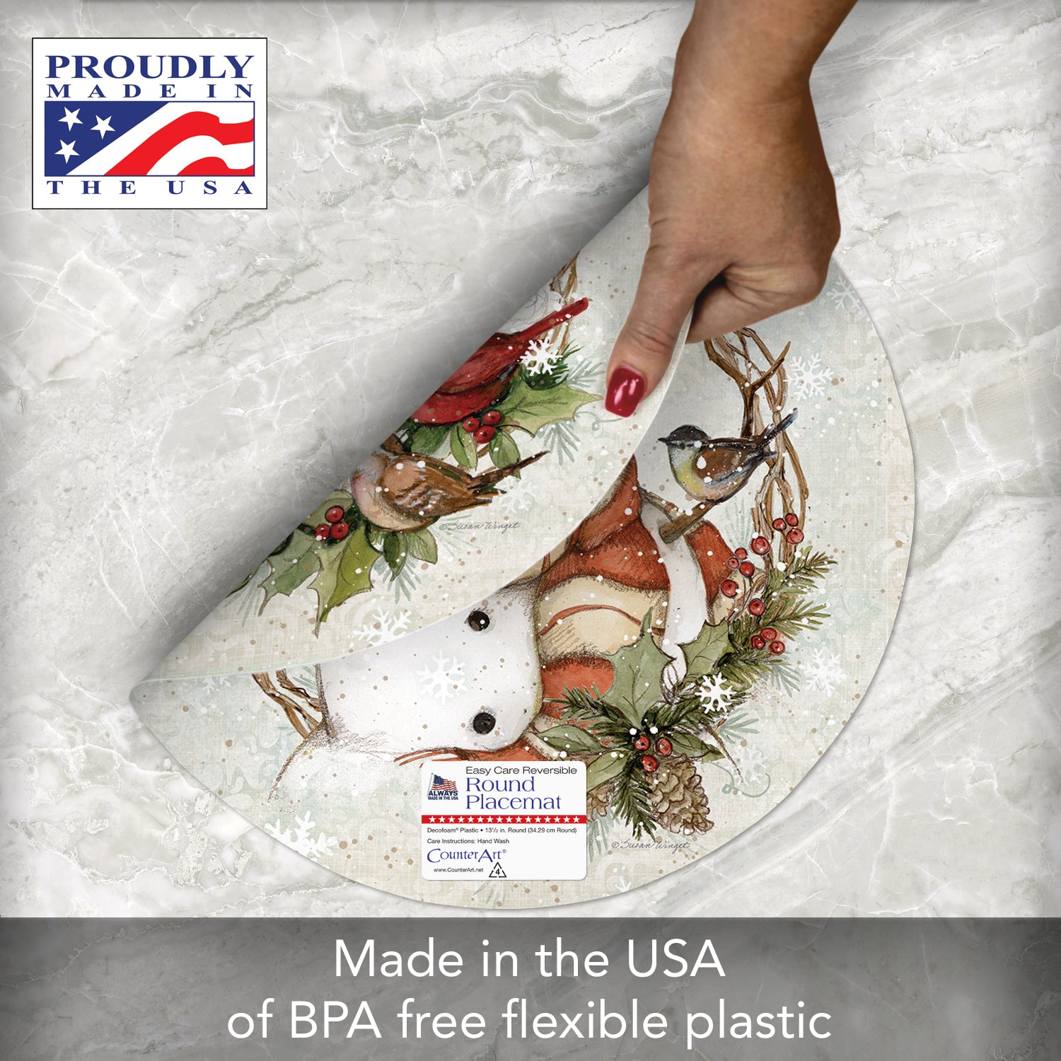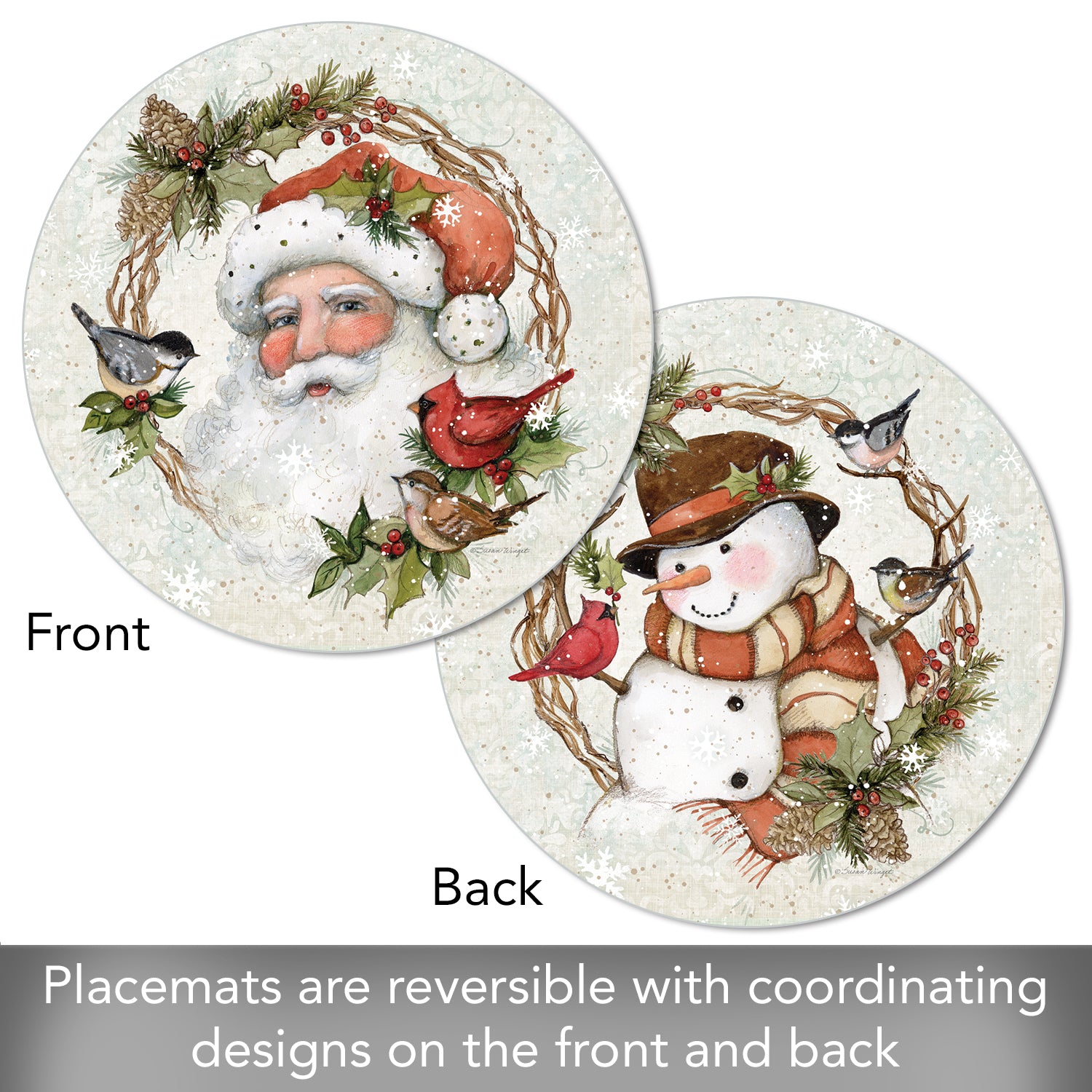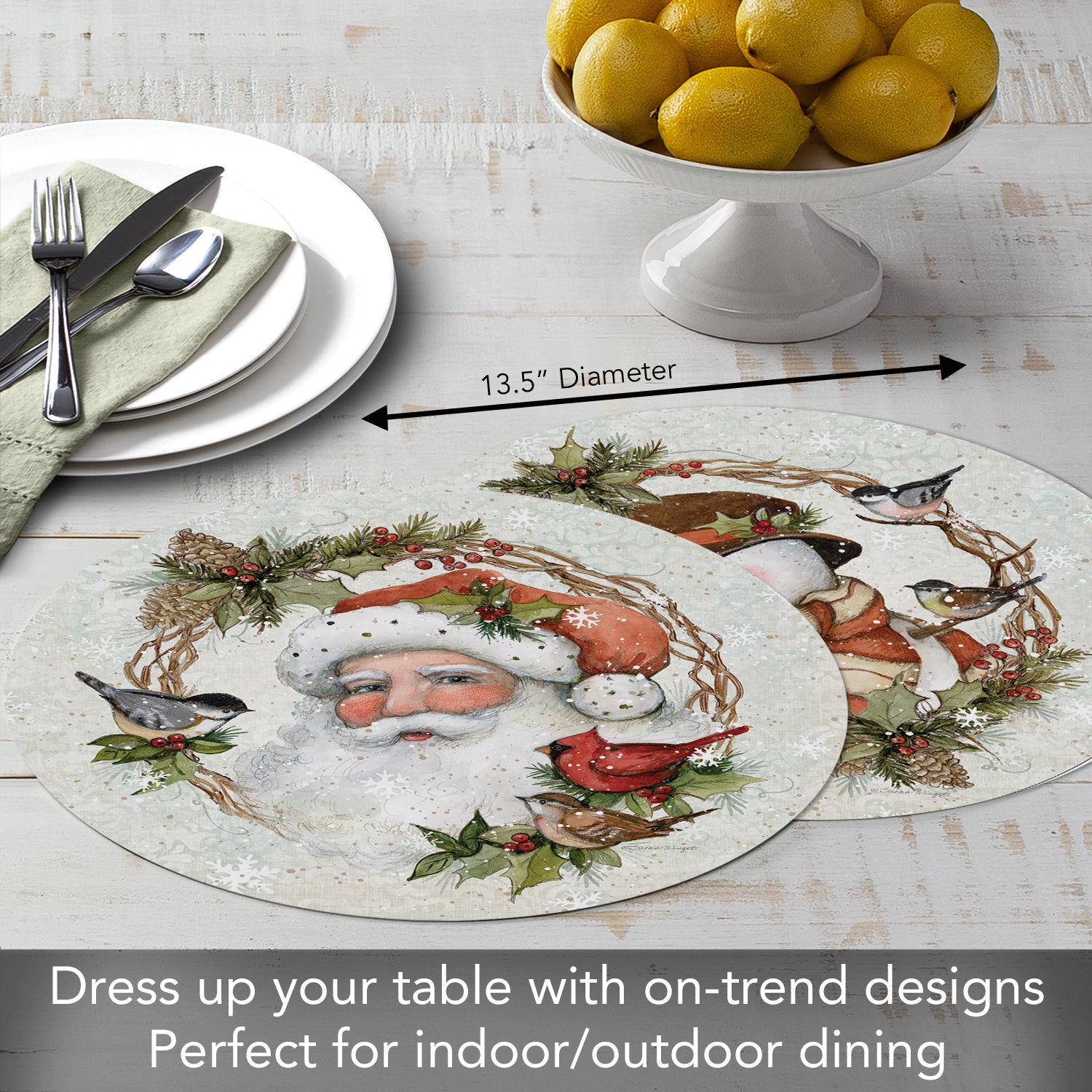 CounterArt Winter Forest Santa 4 Pack Round Reversible Easy Care Flexible Plastic Placemats Made in The USA 13.5" Diameter