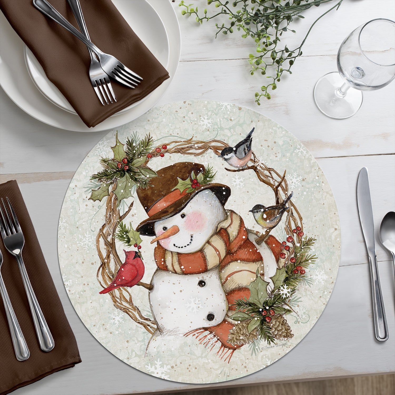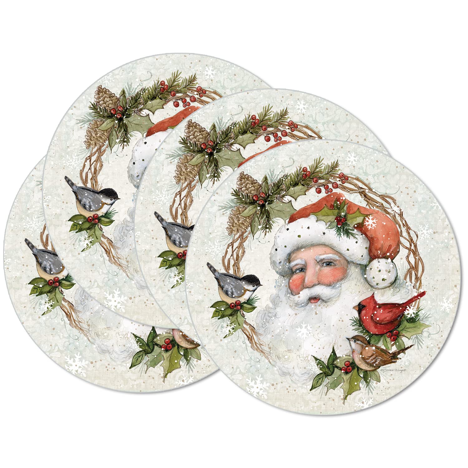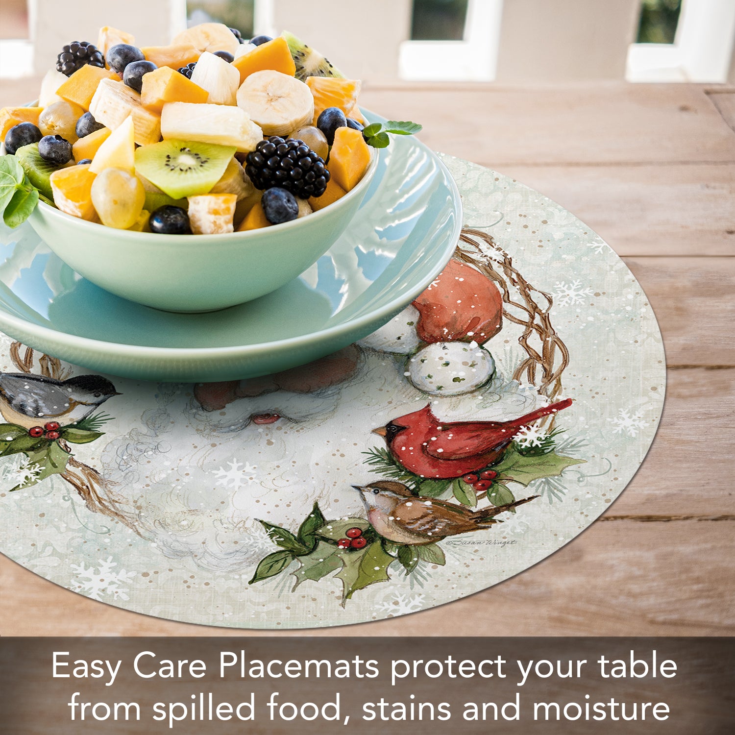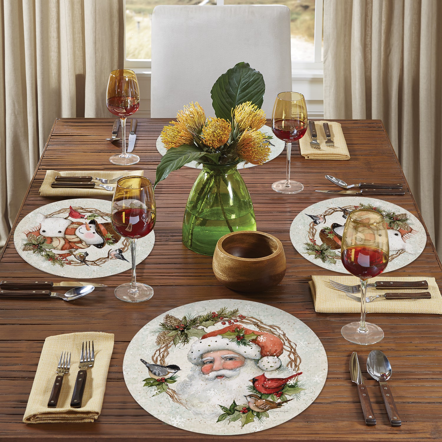 CounterArt Winter Forest Santa 4 Pack Round Reversible Easy Care Flexible Plastic Placemats Made in The USA 13.5" Diameter