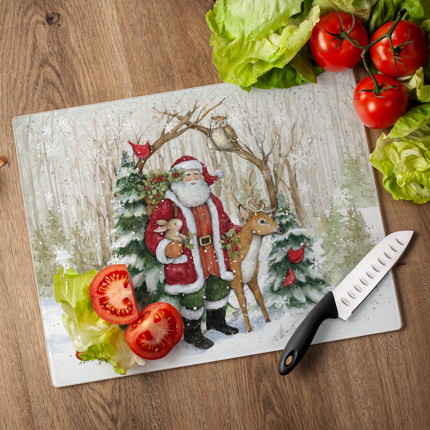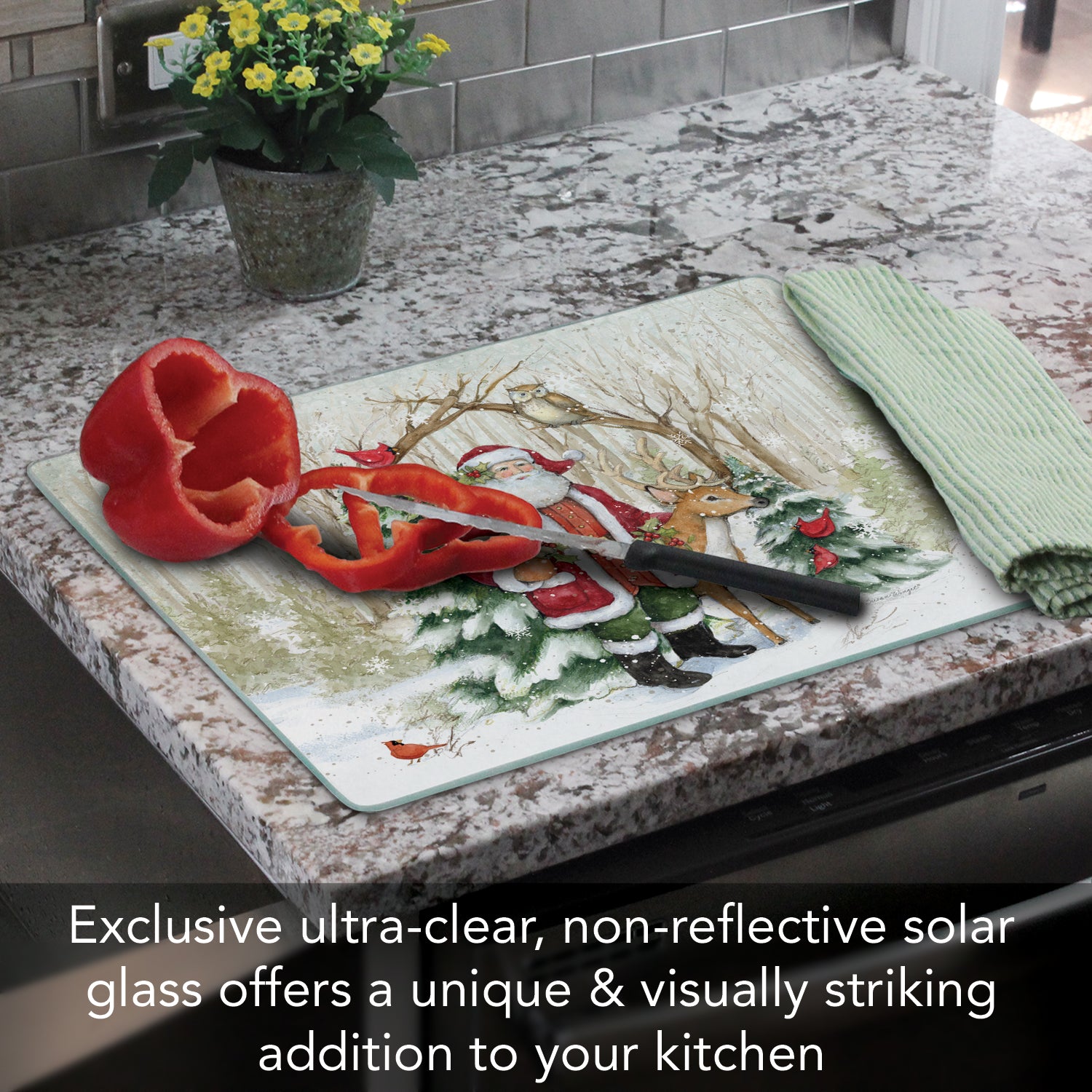 CounterArt Winter Forest Santa 3mm Tempered Glass Cutting Board 15" x 12" Manufactured in the USA