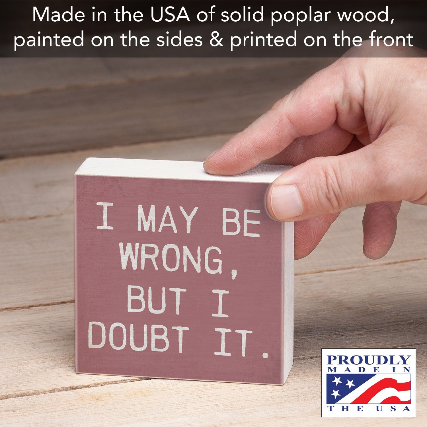 DURABLE-Our Wood Blocks are constructed of solid Poplar Wood. Artistic design and quotes are printed on the front with painted sides and a natural wood back.