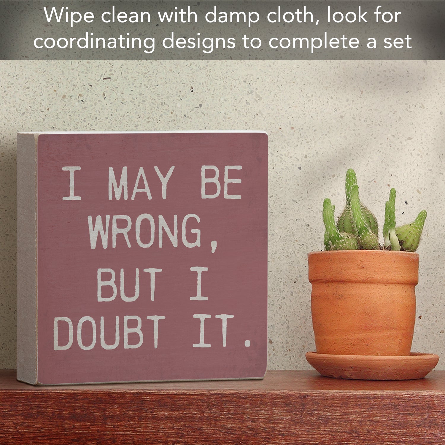 Wrong Humorous Freestanding Solid Wood Block Sign Made in the USA 3.75” Square
